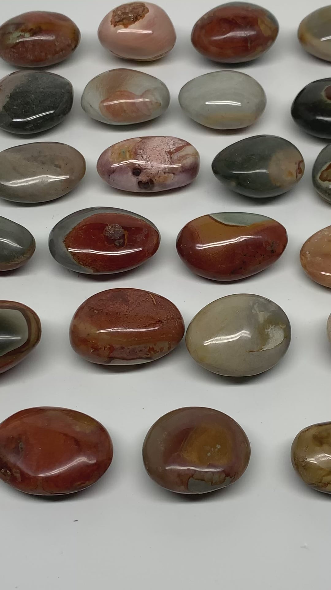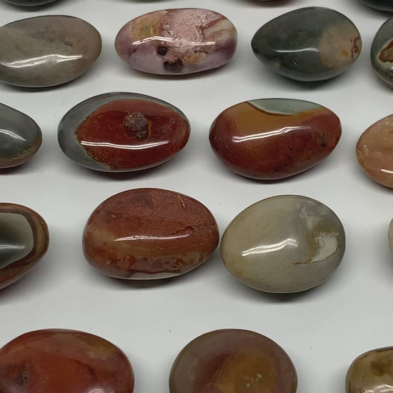 2.2 lb, 1.4"-2", 23 pcs, Polychrome Jasper Palm-Stone Polished, B37049
