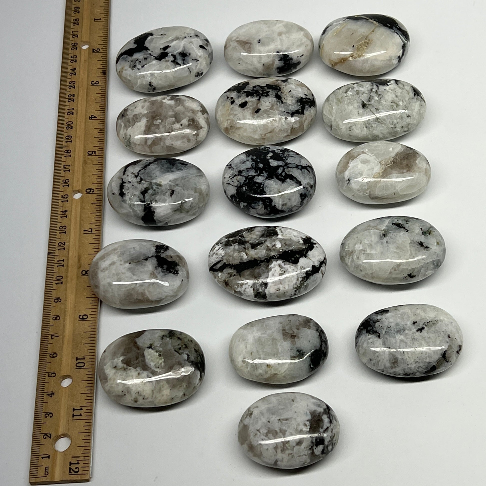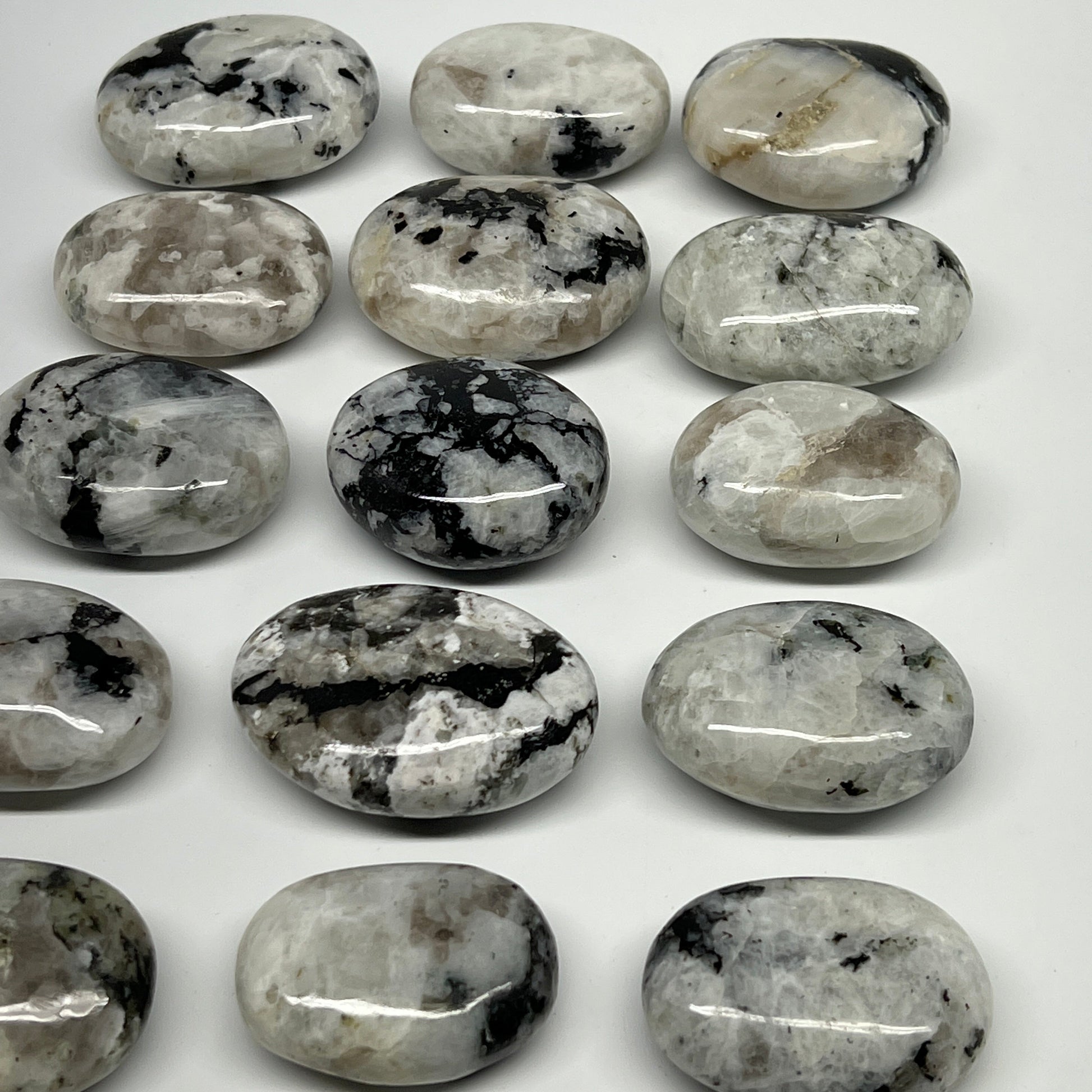 2.2 lb, 1.7"-2.2", 16 pcs, Rainbow Moonstone Palm-Stone Polished Reiki Crystal, B21345