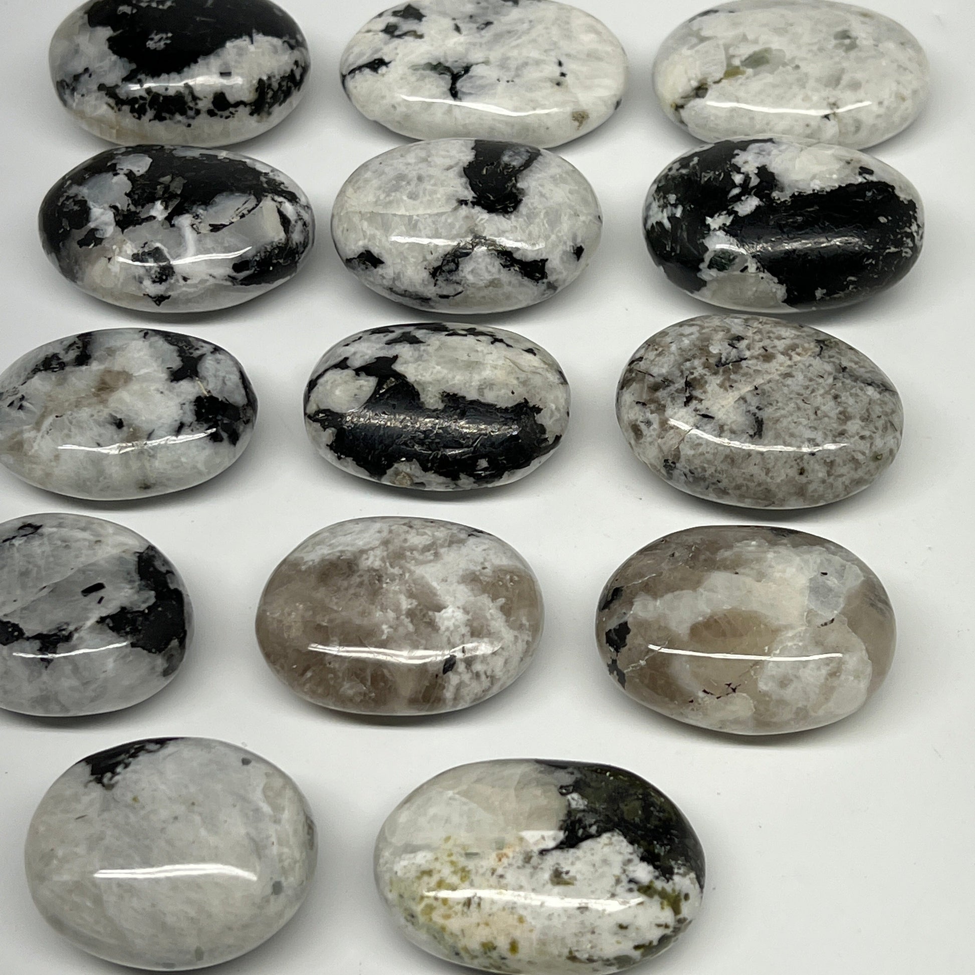 2.2 lb, 1.8"-2.5", 14 pcs, Rainbow Moonstone Palm-Stone Polished Reiki Crystal, B21353