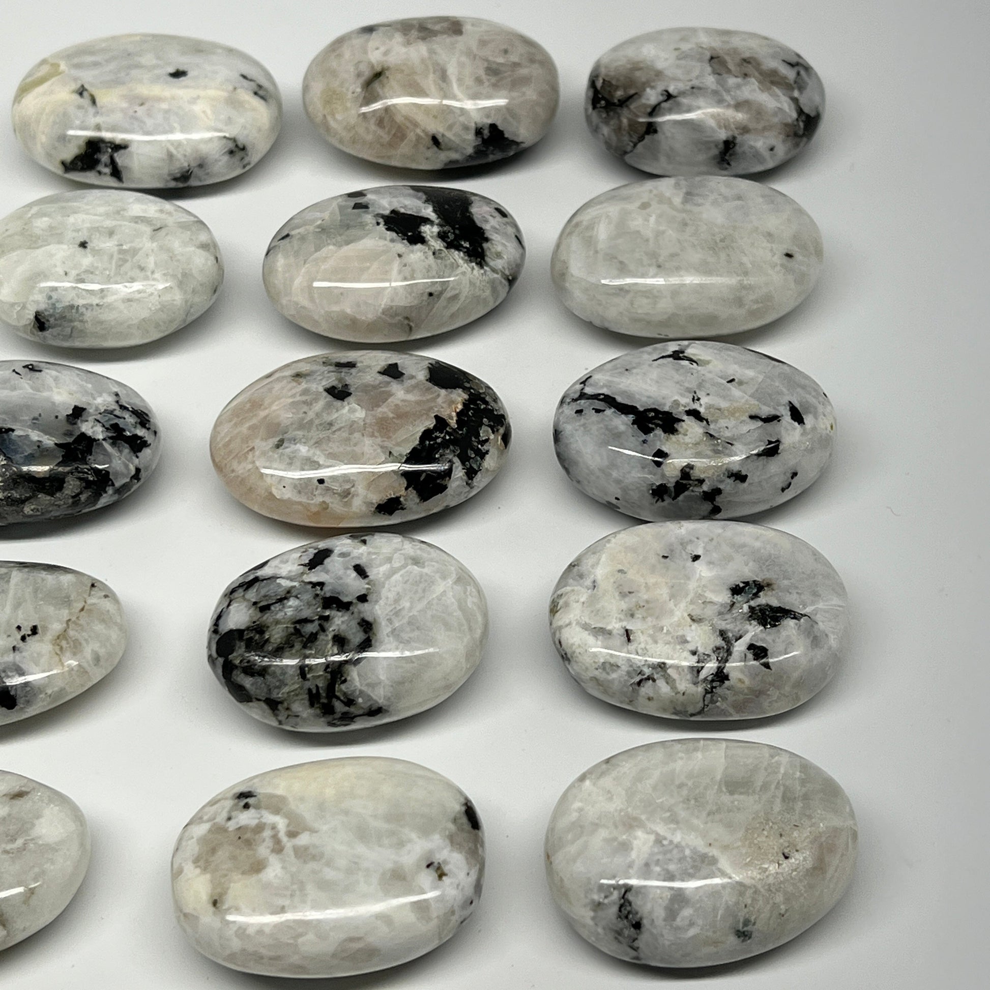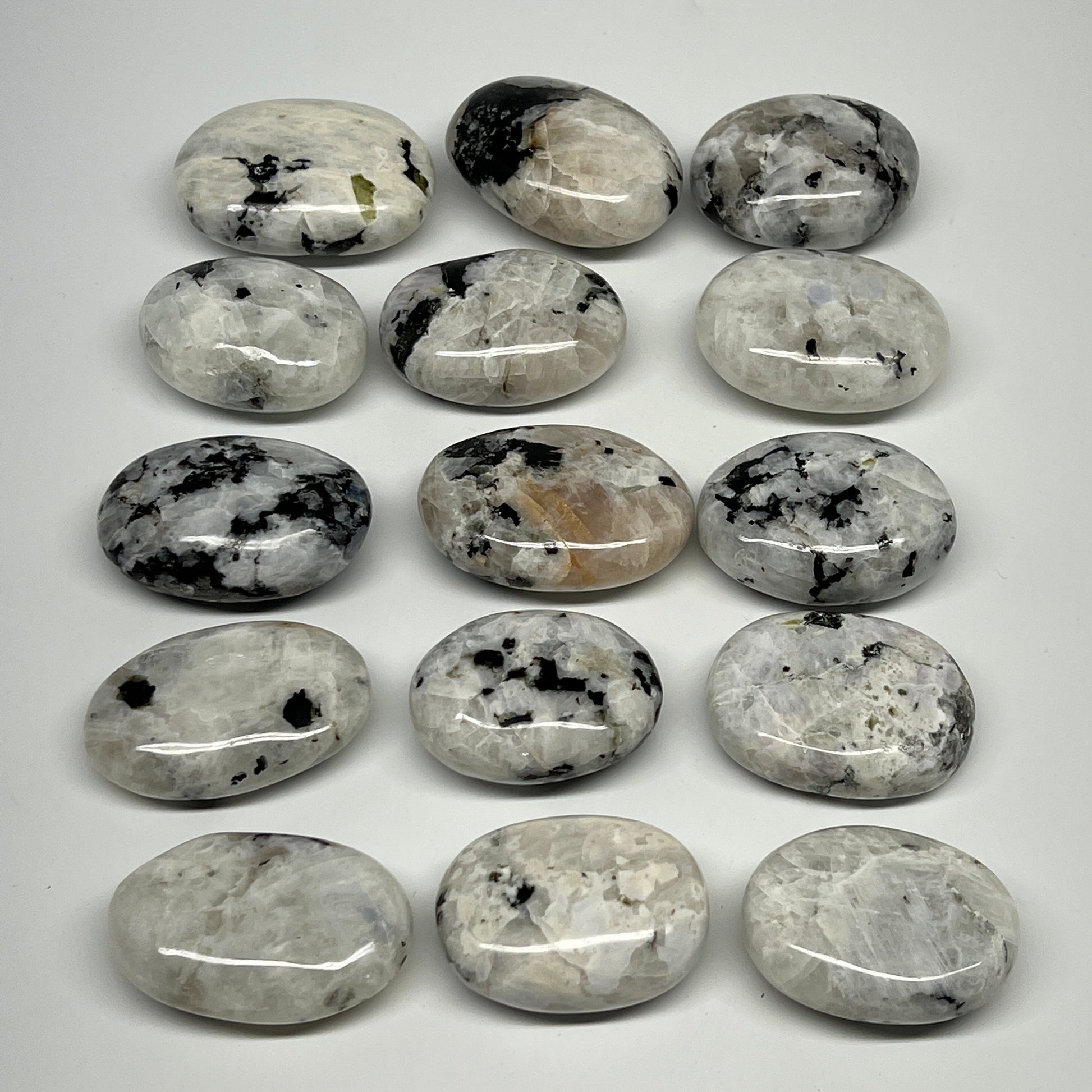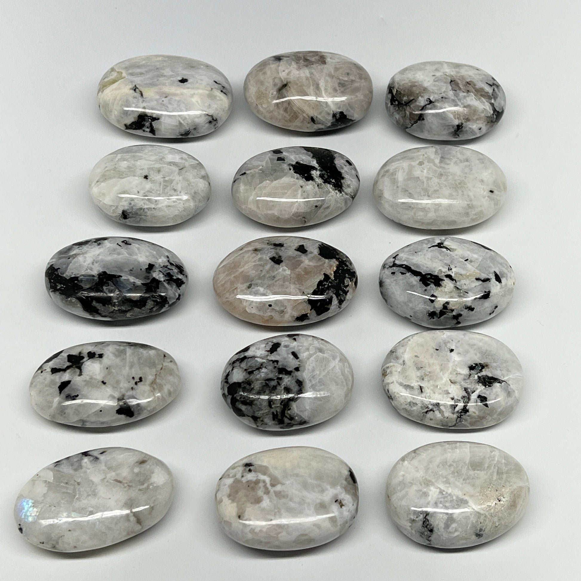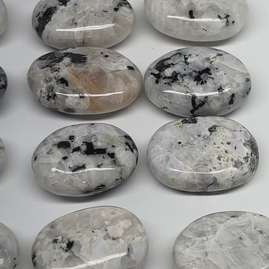 2.2 lb, 1.9"-2.3", 15 pcs, Rainbow Moonstone Palm-Stone Polished Reiki Crystal, B21348