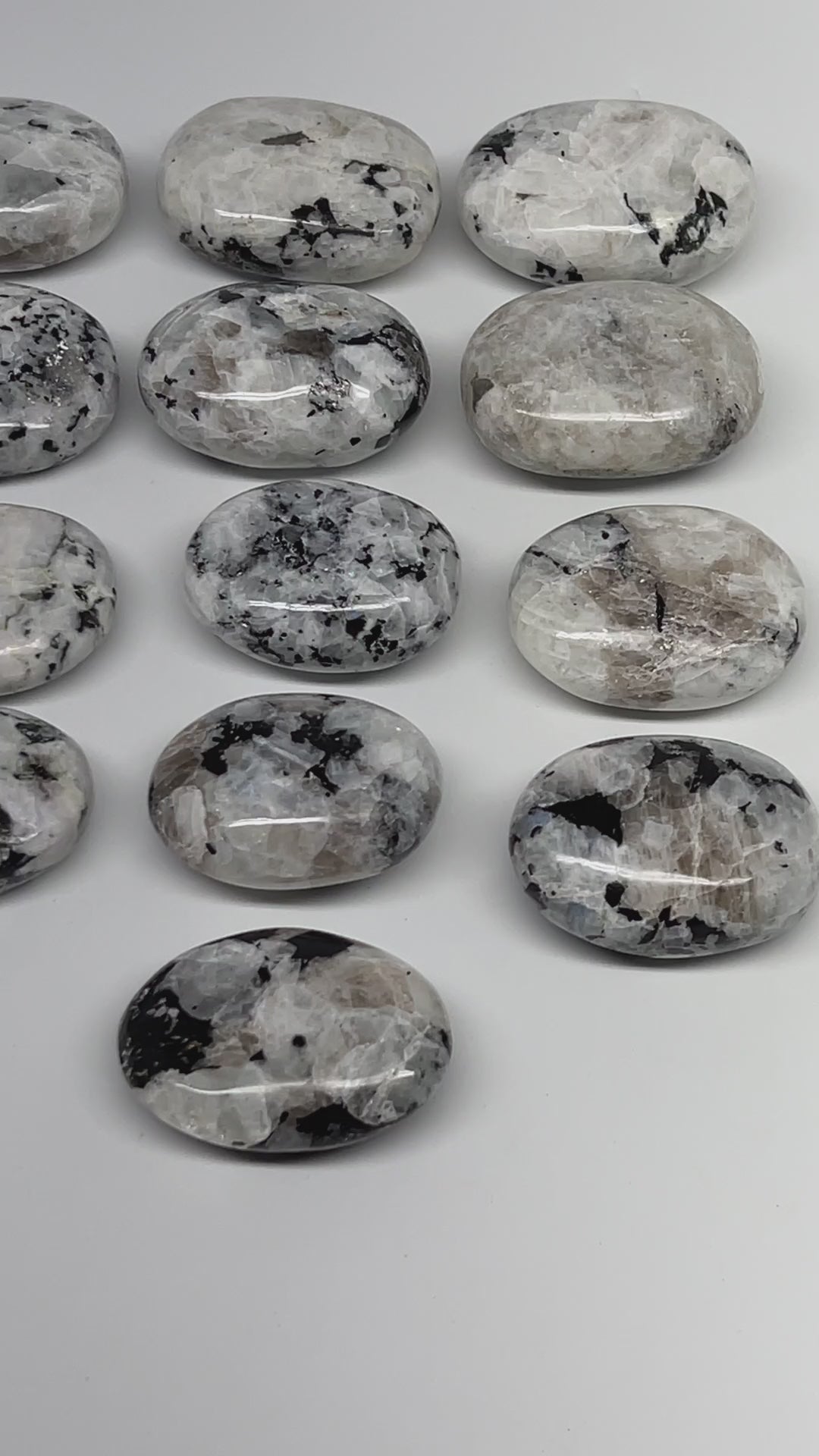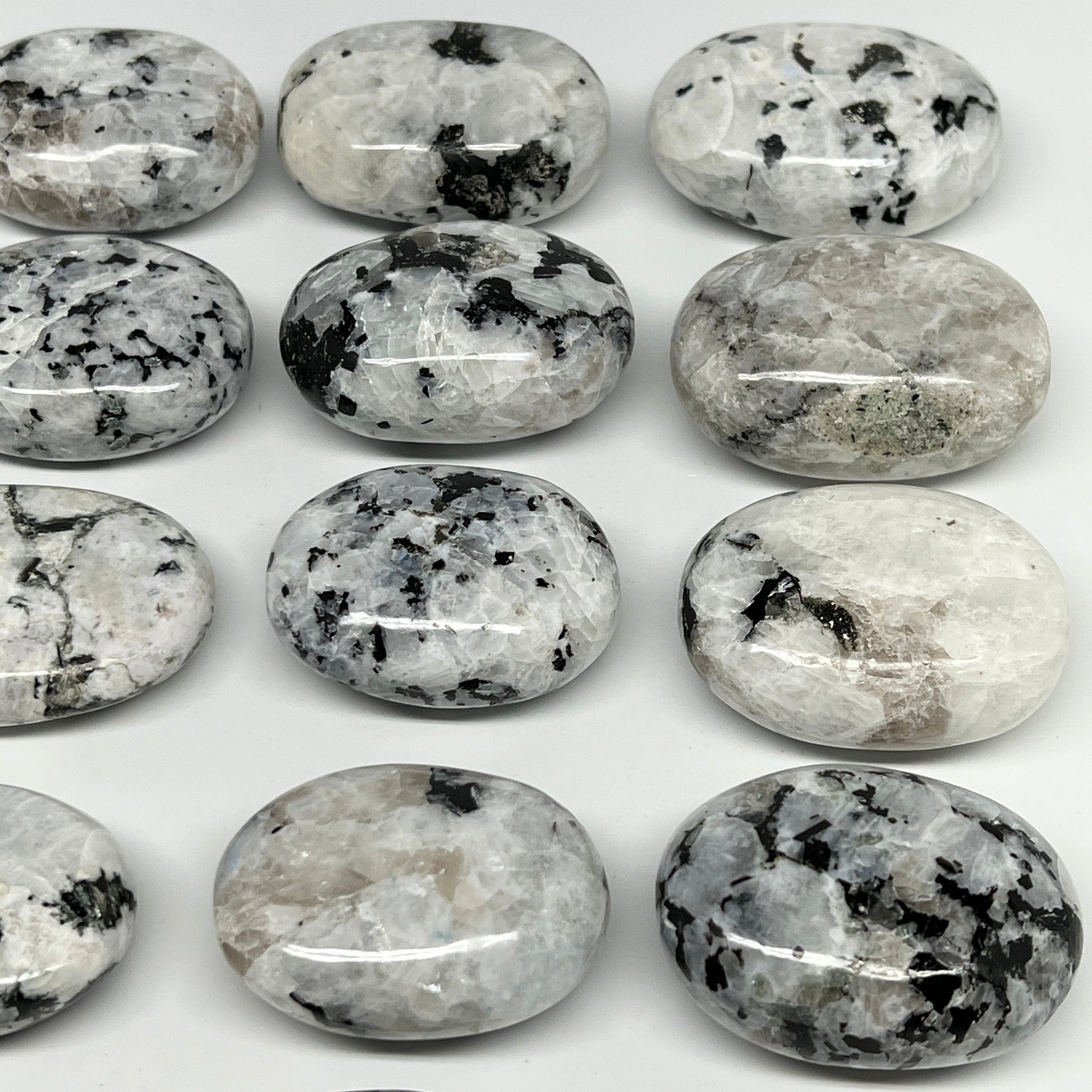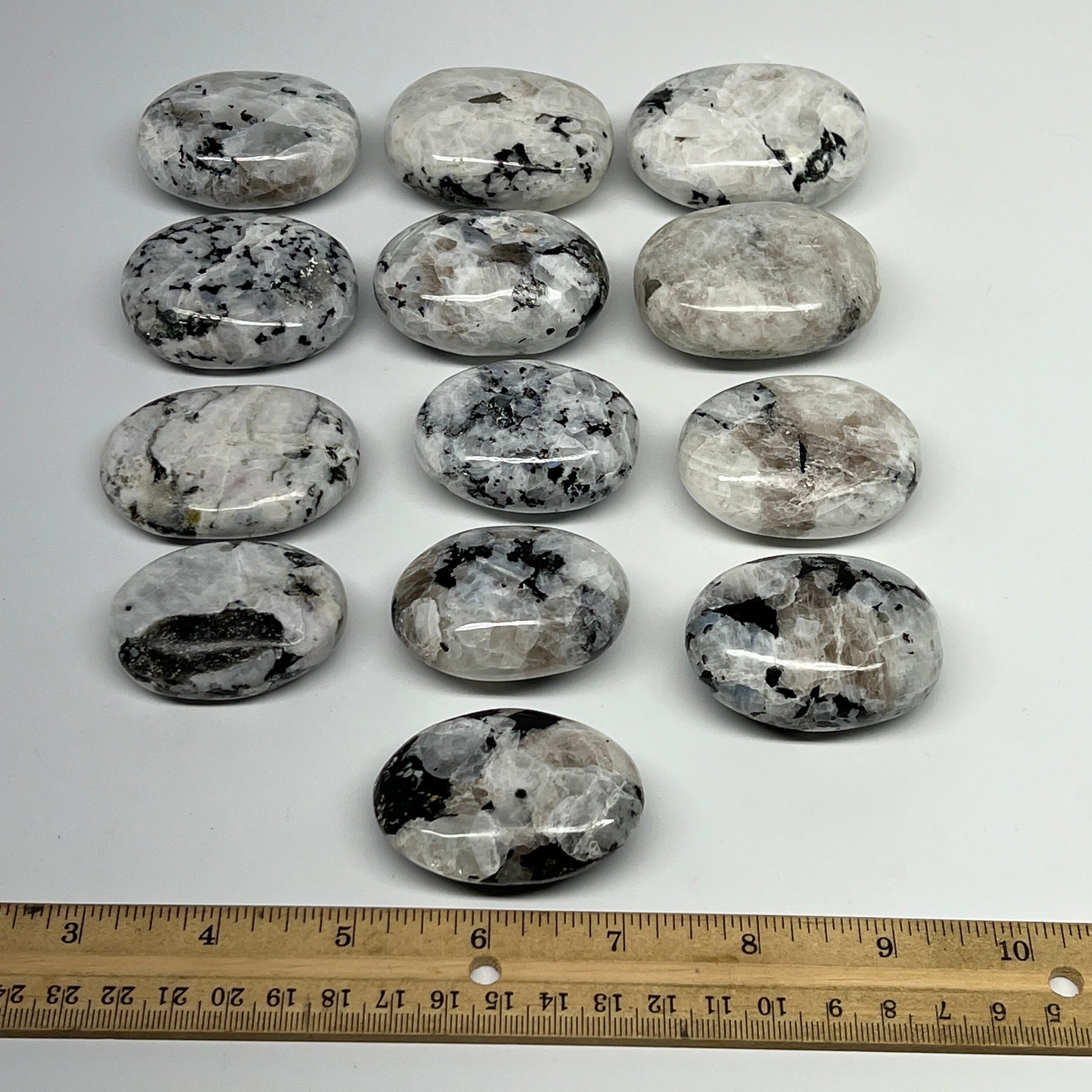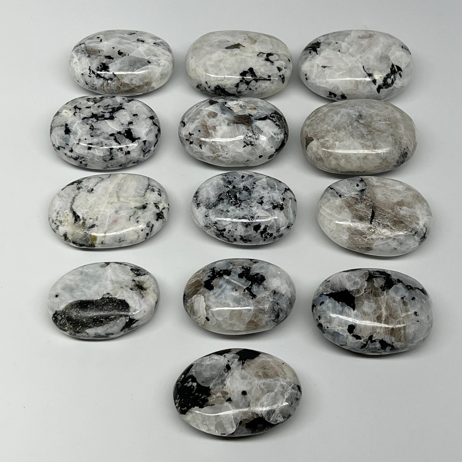 2.2 lb, 1.9"-2.4", 13 pcs, Rainbow Moonstone Palm-Stone Polished Reiki Crystal, B21351
