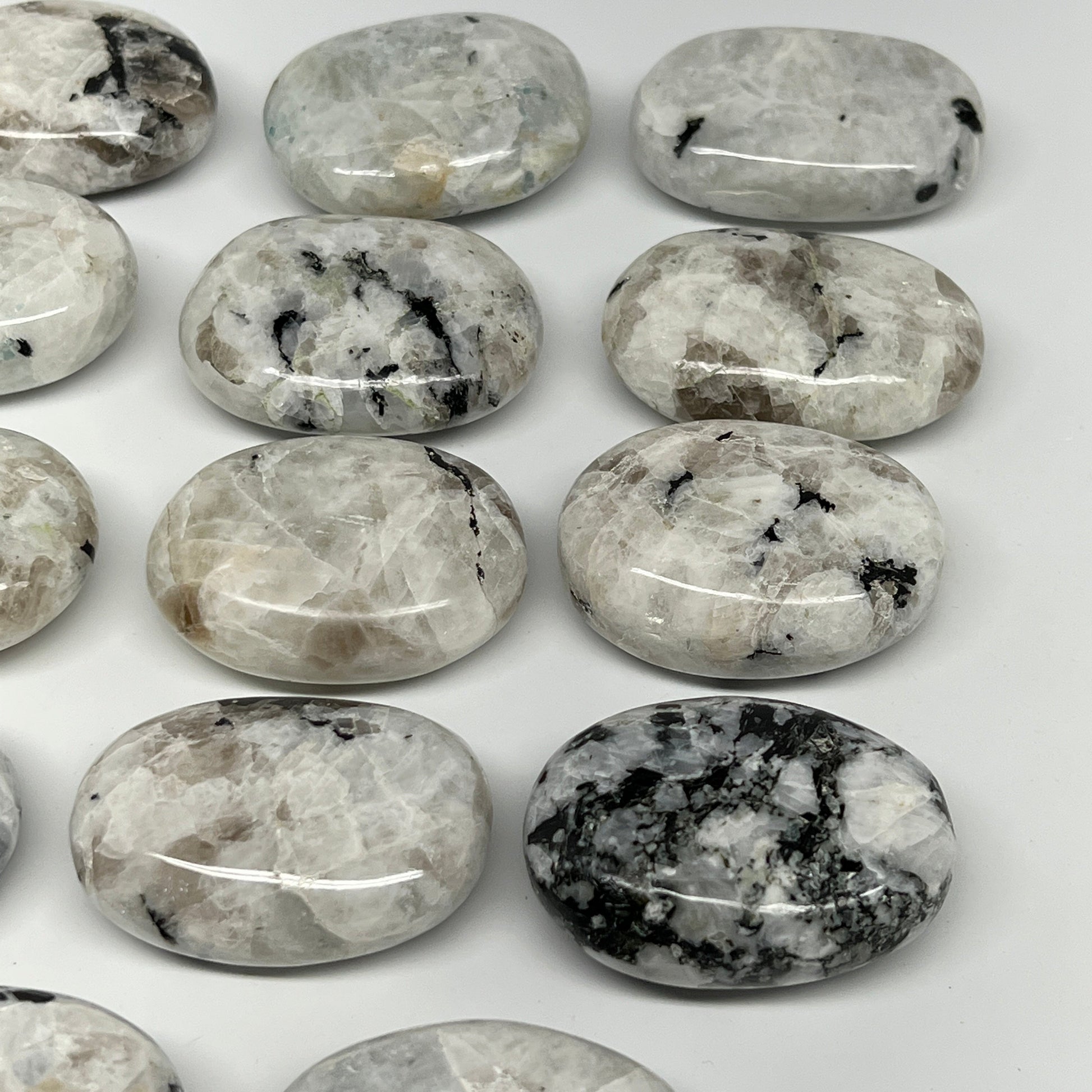 2.2 lb, 2"-2.3", 14 pcs, Rainbow Moonstone Palm-Stone Polished Reiki Crystal, B21350