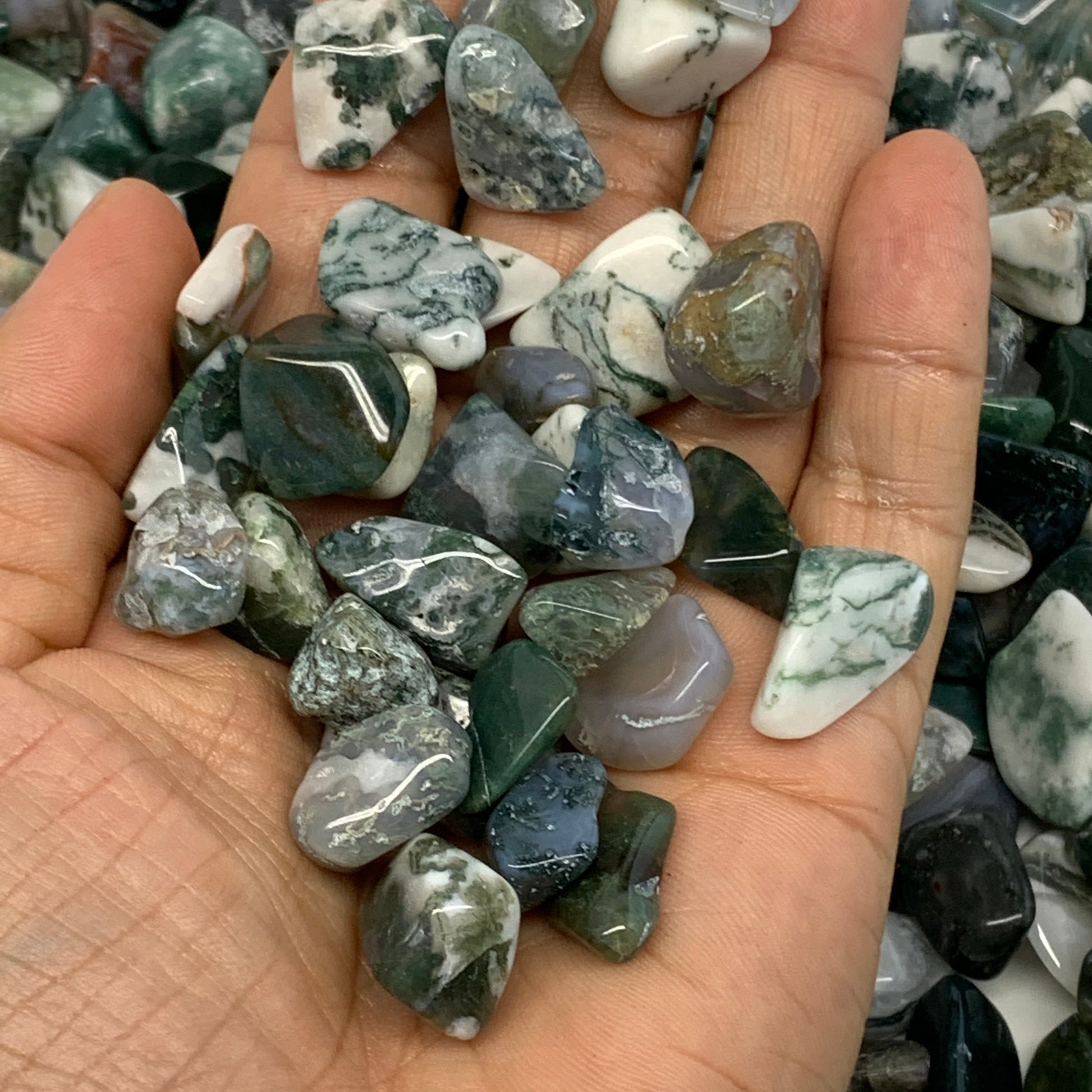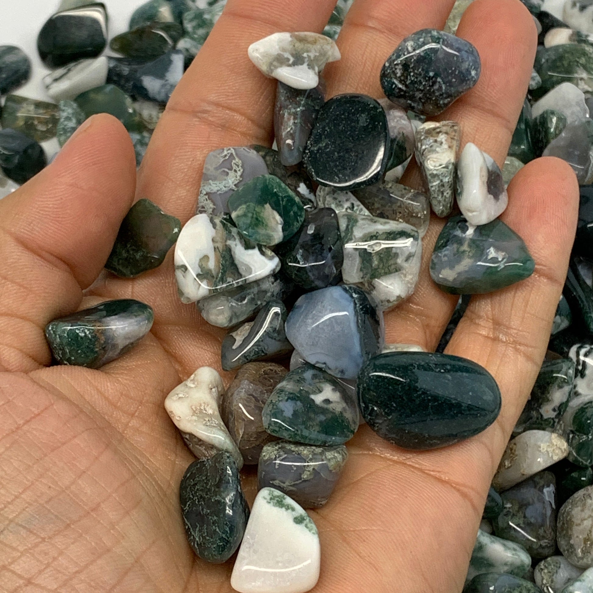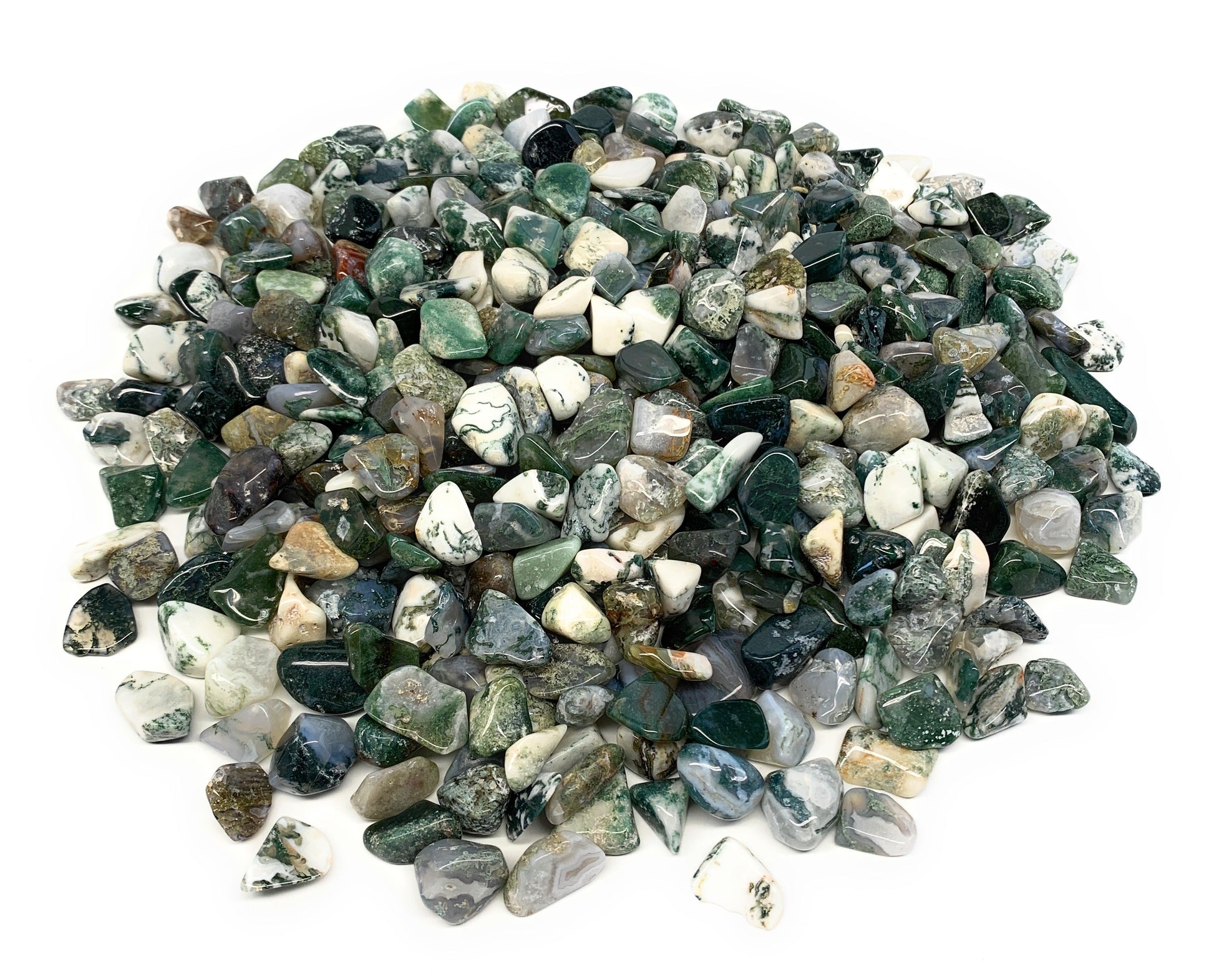 2.2 lbs, 0.5"-0.9", Moss Agate Chips Gravel Tumbled Crystal Polished Stones