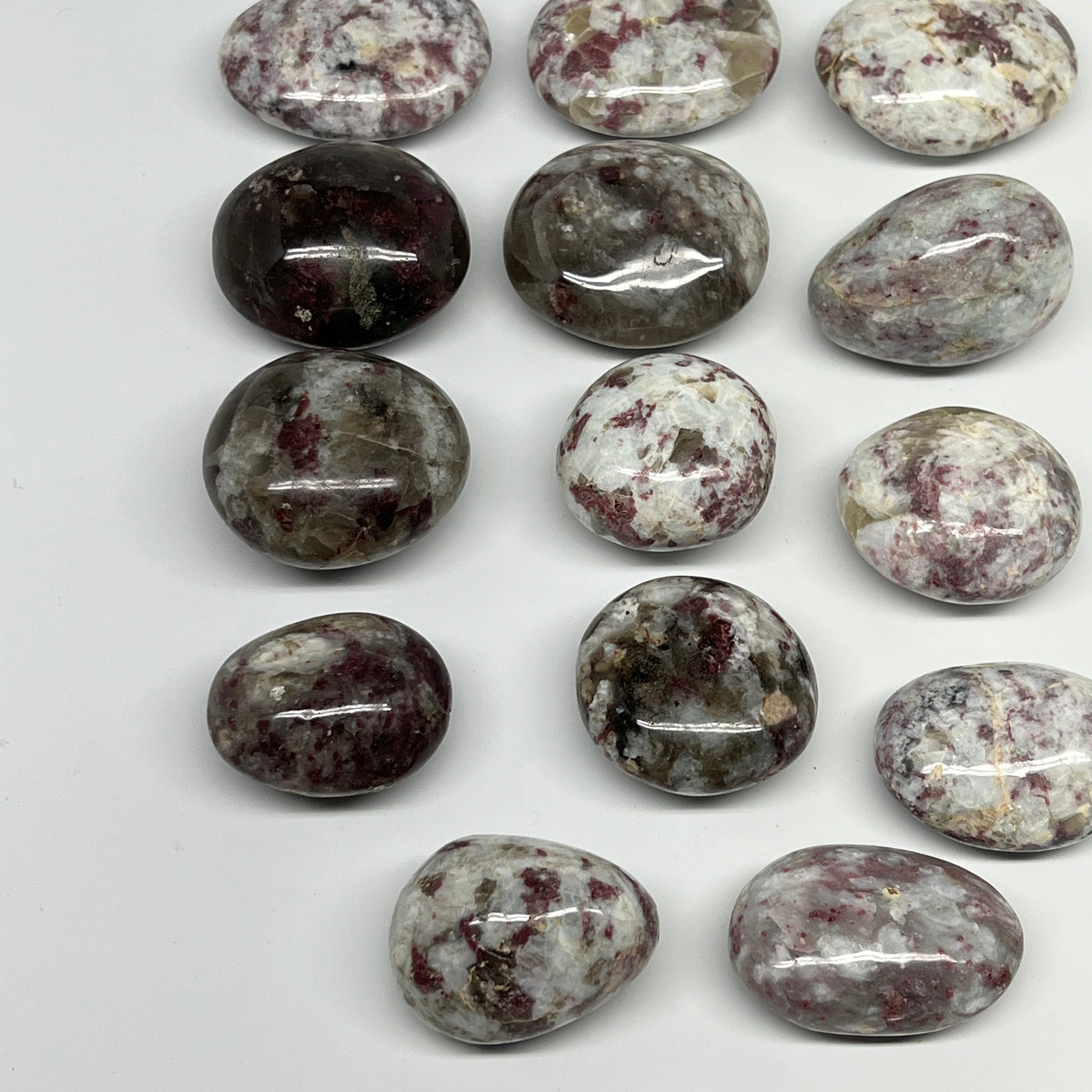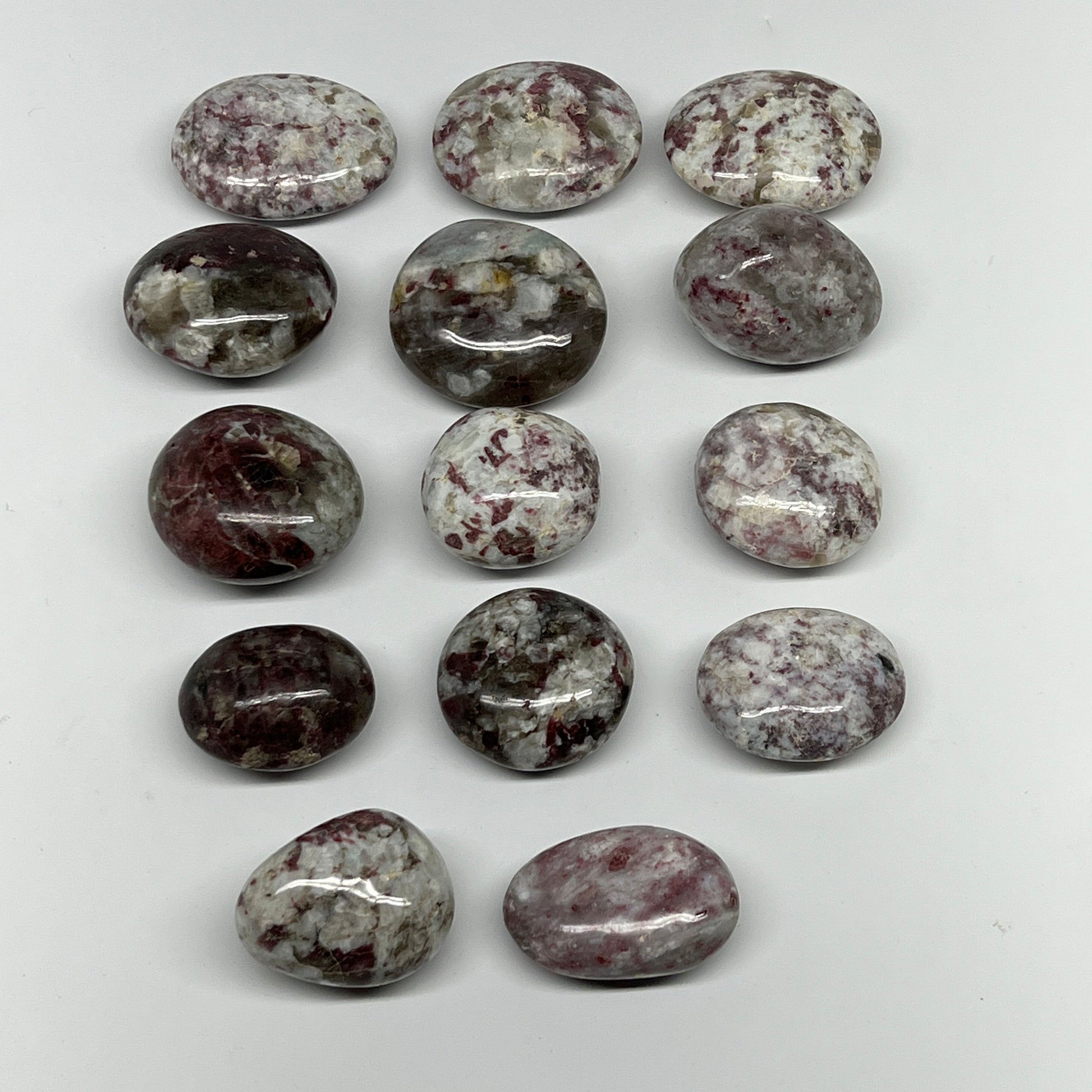 2.2 Lbs, 1.7"-2.3", 14pcs, Rubellite Tourmaline Palm-Stone Polished, B21034