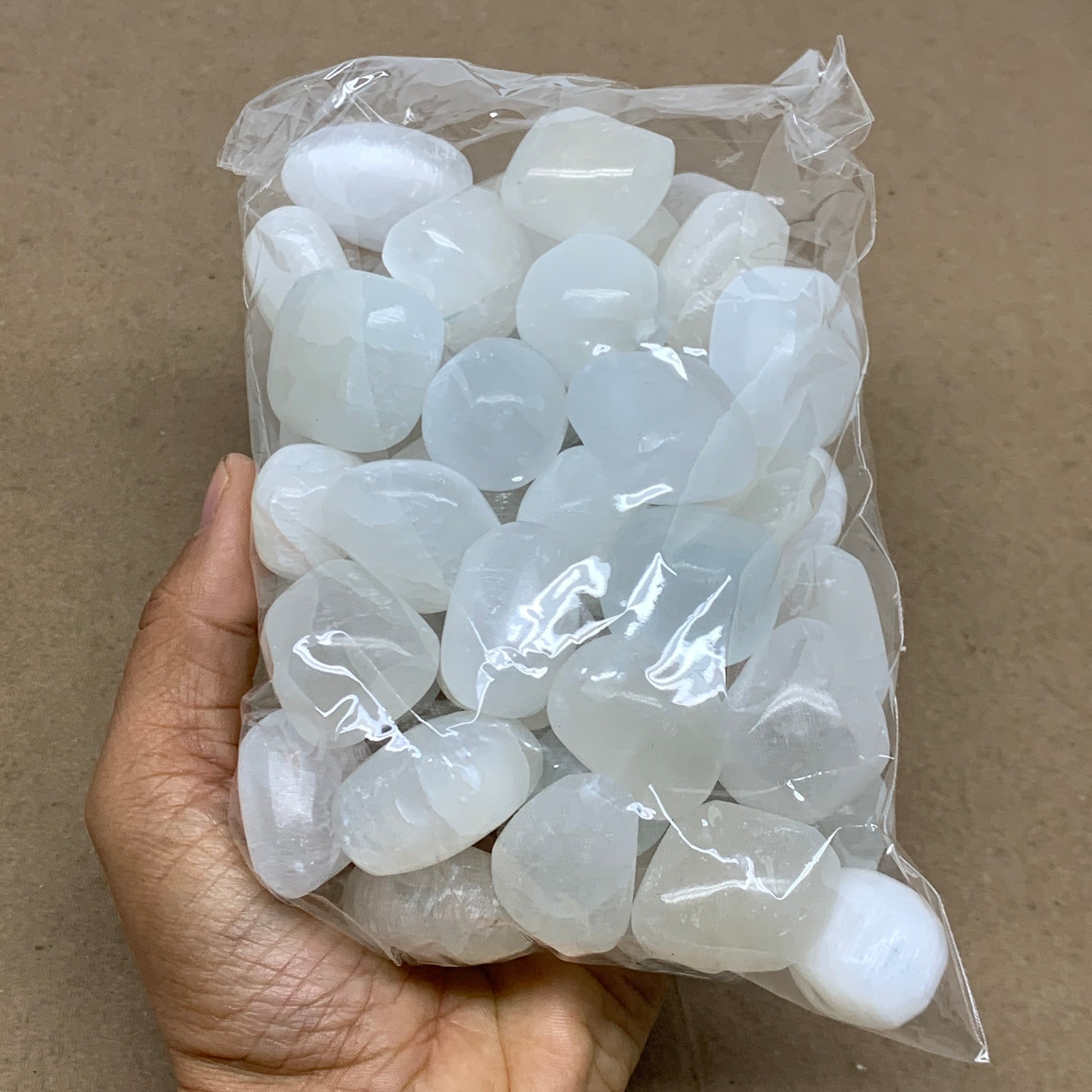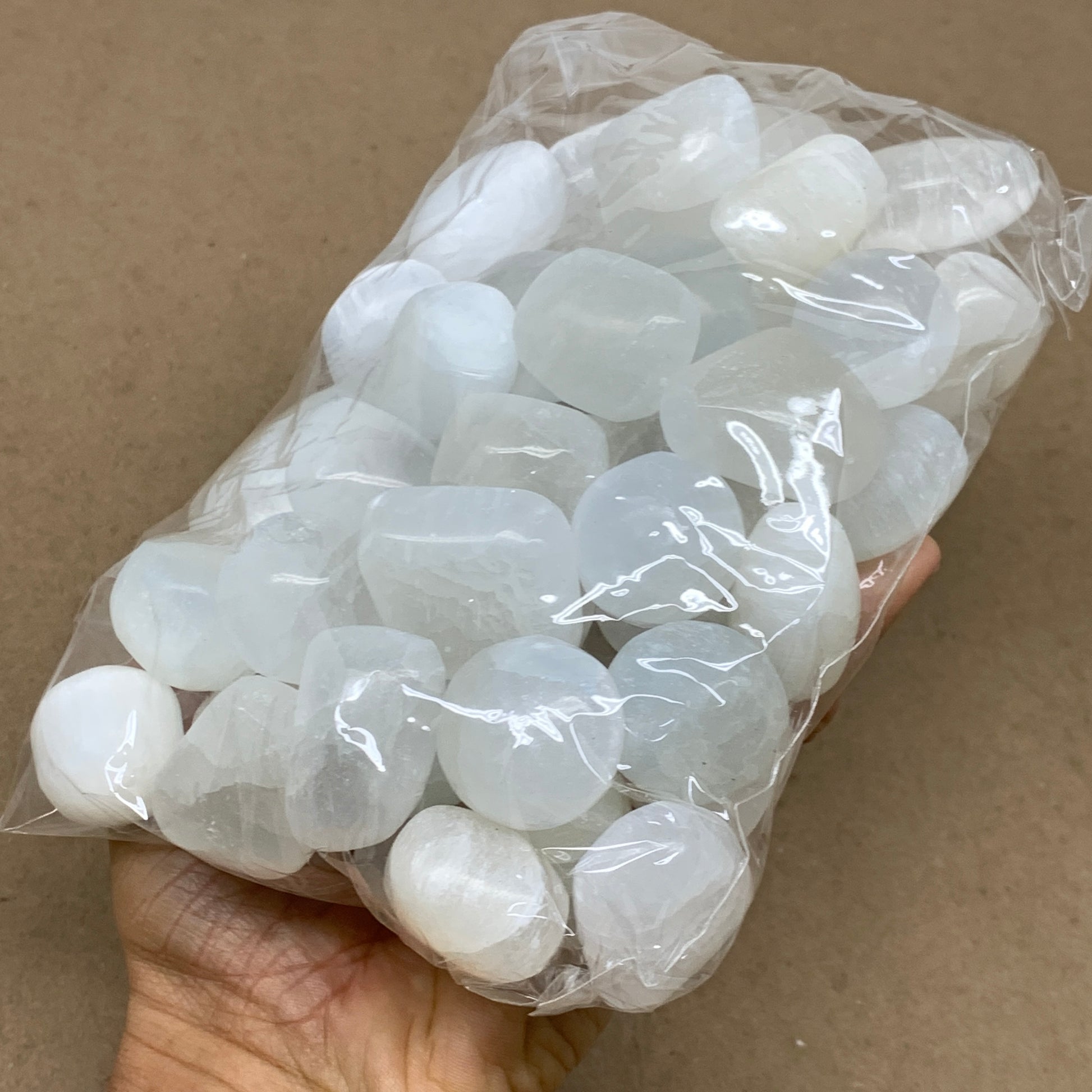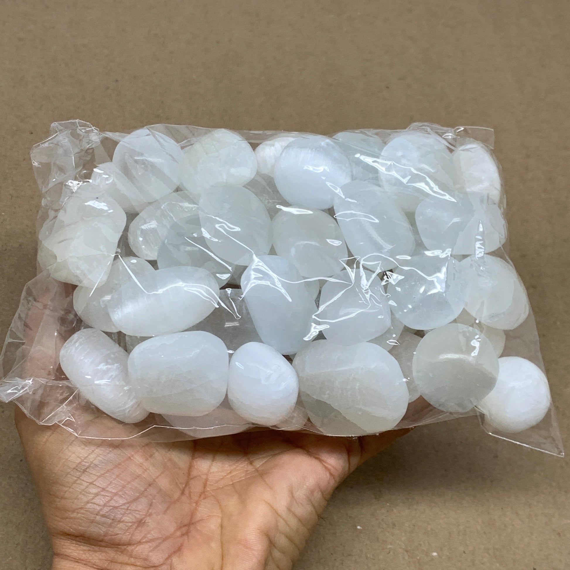 2.2 lbs, 1" x 1.4", Aprox 50pcs, Tumbled Selenite Crystals, Satin Spar, B36894