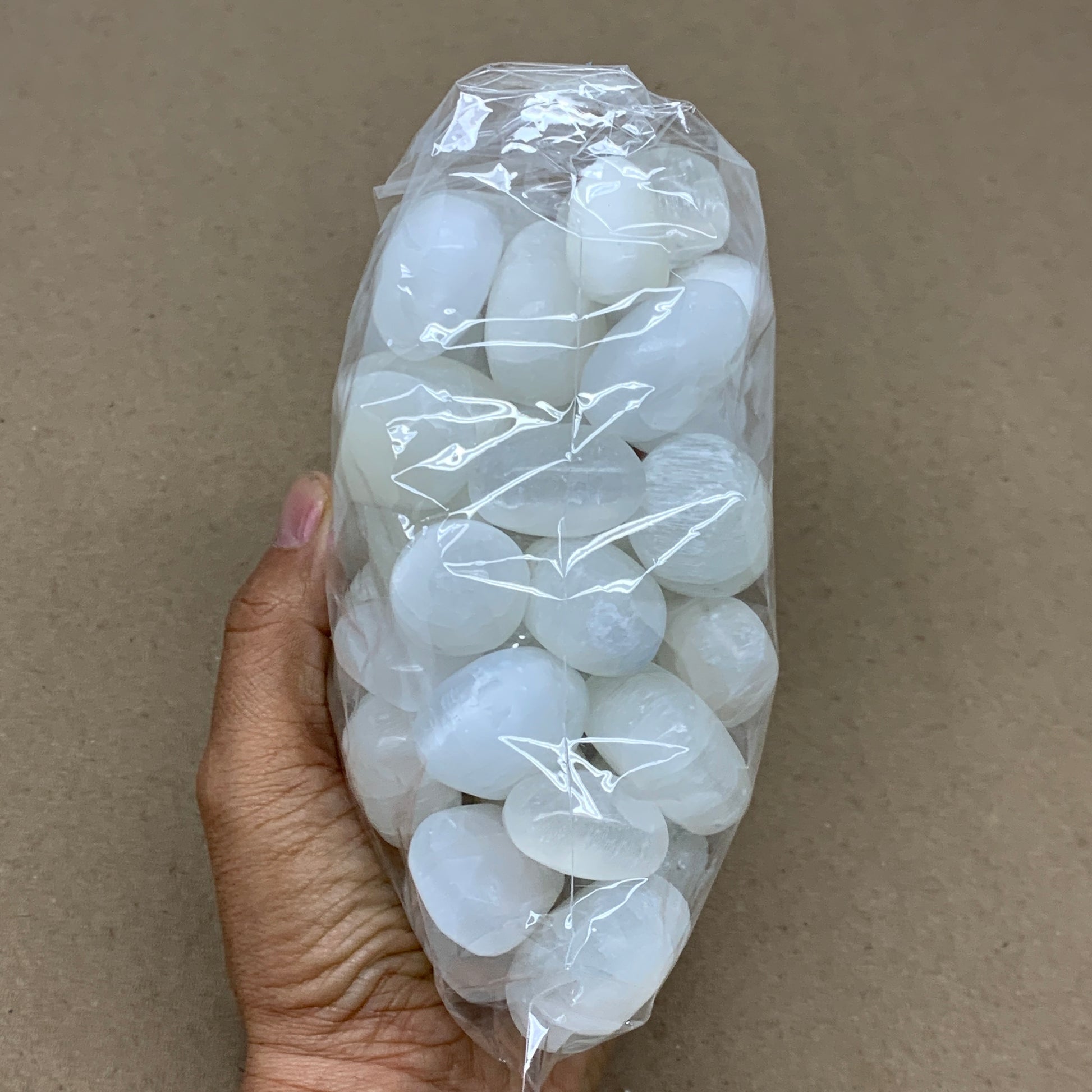 2.2 lbs, 1" x 1.4", Aprox 50pcs, Tumbled Selenite Crystals, Satin Spar, B36897