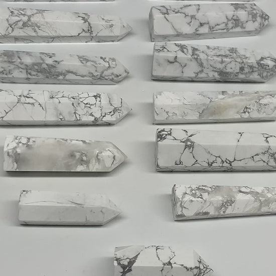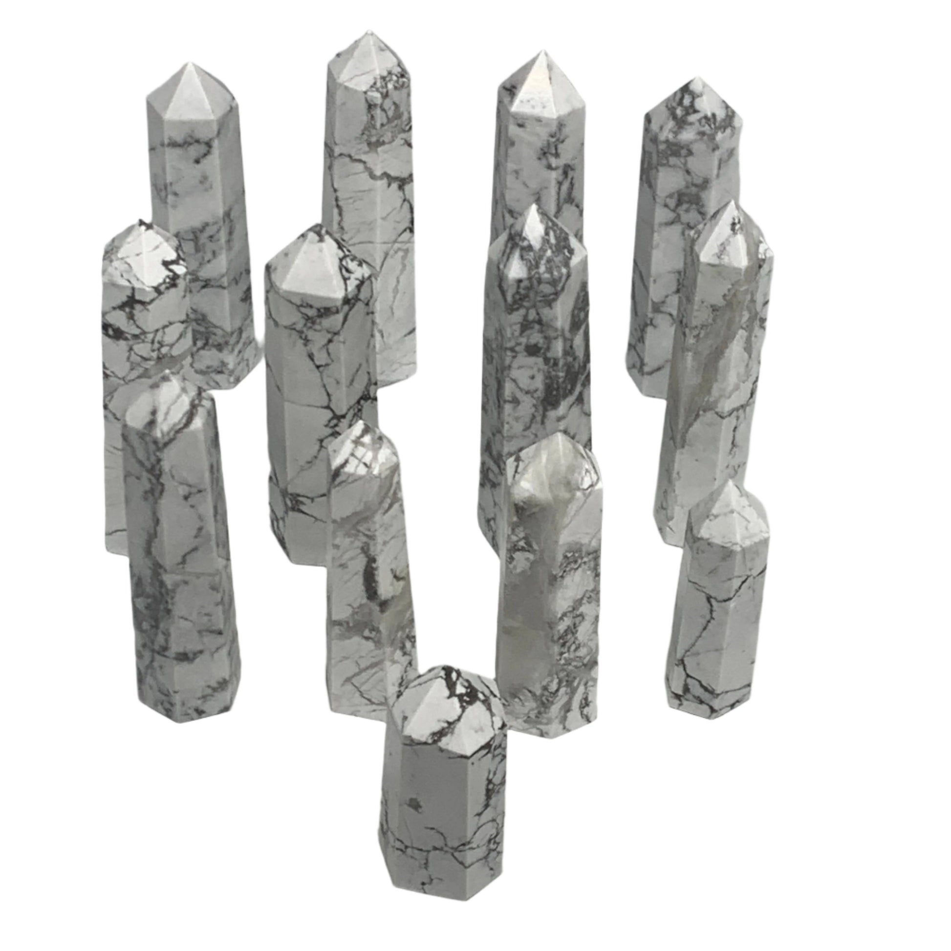 2.2 lbs, 2.1" - 3.9", 13pcs, Natural Howlite Towers, Obelisks, B29056