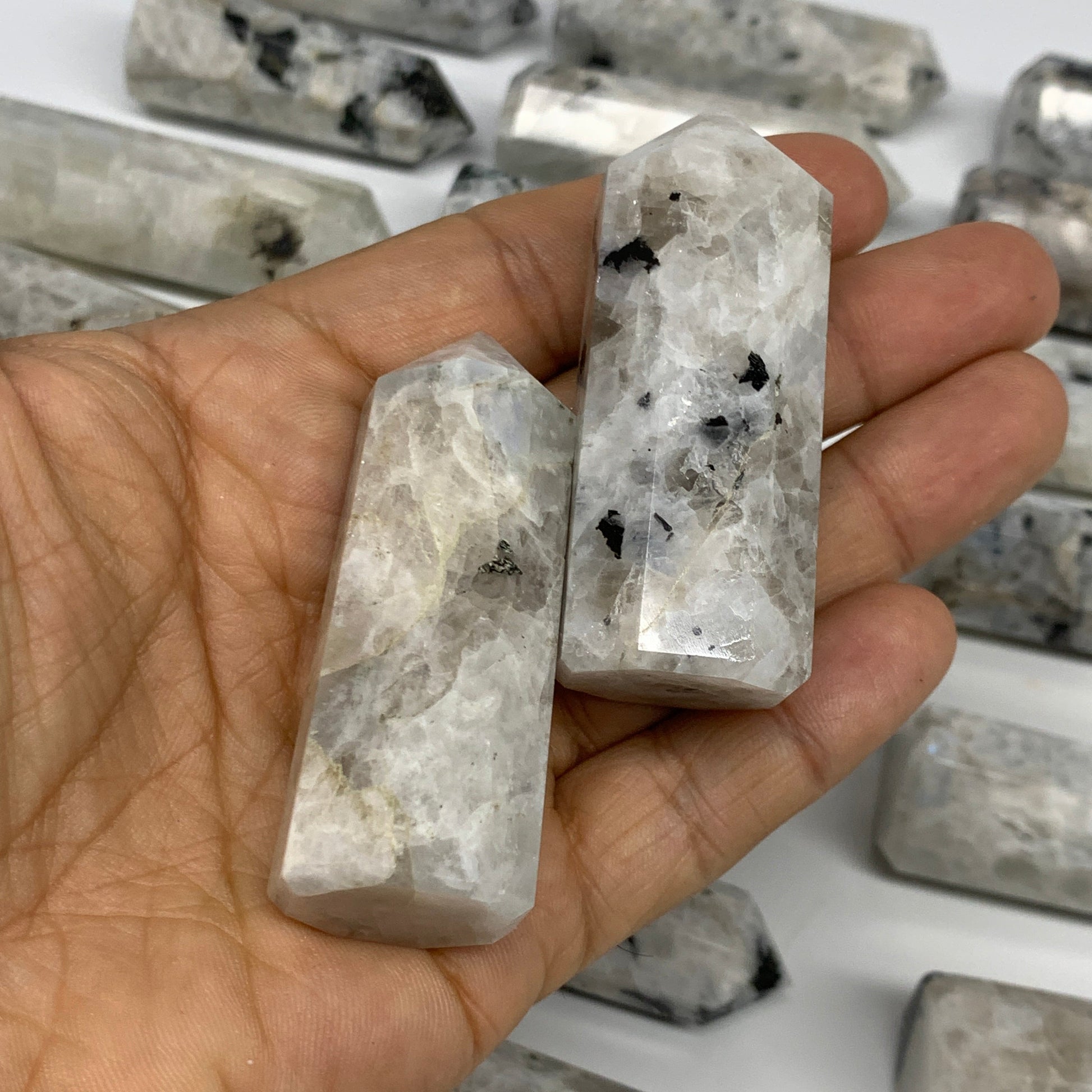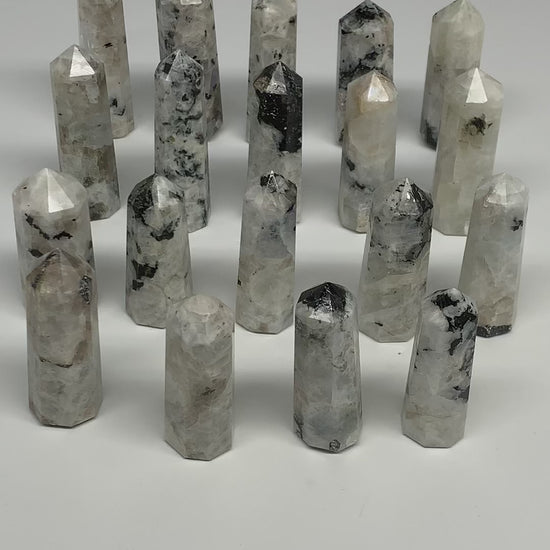 2.2 lbs, 2.3" - 3", 19pcs, Natural Rainbow Moonstone Towers, Obelisks, B29119