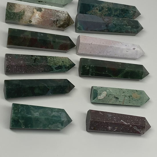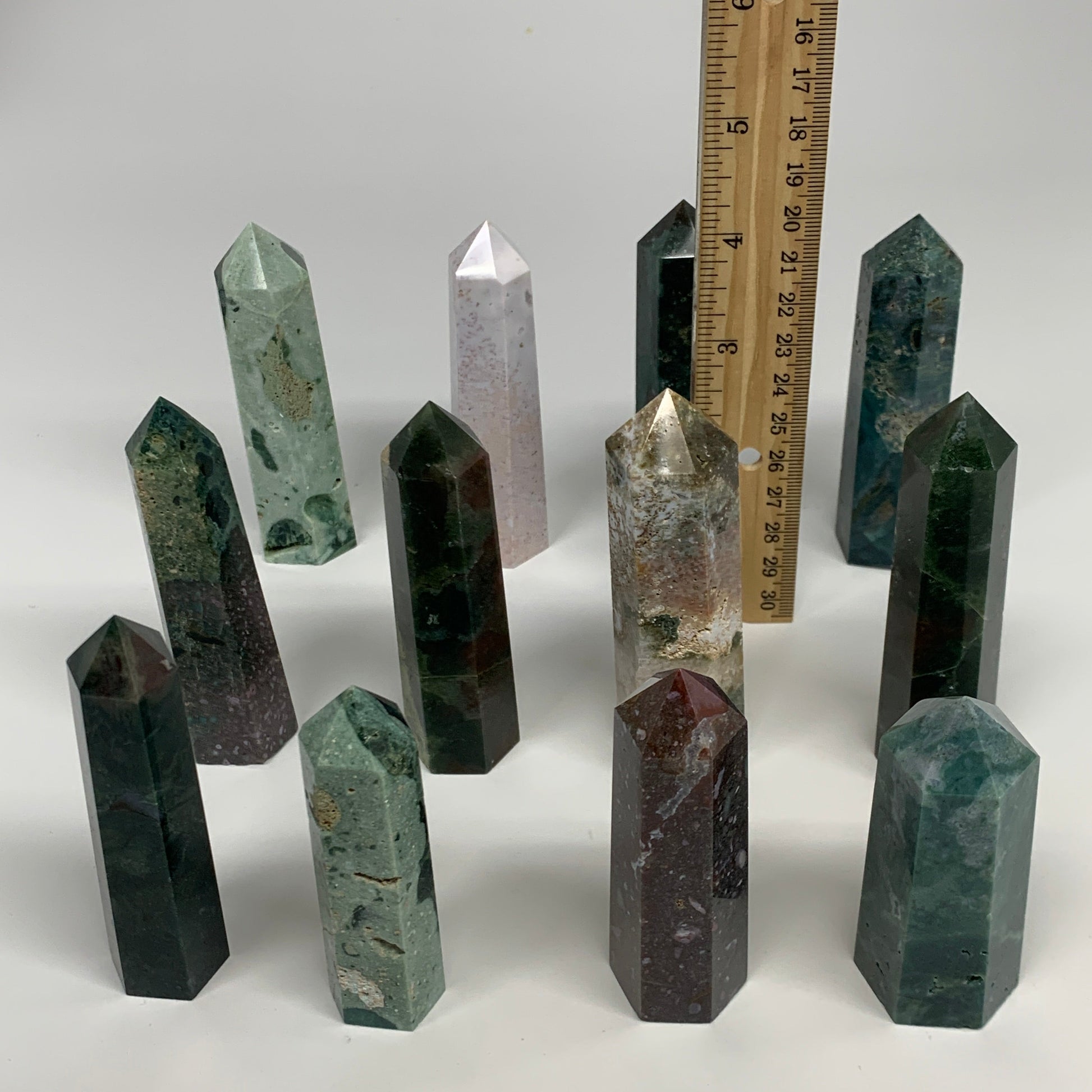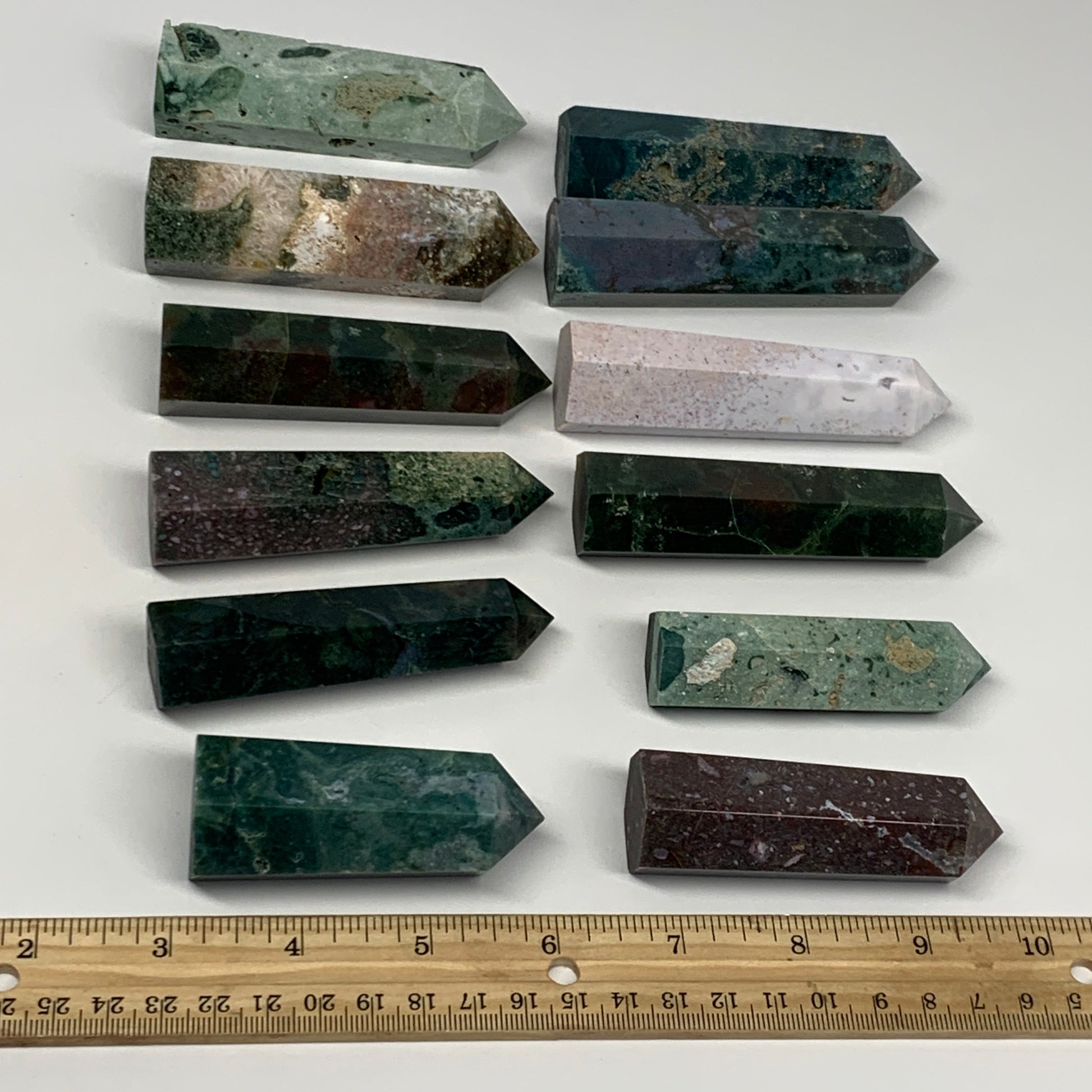 2.2 lbs, 2.8" - 3.9", 12pcs, Natural Ocean Jasper Towers, Obelisks, B29086