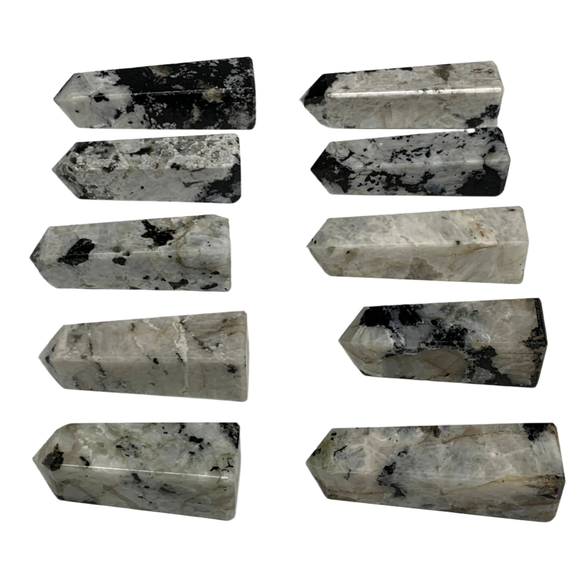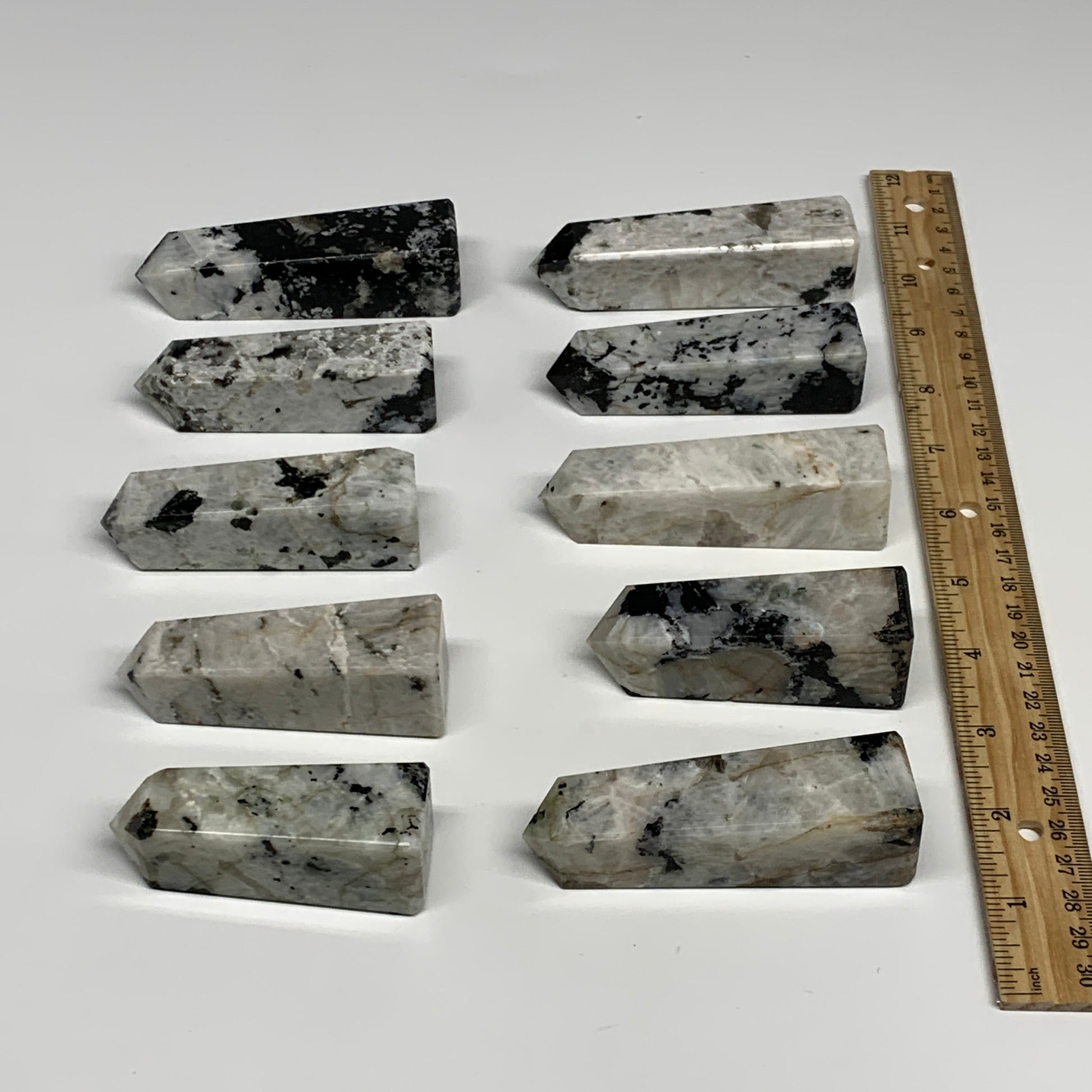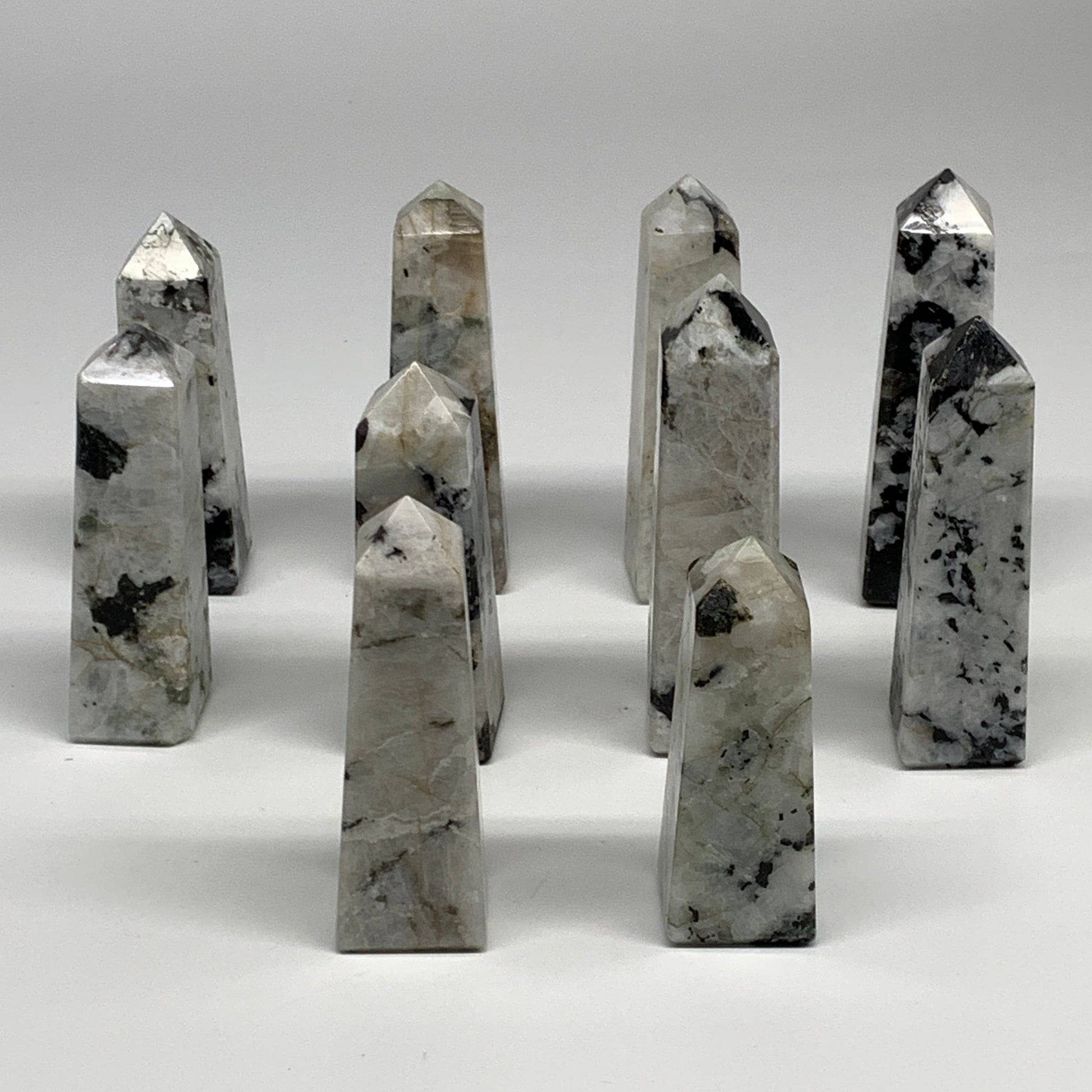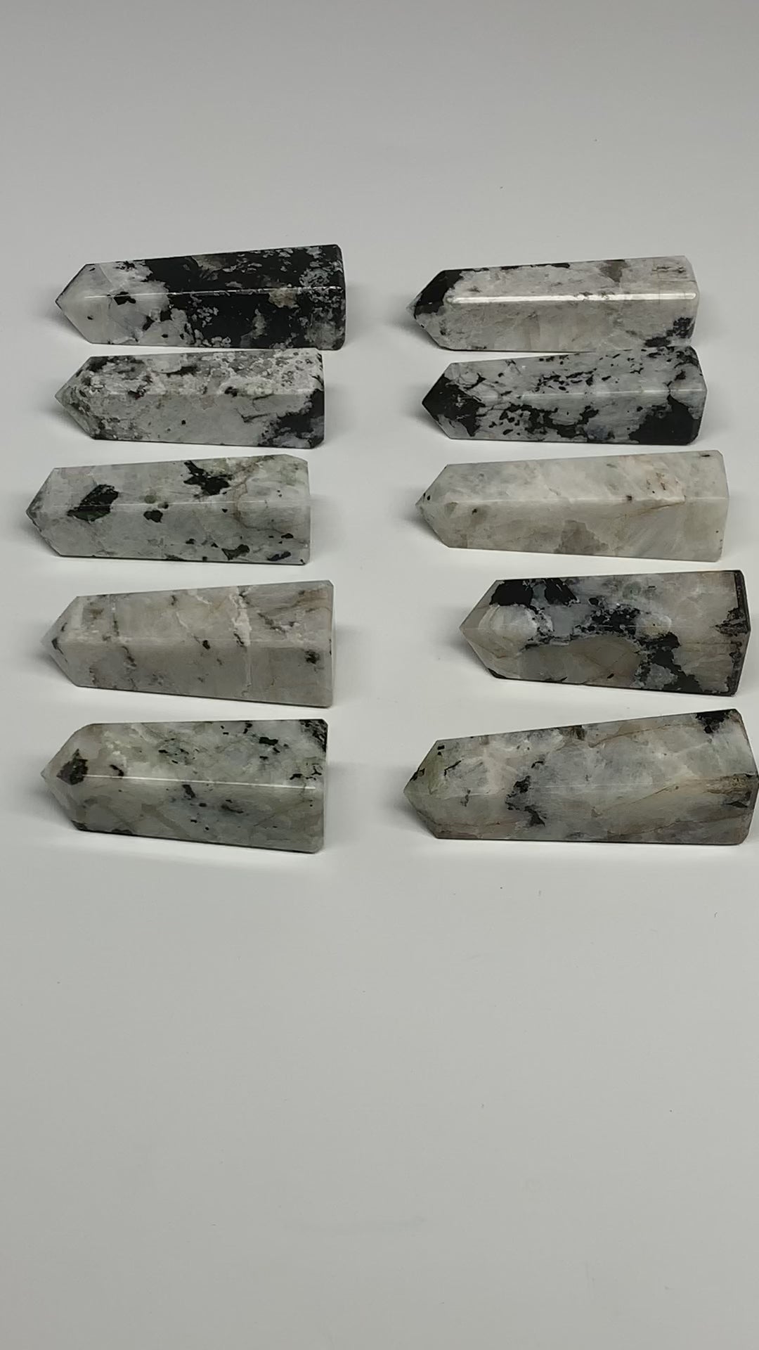 2.2 lbs, 2.9" - 3.8", 10pcs, Natural Rainbow Moonstone Towers, Obelisks, B29310