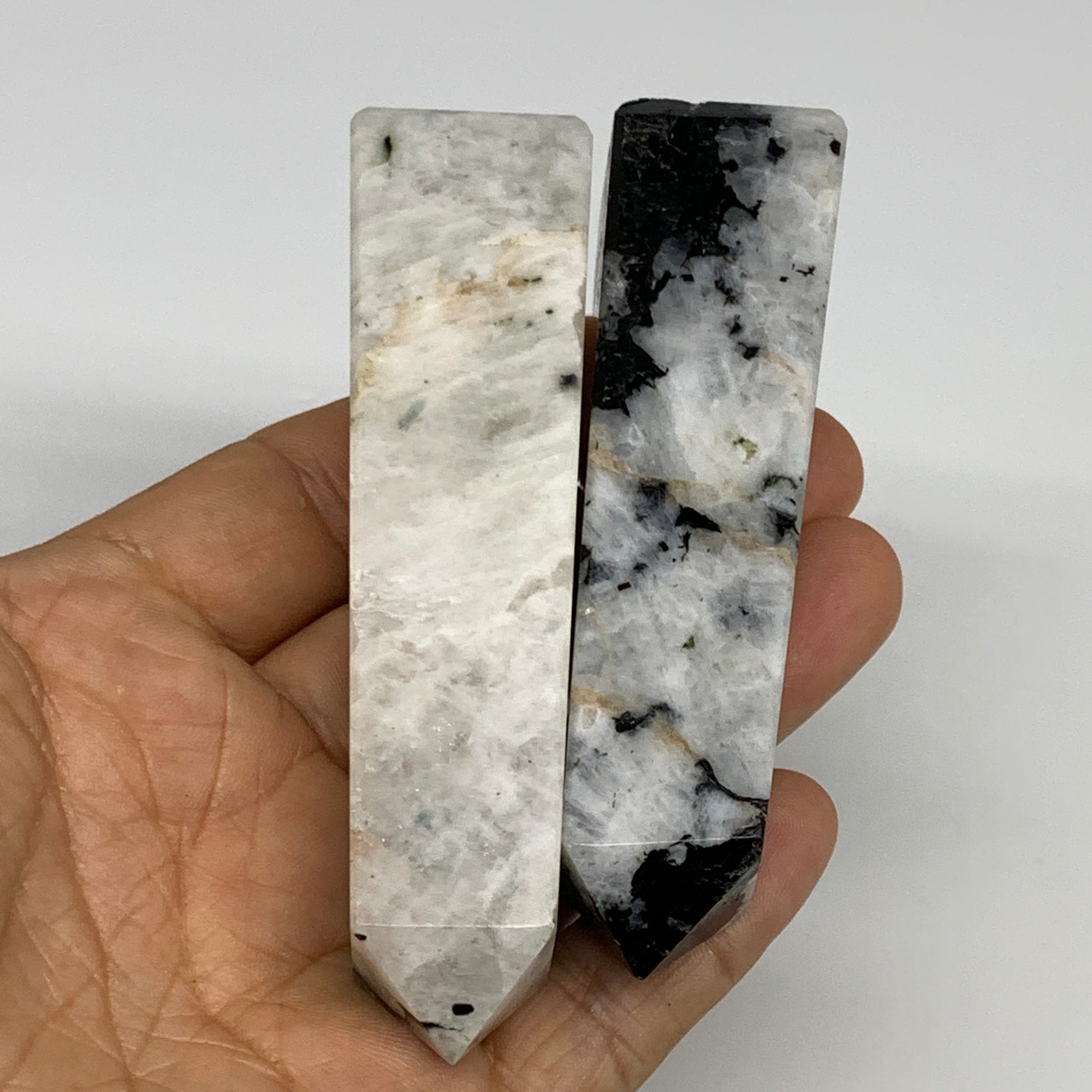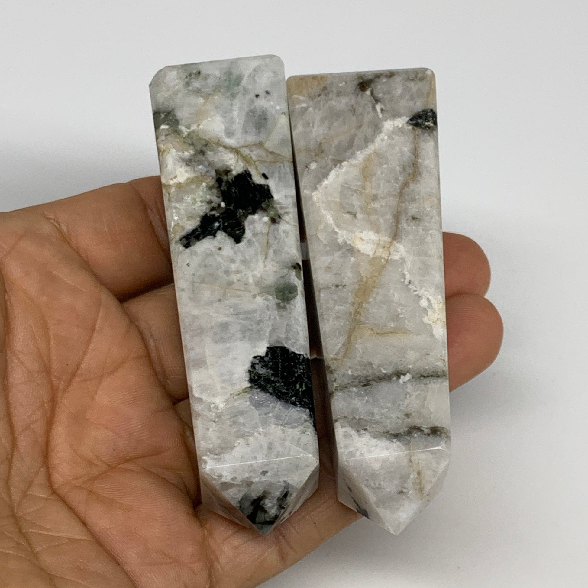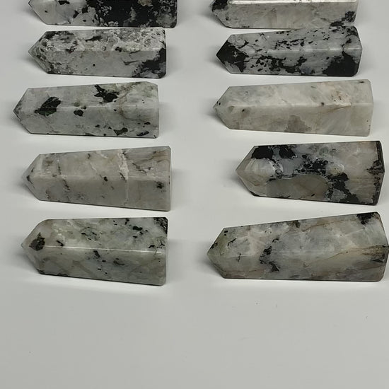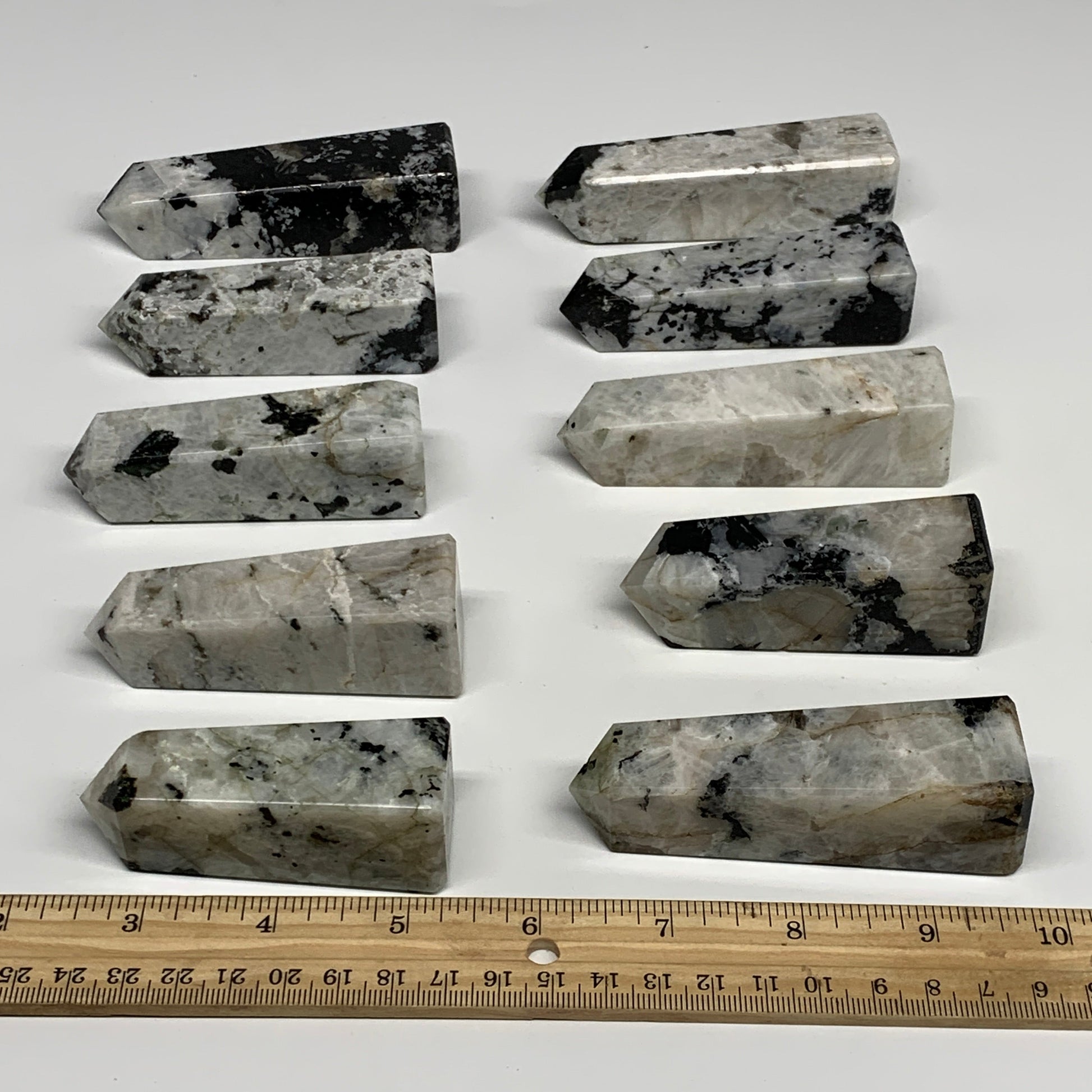 2.2 lbs, 2.9" - 3.8", 10pcs, Natural Rainbow Moonstone Towers, Obelisks, B29310