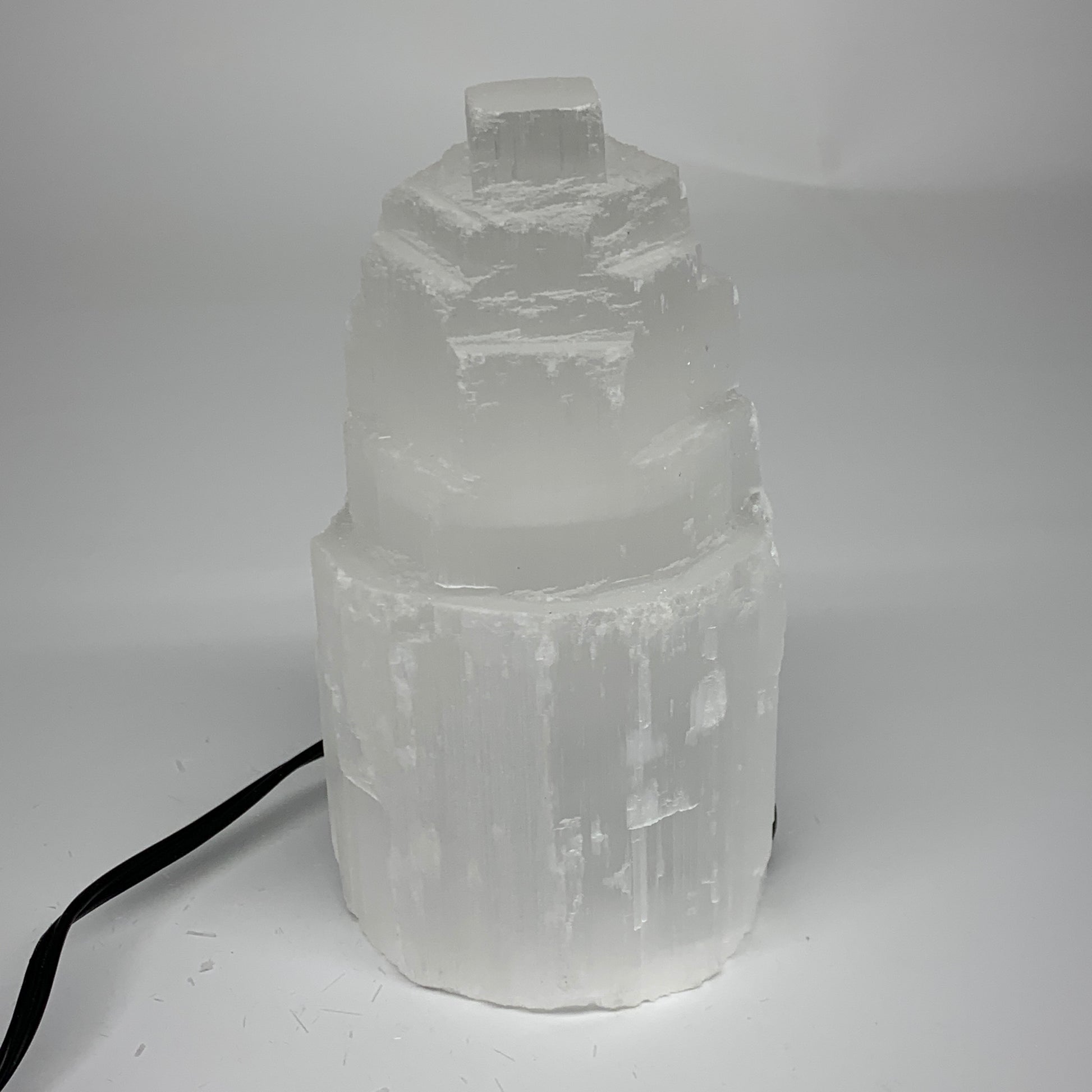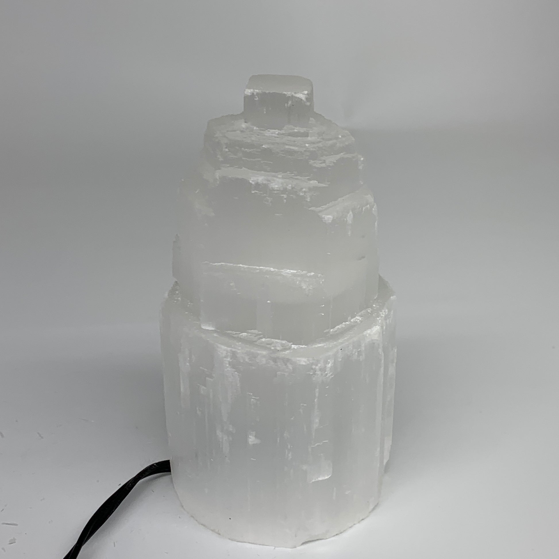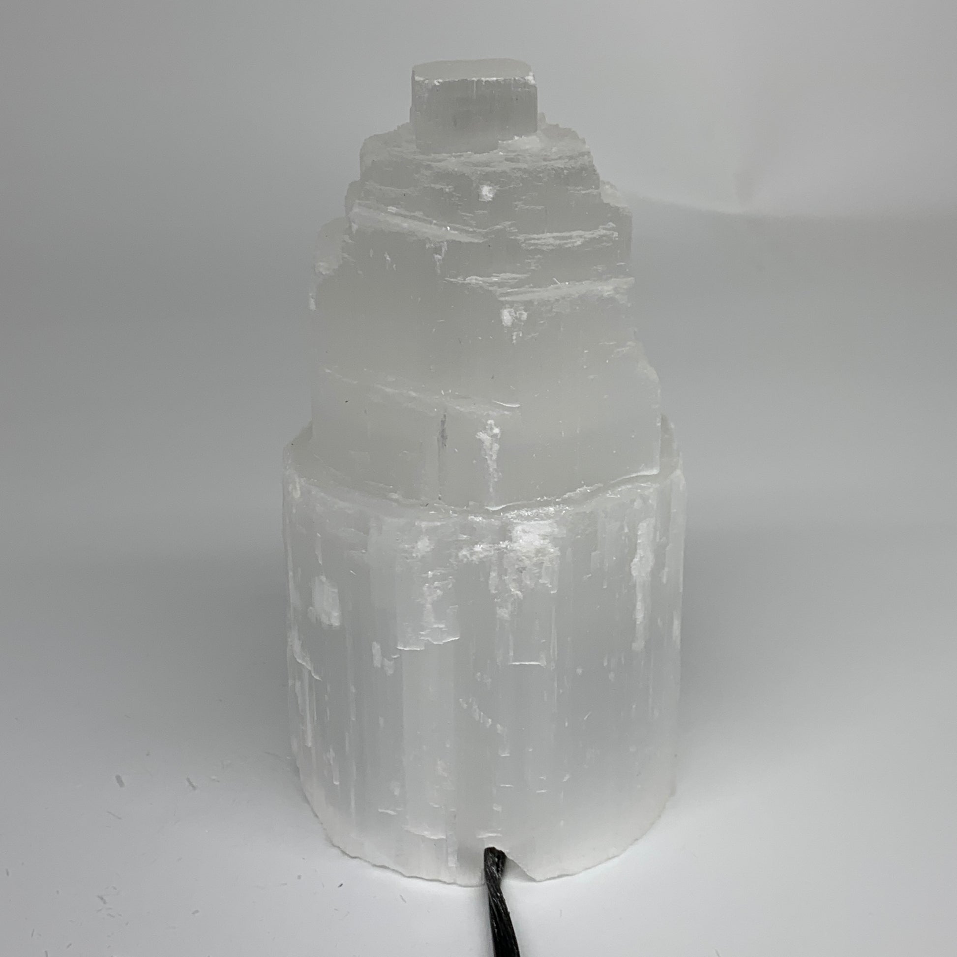2.2 lbs, 6"x3.1", Raw Rough Selenite (Satin Spar) Lamp Tower, 6ft Chord, B35877