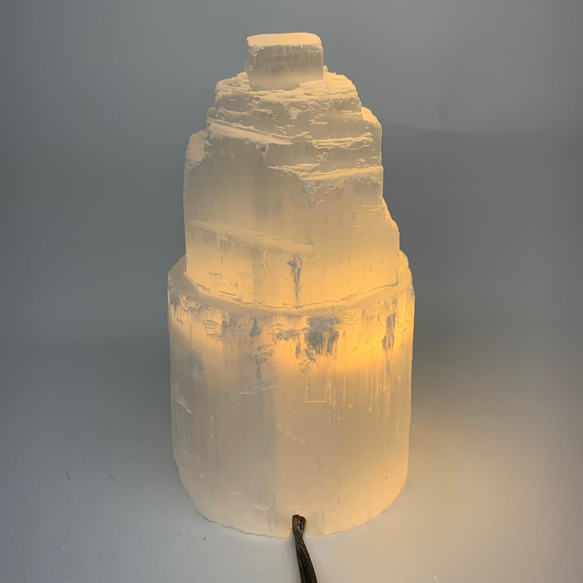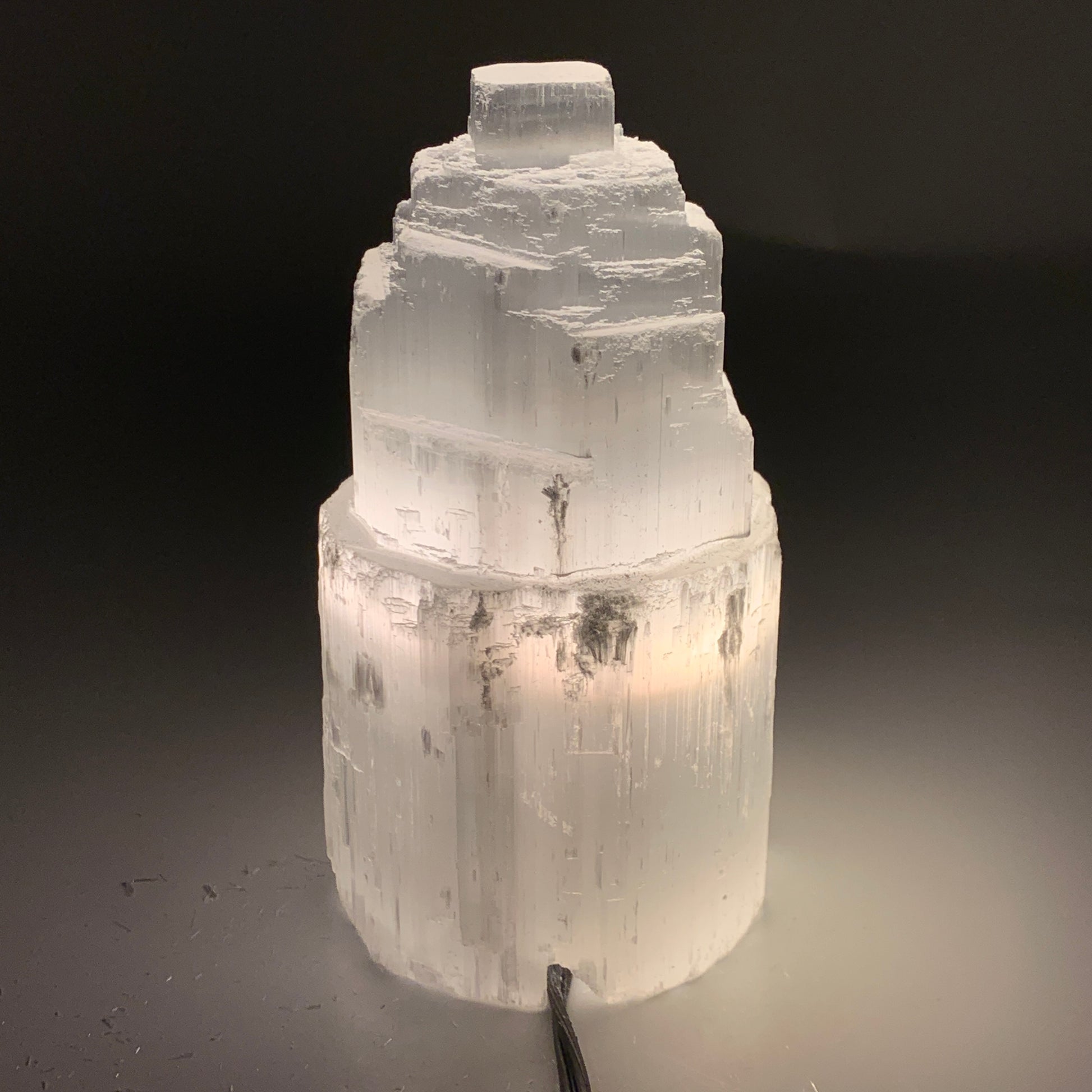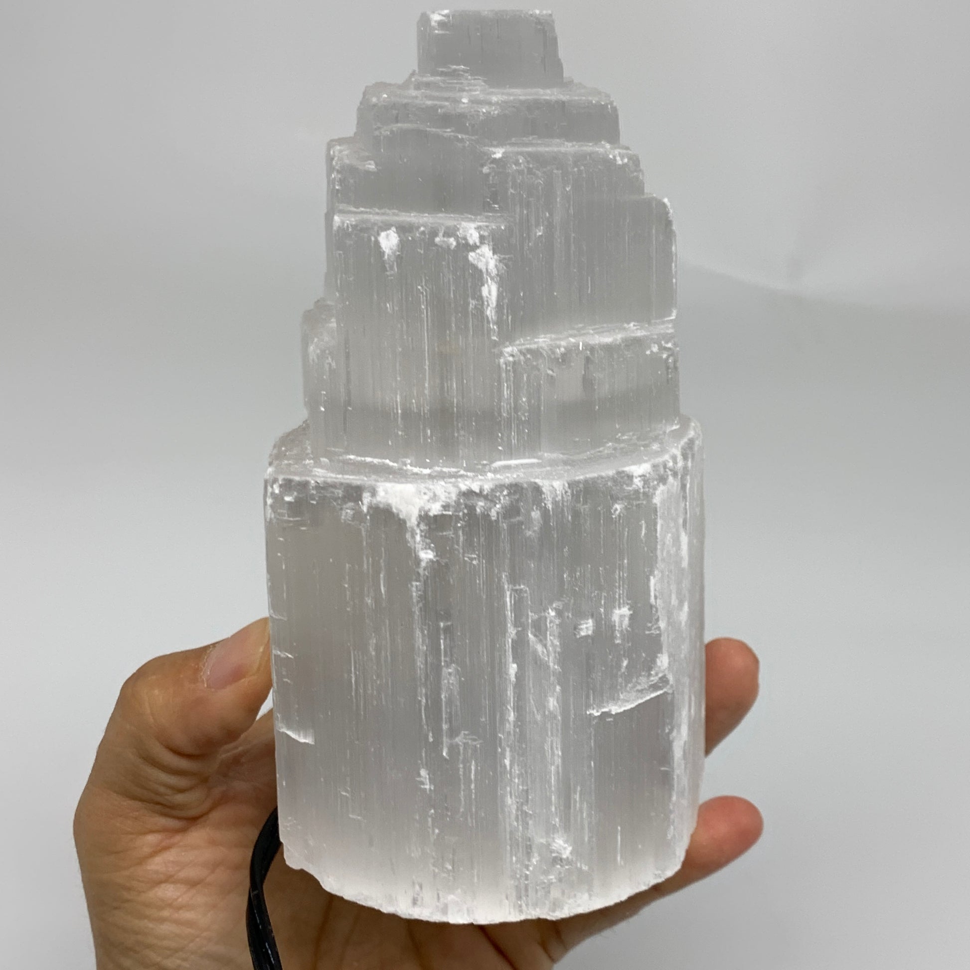 2.2 lbs, 6"x3.1", Raw Rough Selenite (Satin Spar) Lamp Tower, 6ft Chord, B35877
