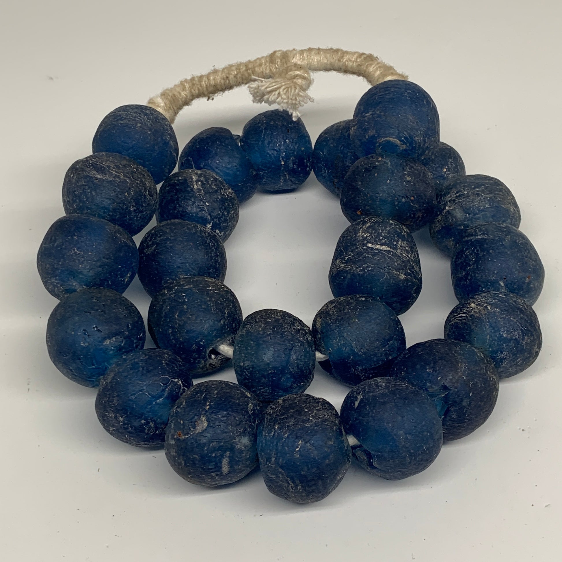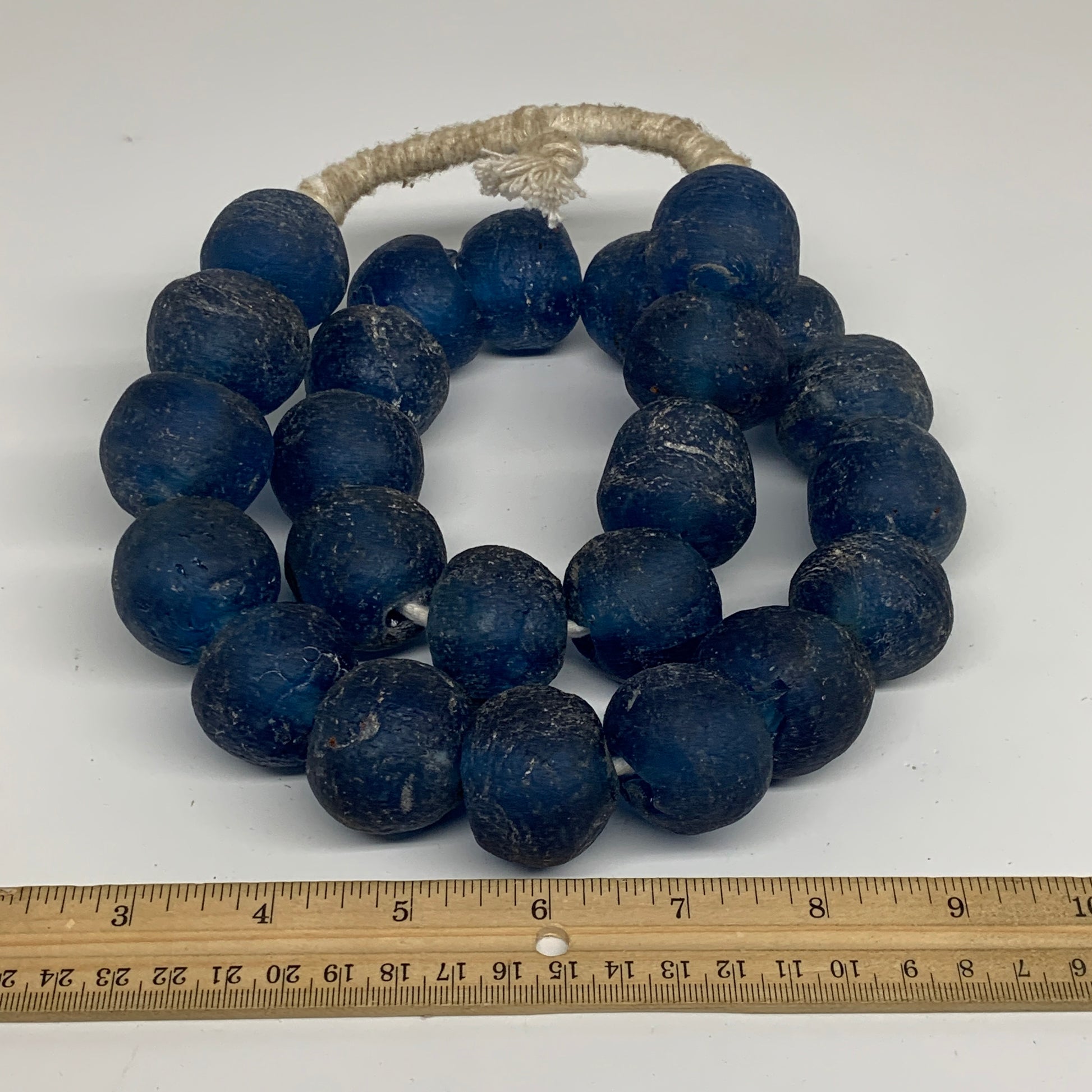 2.29 lbs, 23mm-30mm, 1 Strand, 24 beads, Blue Round Sea Glass Beads, B35650