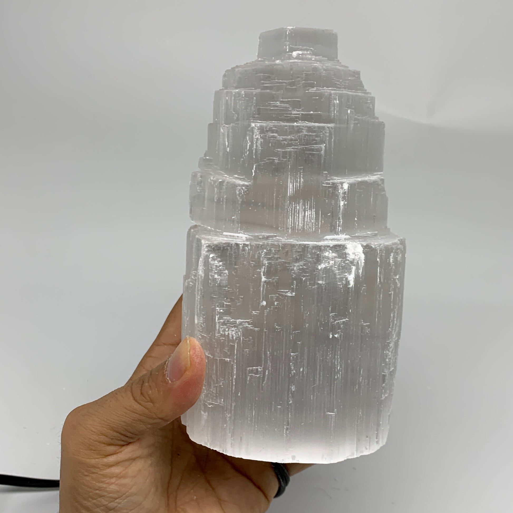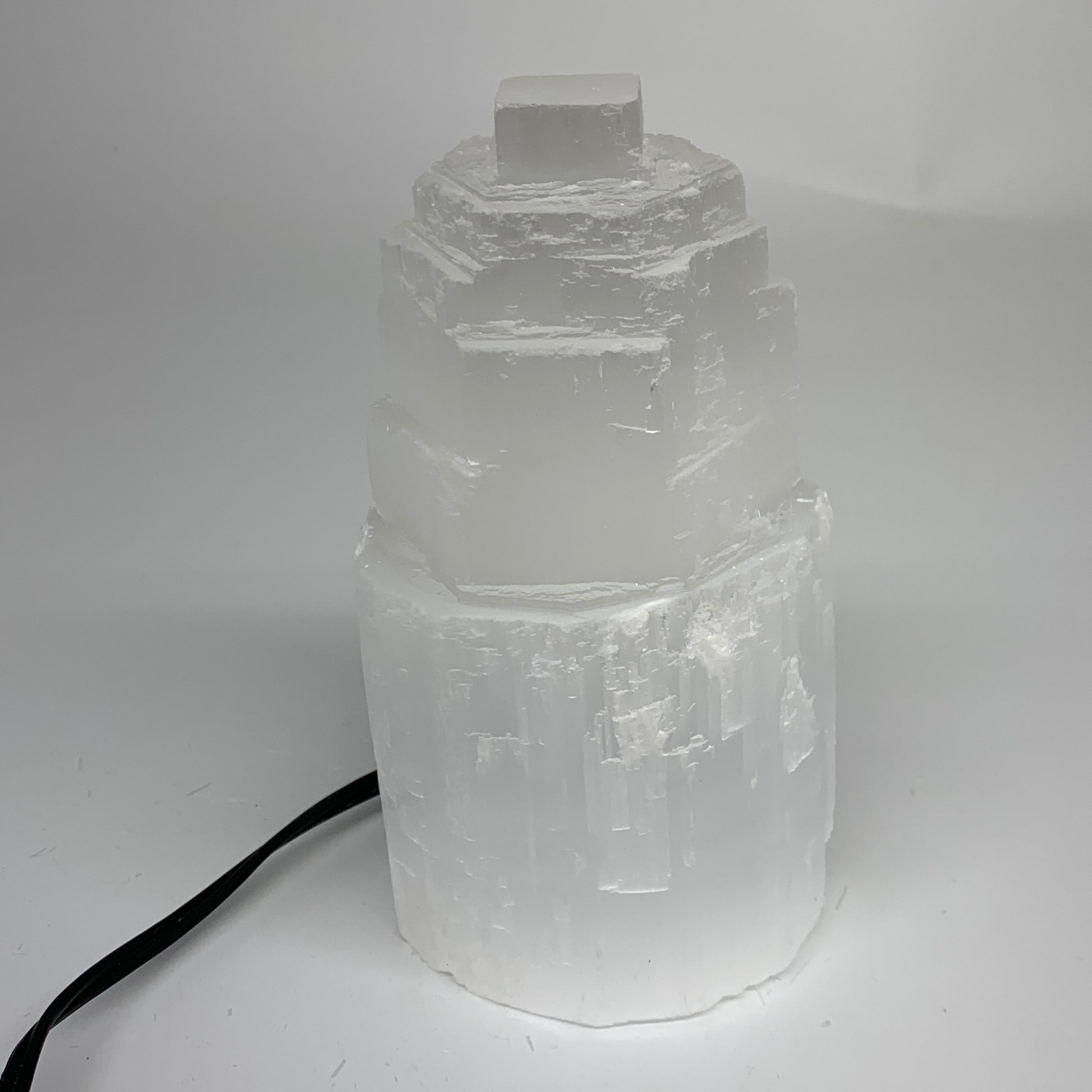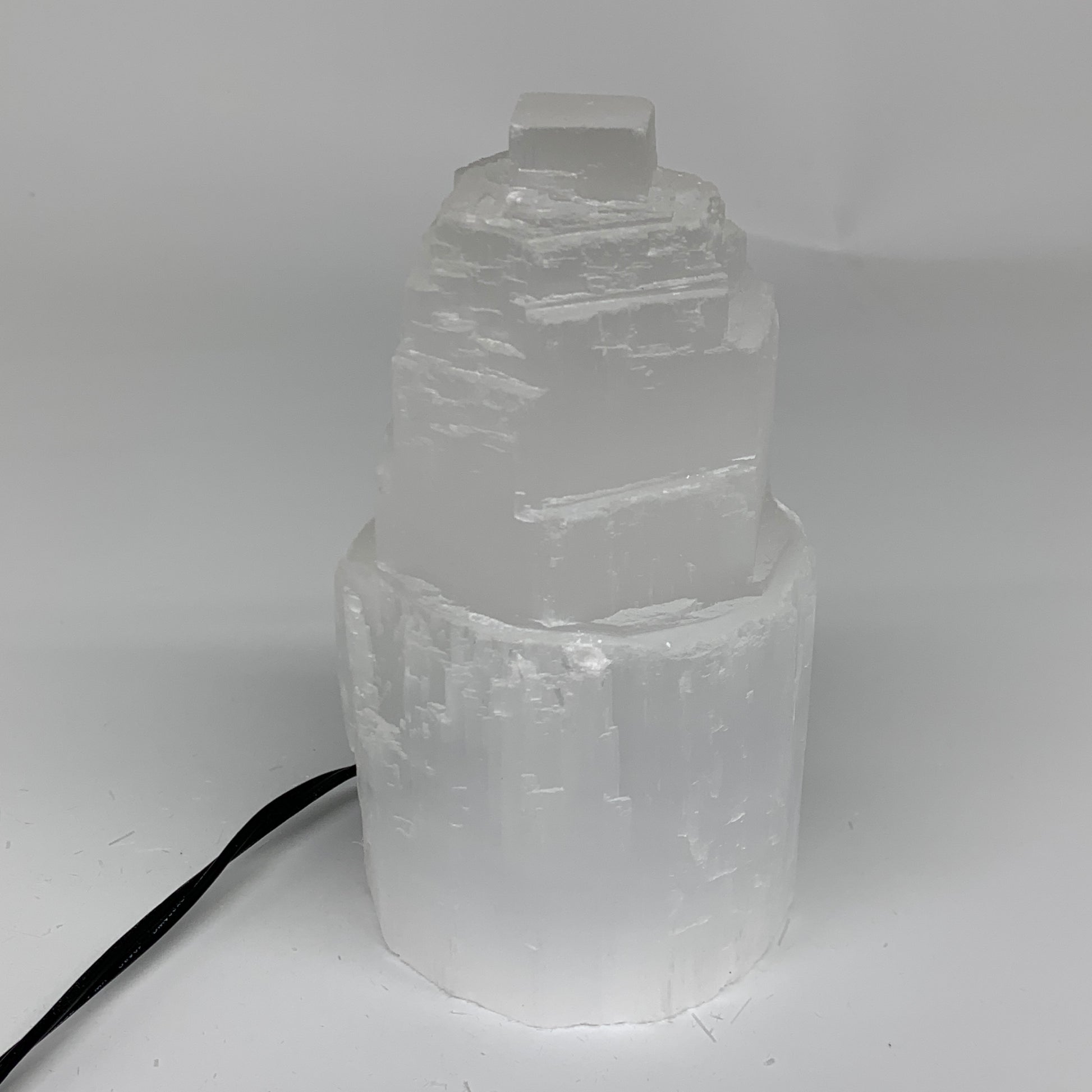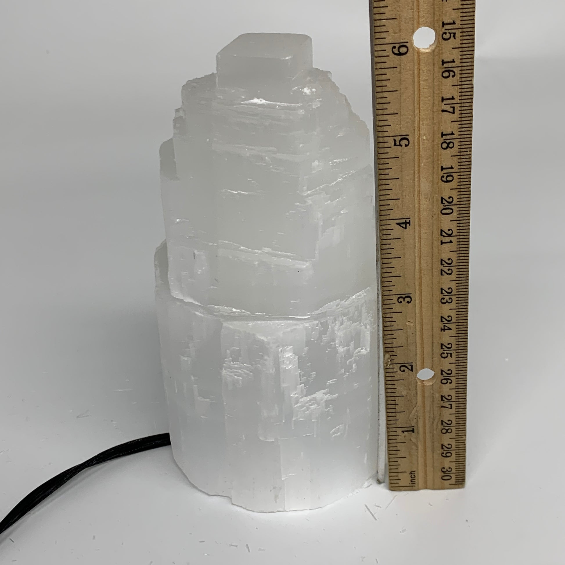 2.3 lbs, 6"x3.2", Raw Rough Selenite (Satin Spar) Lamp Tower, 6ft Chord, B35866