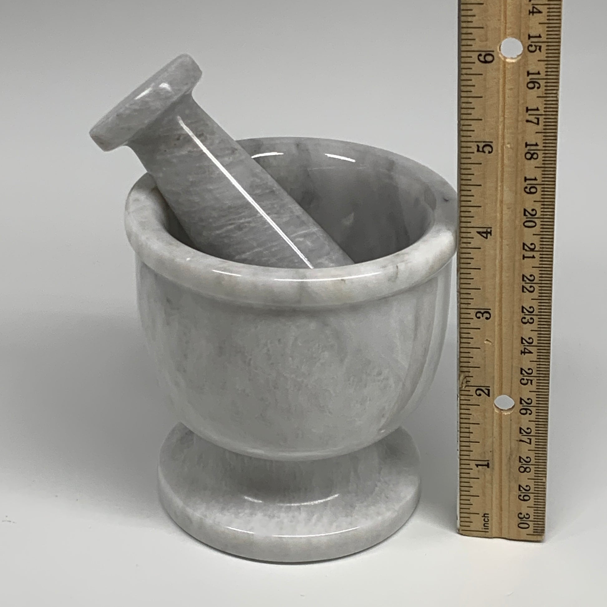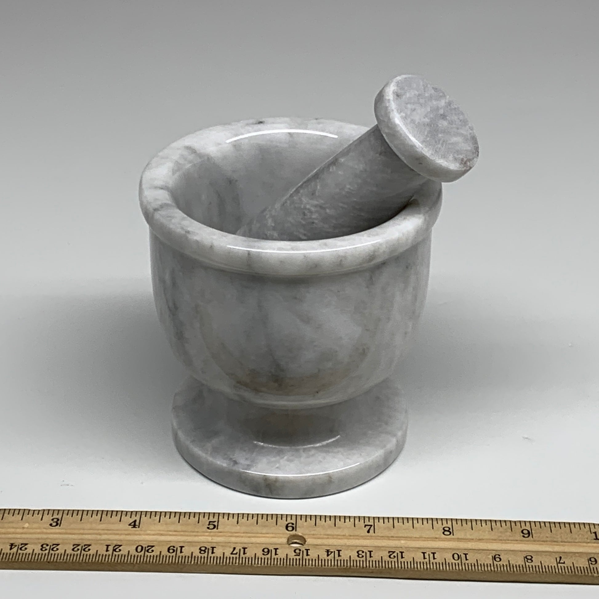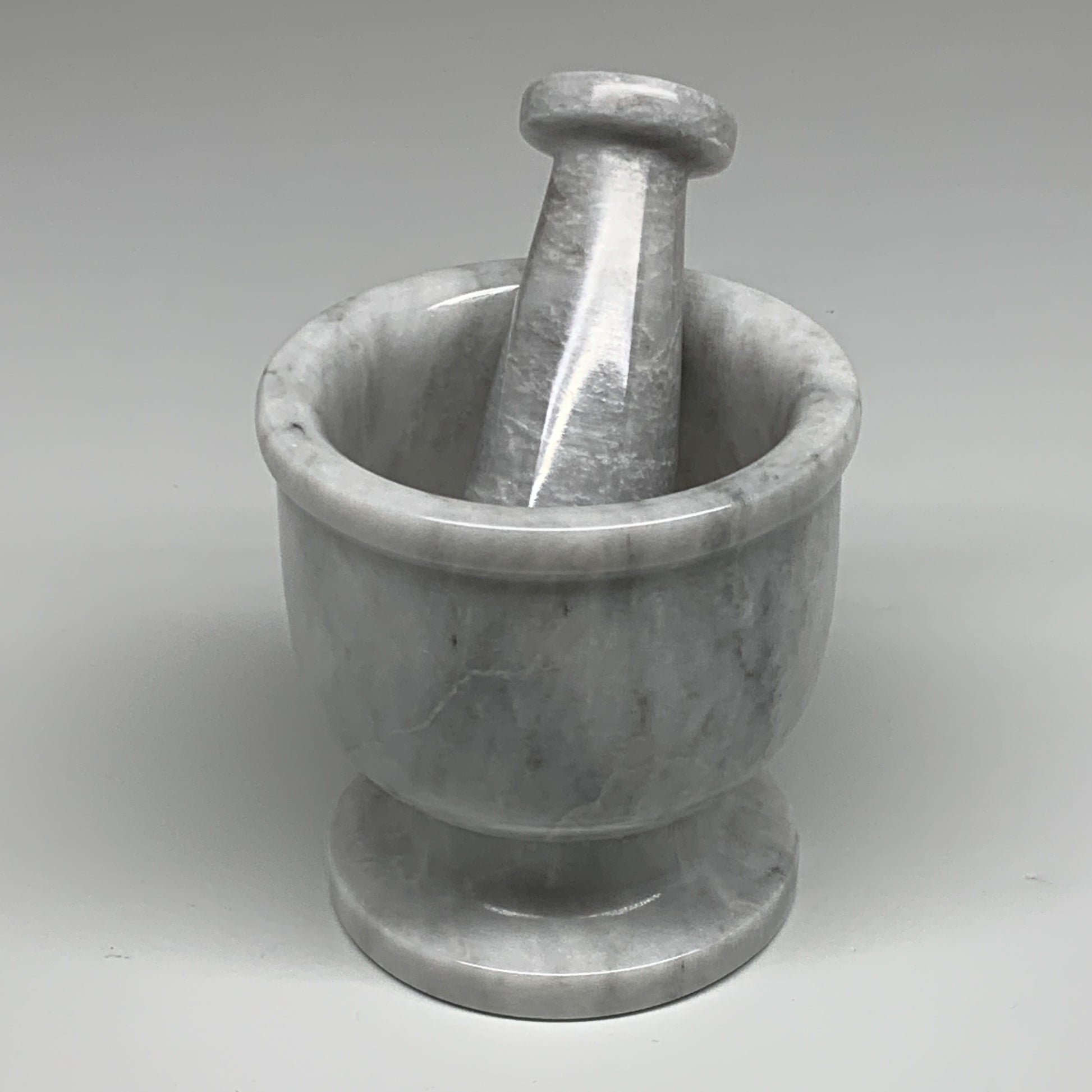2.44 lbs, 4"x3.9", Natural Marble Crystal Pestle and Mortar Handmade, B32524