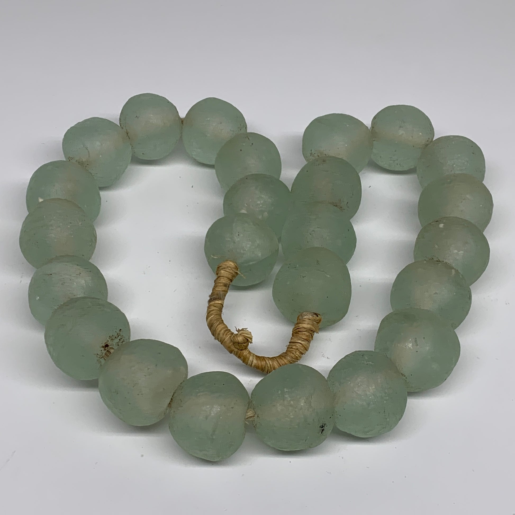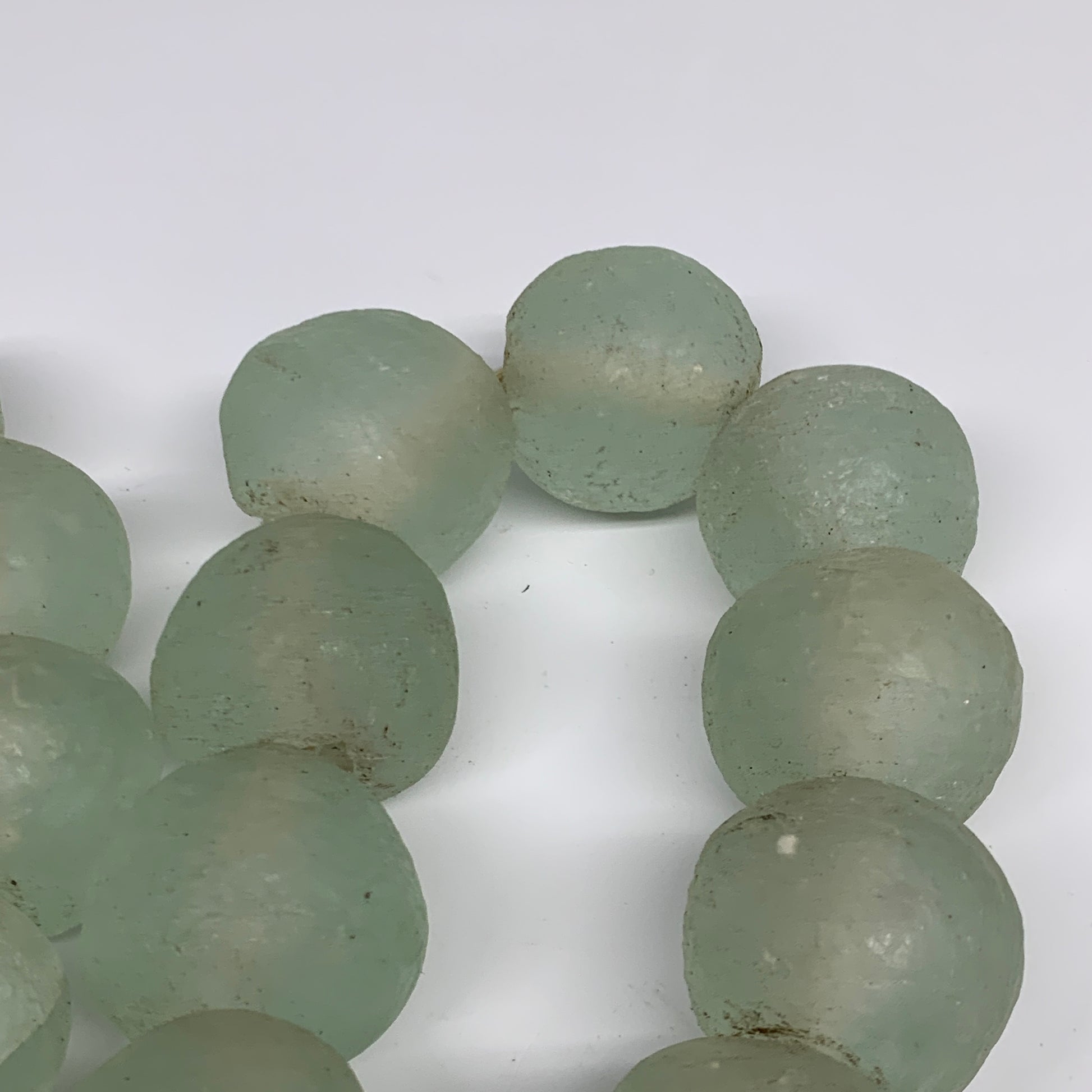 Sea glass from Ghana, Africa is made from recycled glass, such as old bottles, broken windows, and other repurposed glass. The glass is crushed into a powder and then poured into clay molds and baked in a special oven. The Krobo tribe of Ghana is a primary producer of these beads, which are often called "Krobo" beads.
