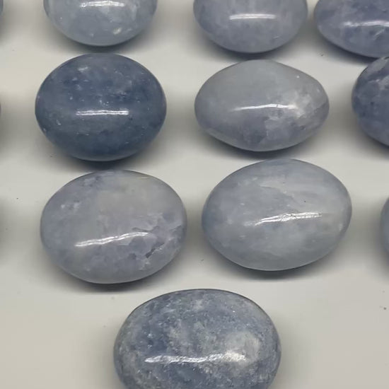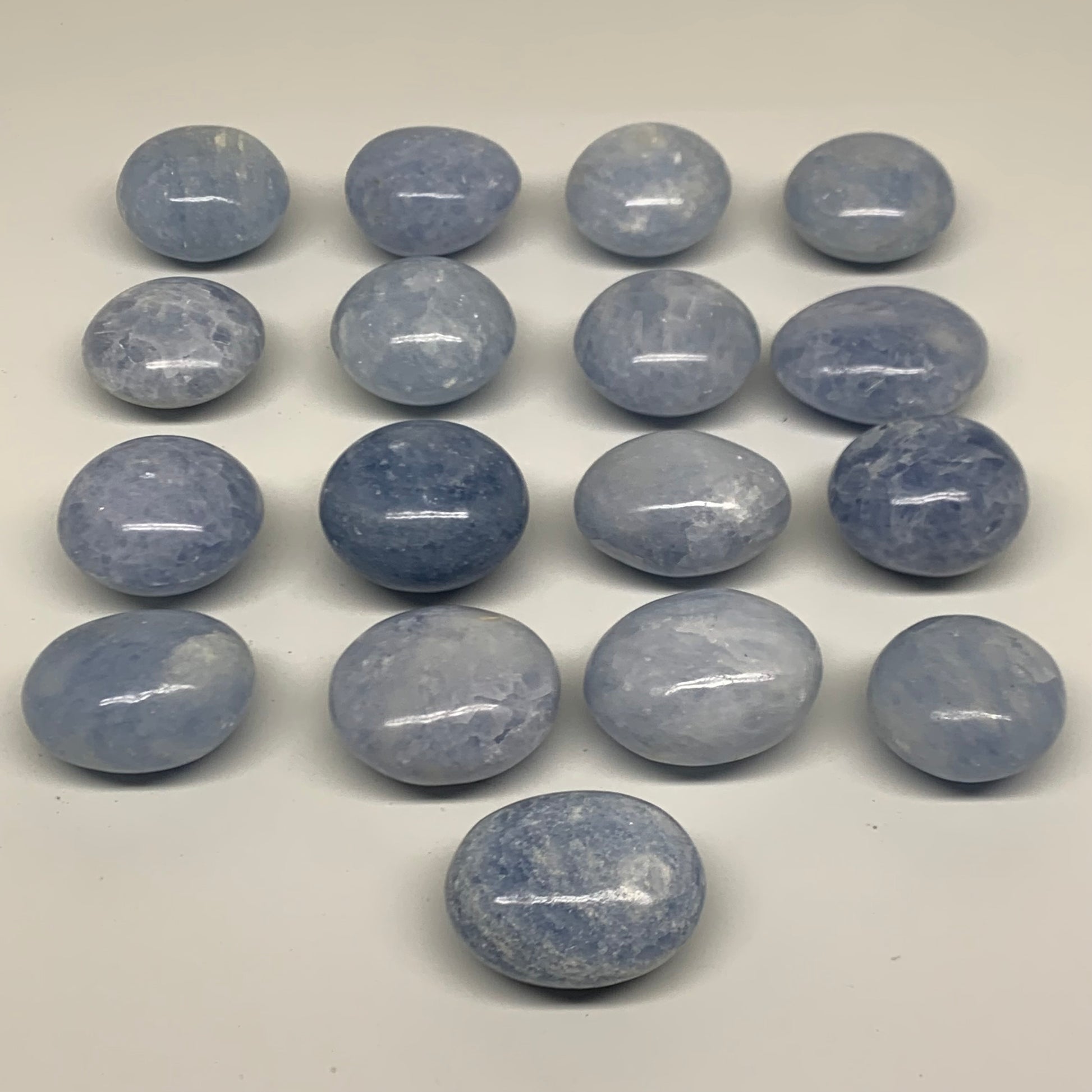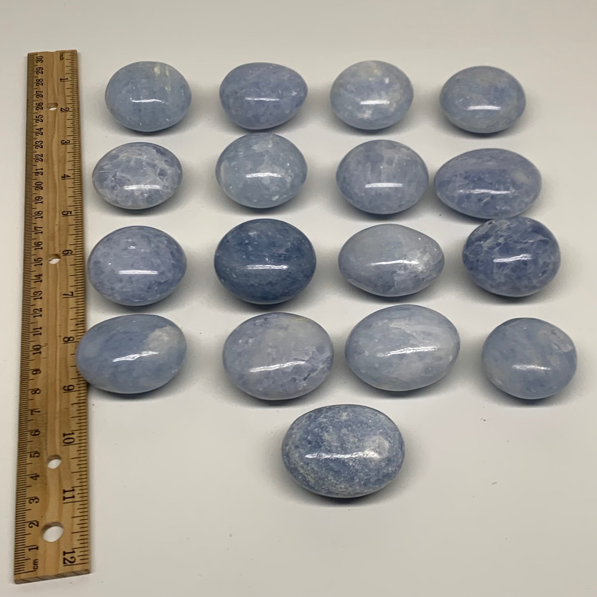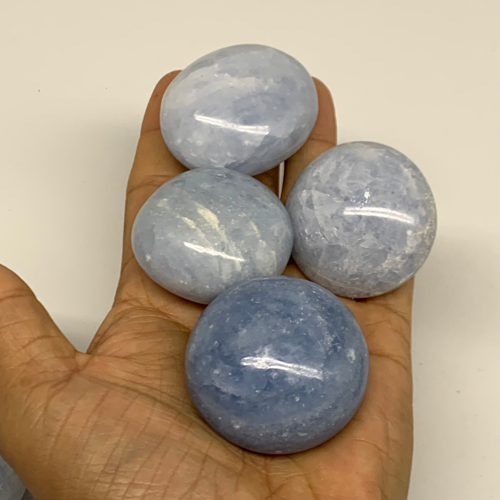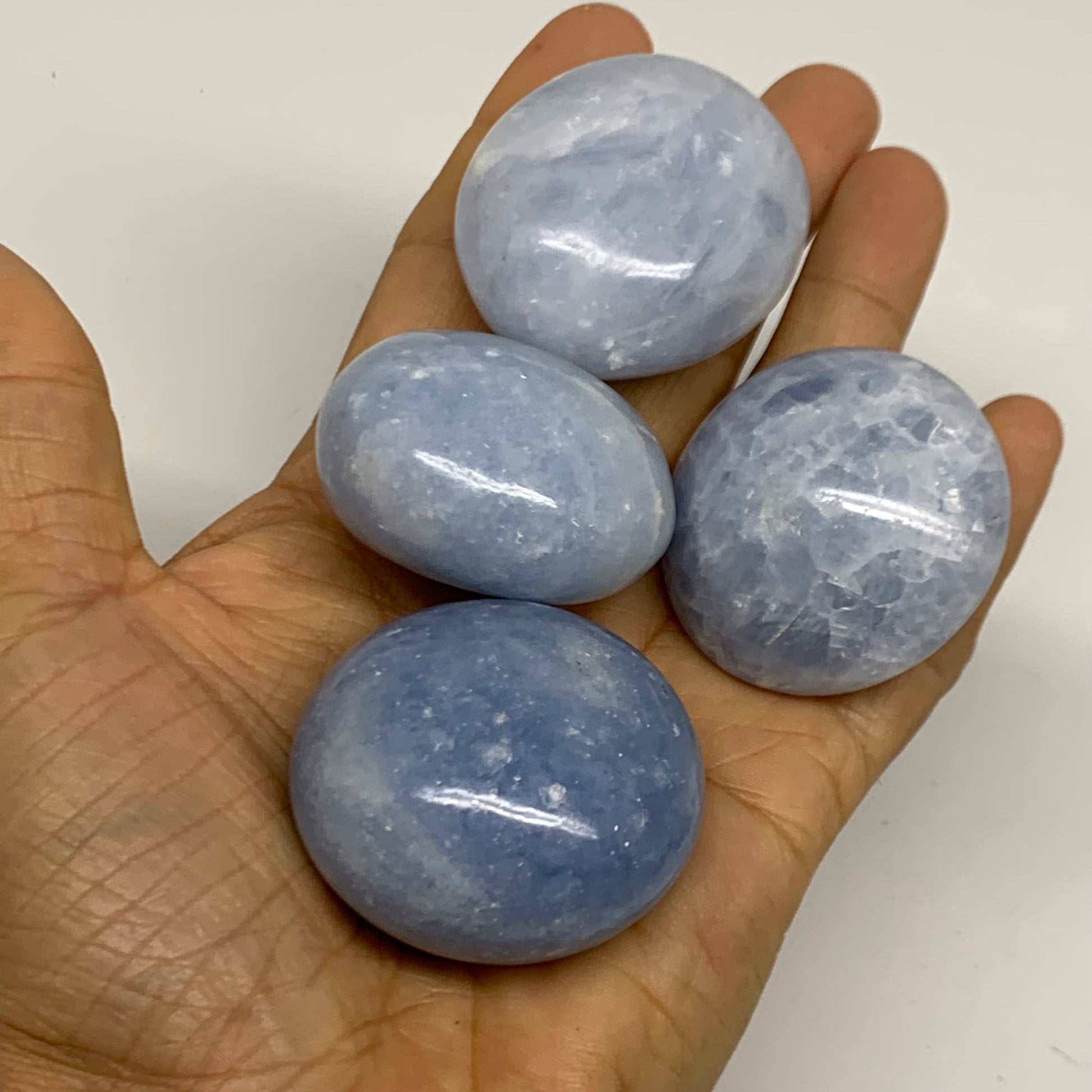 2.52 lbs, 1.5"-2", 17pcs, Blue Calcite Palm-Stone Polished Tumbled, B38149