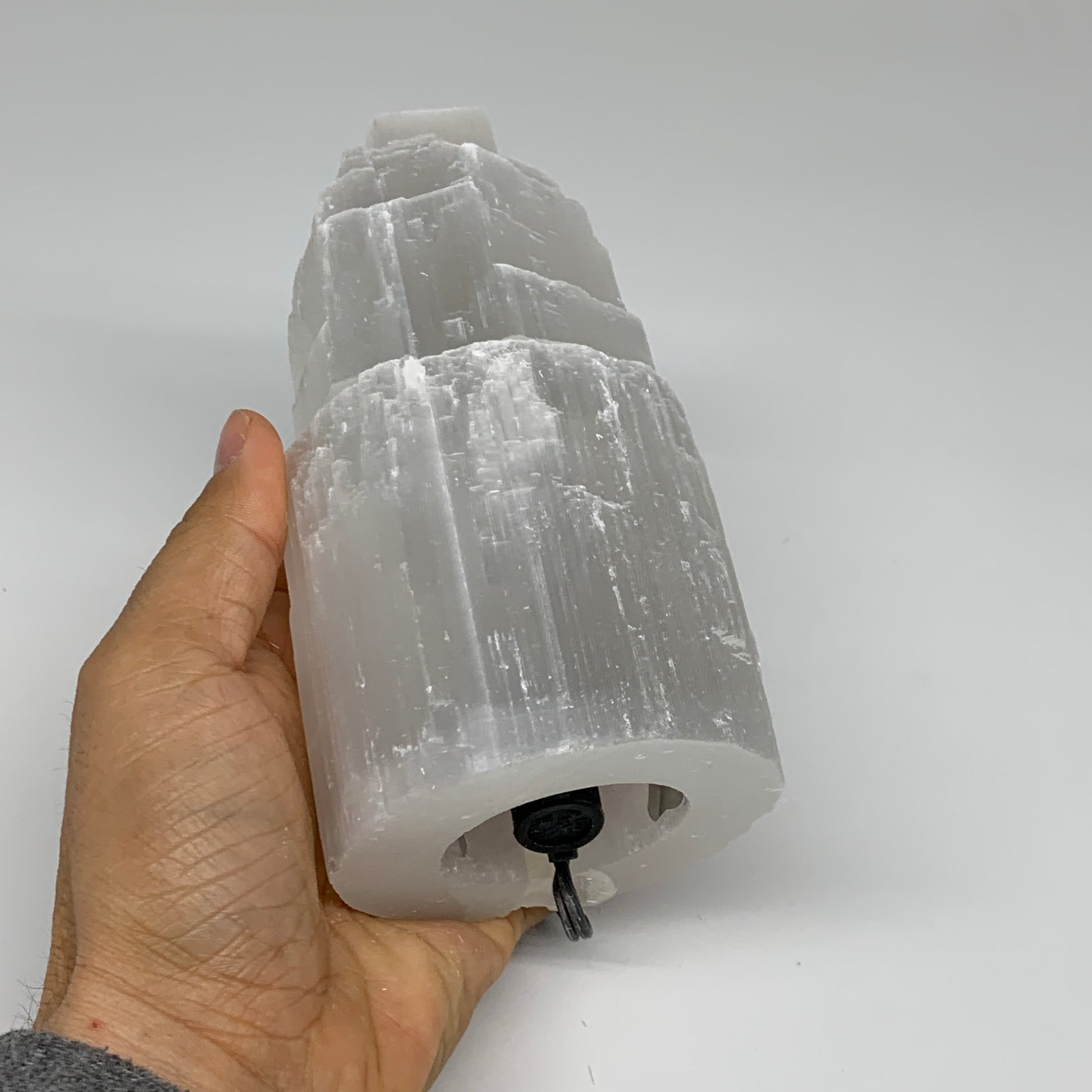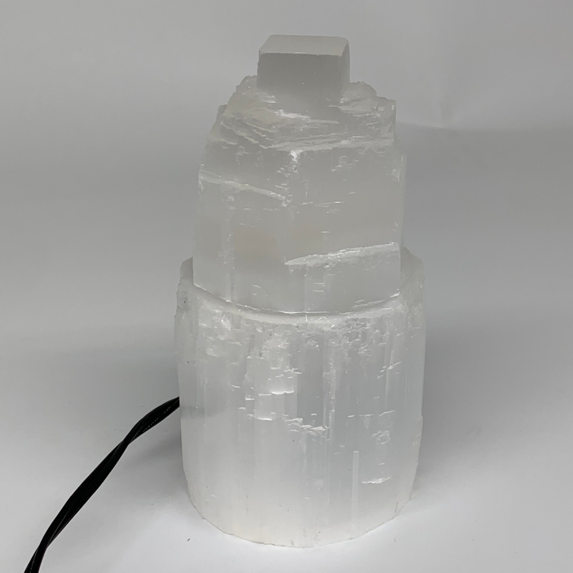 2 lbs, 5.9"x3.1", Raw Rough Selenite (Satin Spar) Lamp Tower, 6ft Chord, B3546