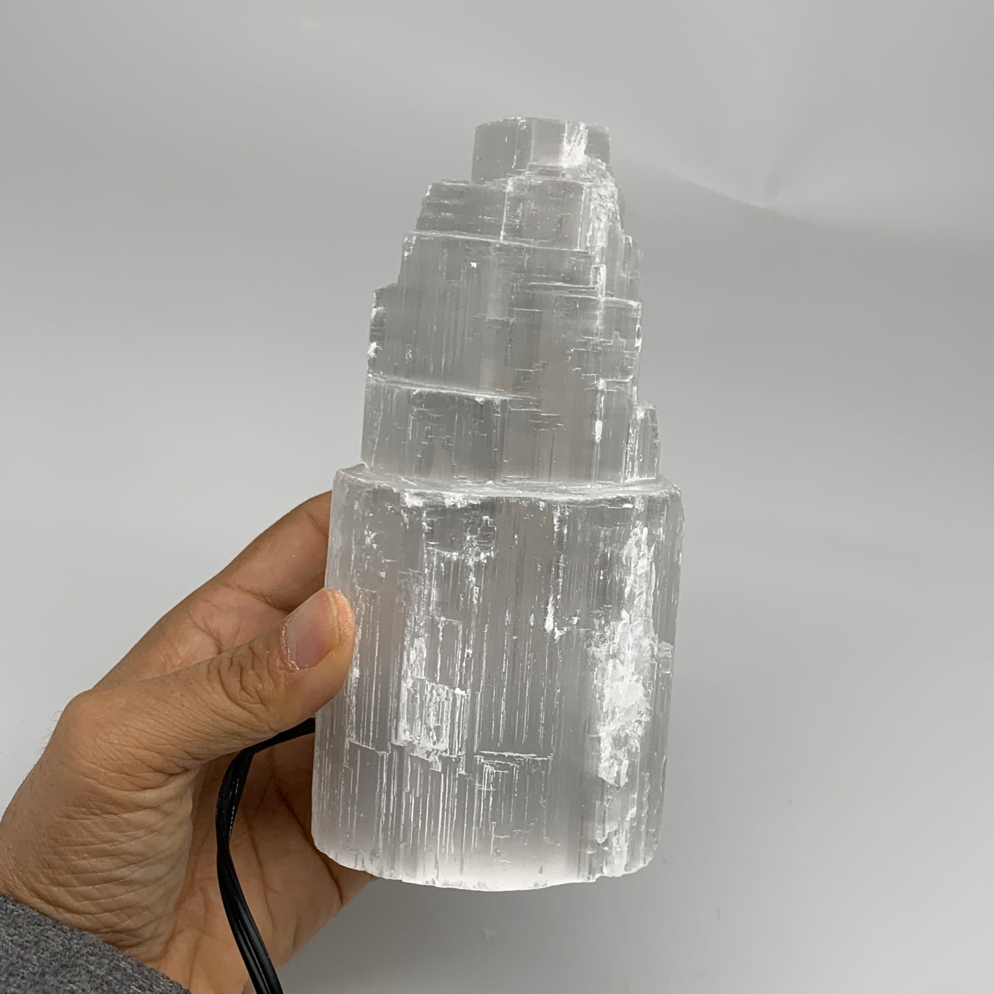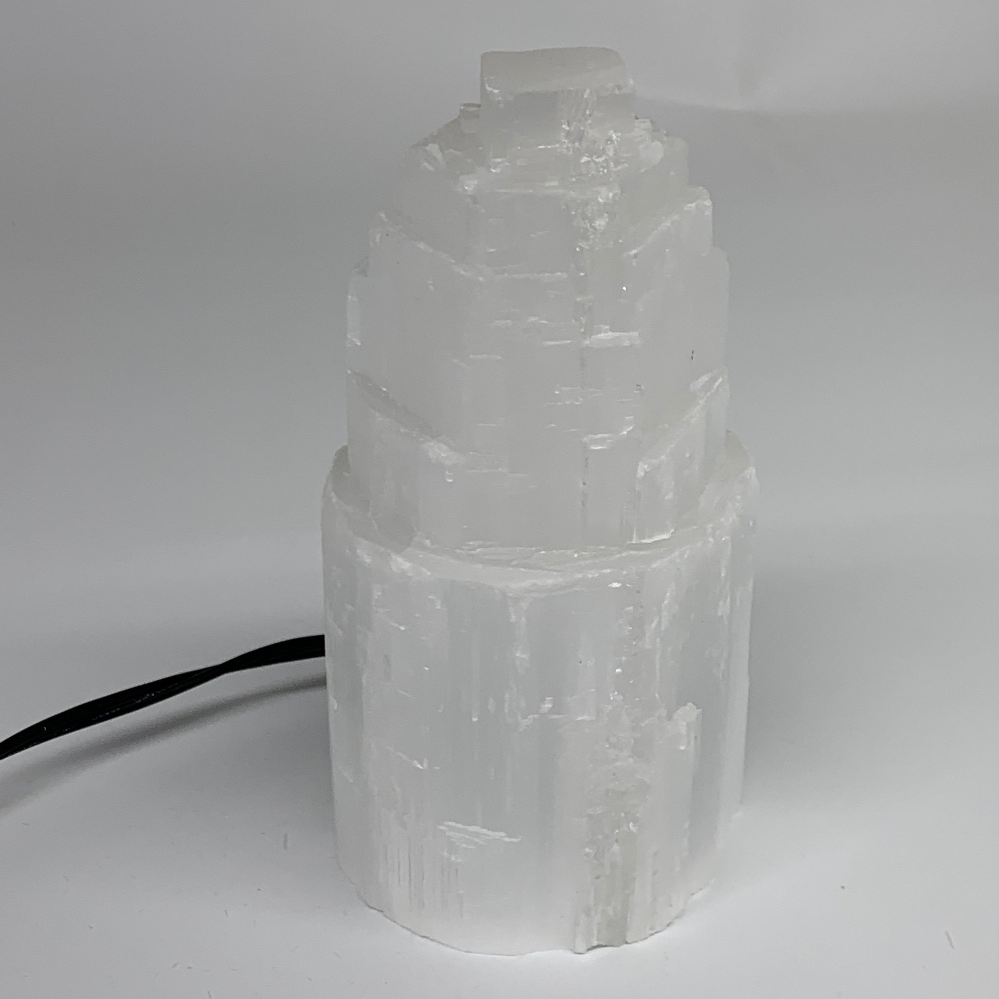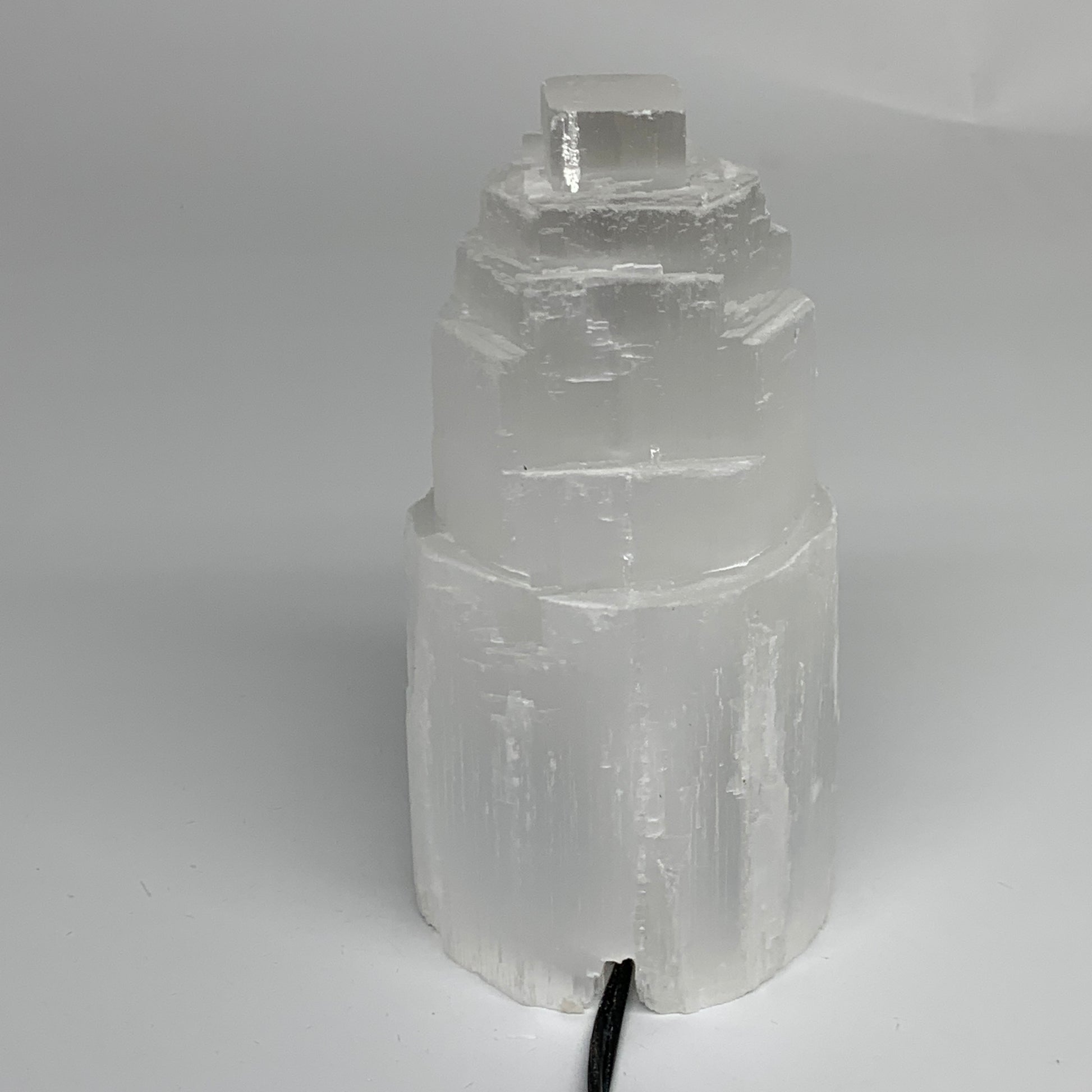 2 lbs, 5.9"x3", Raw Rough Selenite (Satin Spar) Lamp Tower, 6ft Chord, B35873