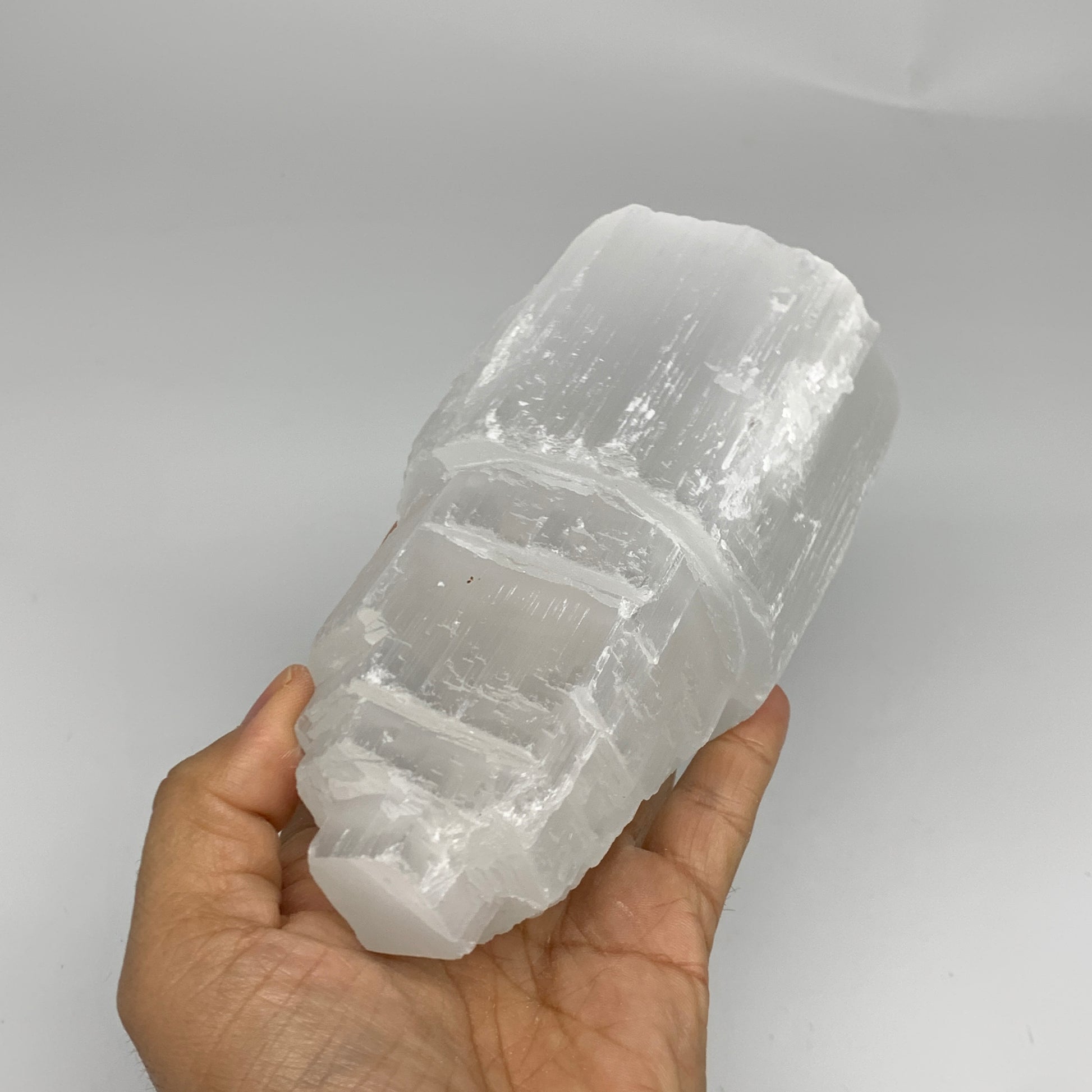 This is a natural product so specification varies from item to item. Due to its soft nature, scratches, chips, dents, Rustics, Crack looking lines, Inclusions, Repairs and fractures looking lines are very common in selenites. Therefore, please expect all Selenite products to have some minor issues & imperfections.