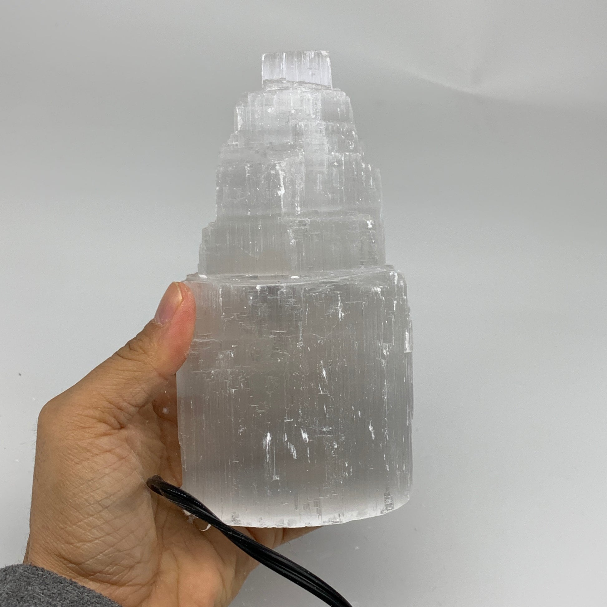 2 lbs, 6"x3.1", Raw Rough Selenite (Satin Spar) Lamp Tower, 6ft Chord, B35869