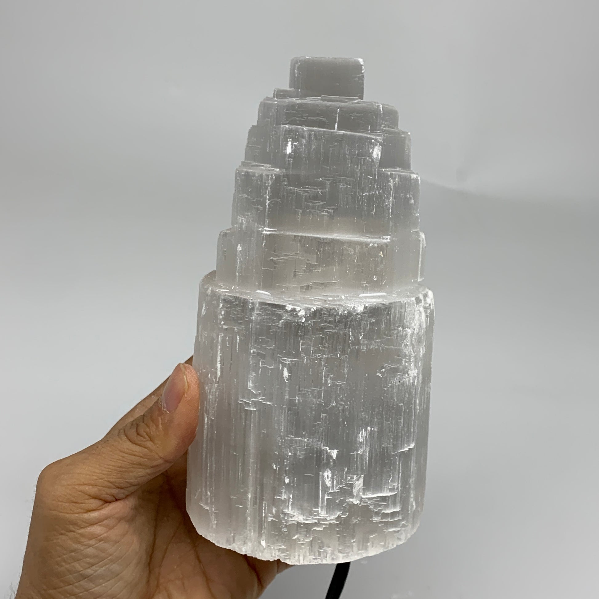2 lbs, 6"x3.1", Raw Rough Selenite (Satin Spar) Lamp Tower, 6ft Chord, B35891