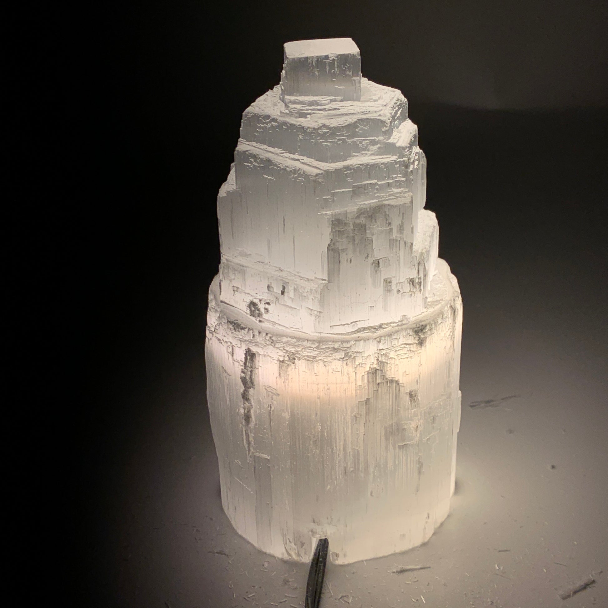 This is a natural product so specification varies from item to item. Due to its soft nature, scratches, chips, dents, Rustics, Crack looking lines, Inclusions, Repairs and fractures looking lines are very common in selenites. Therefore, please expect all Selenite products to have some minor issues & imperfections.