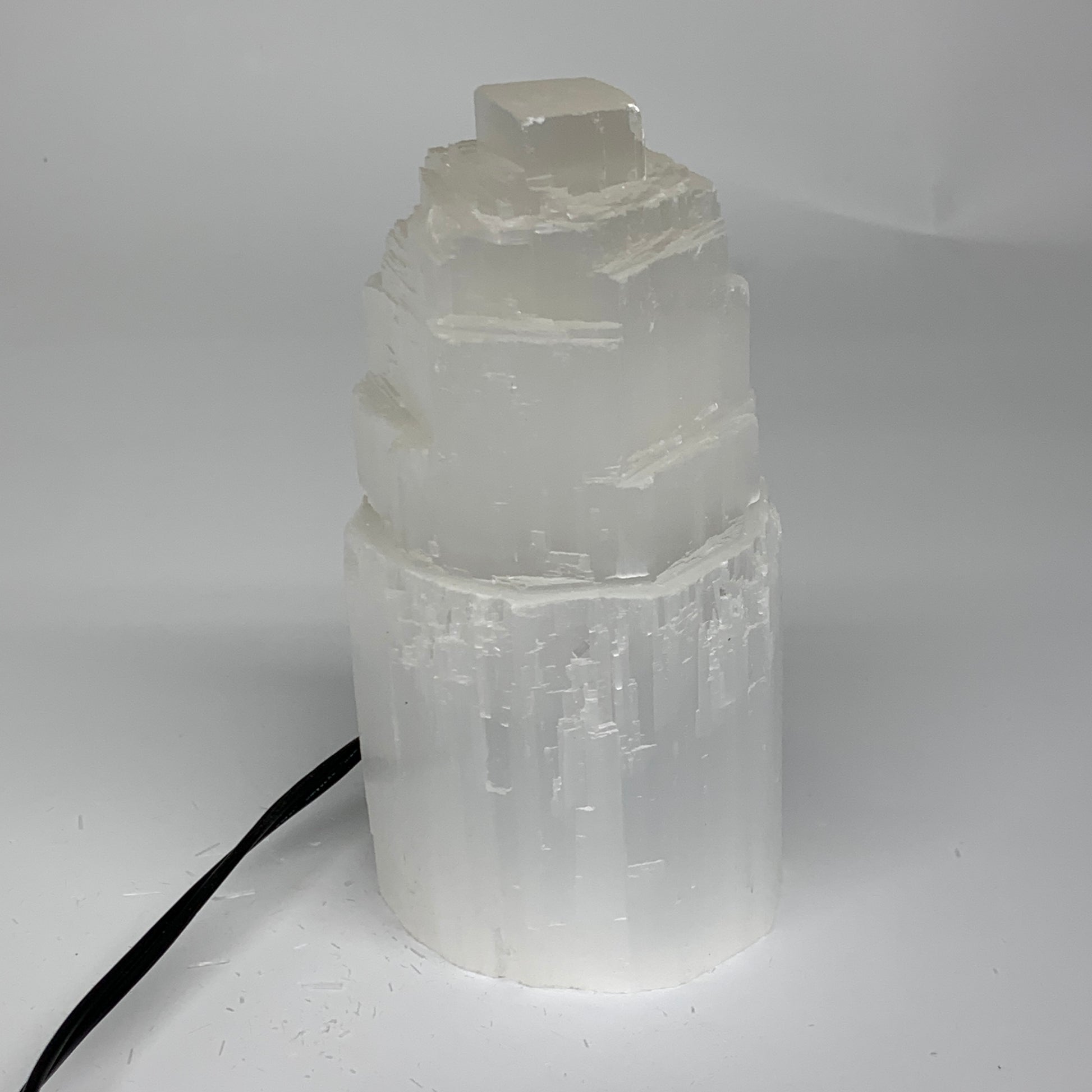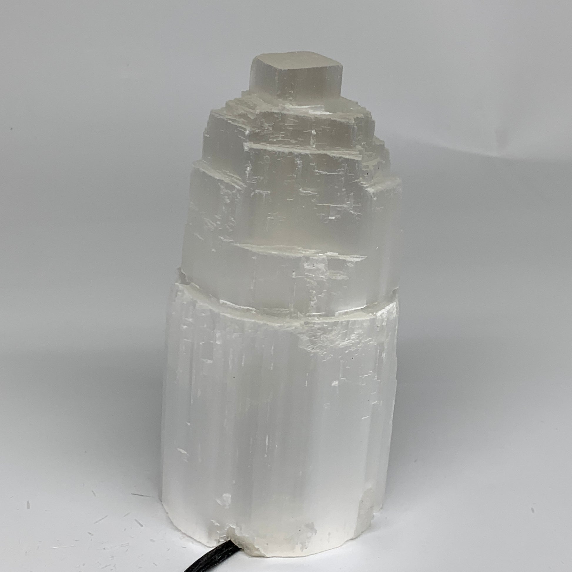 2 lbs, 6"x3", Raw Rough Selenite (Satin Spar) Lamp Tower, 6ft Chord, B35862