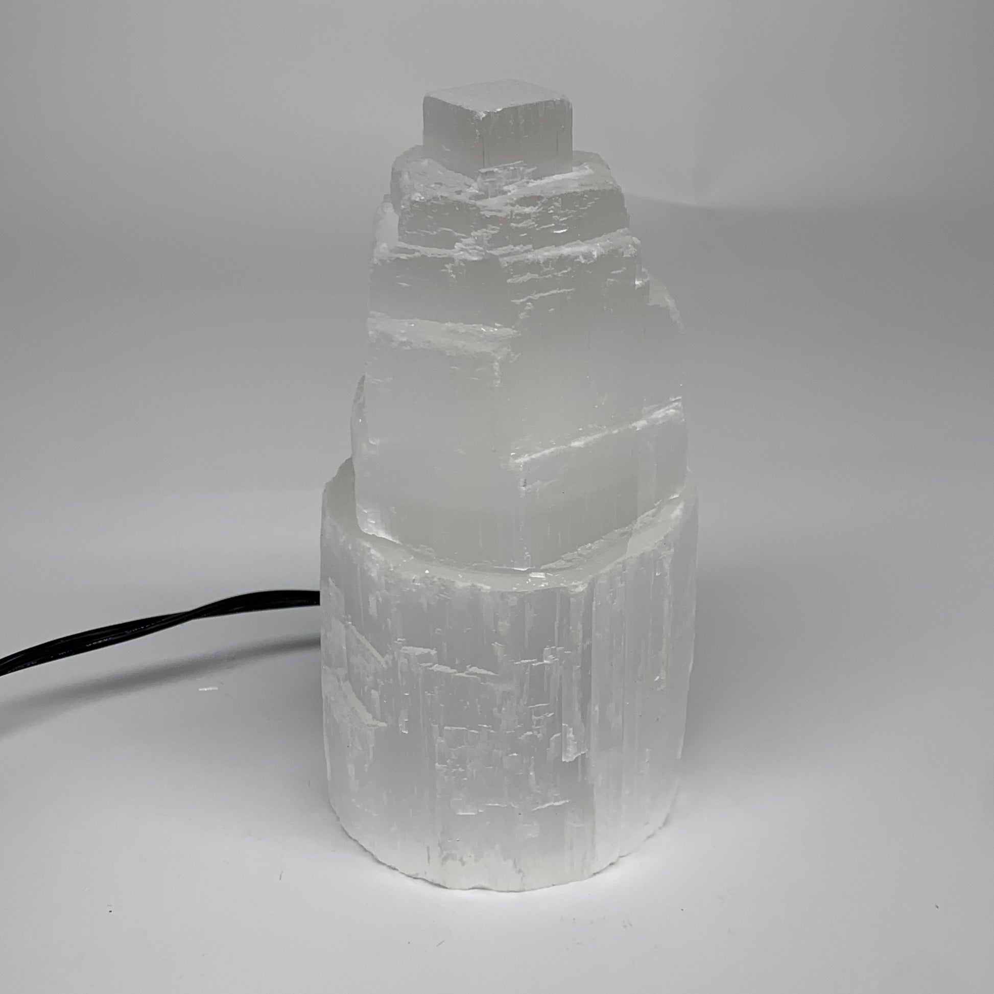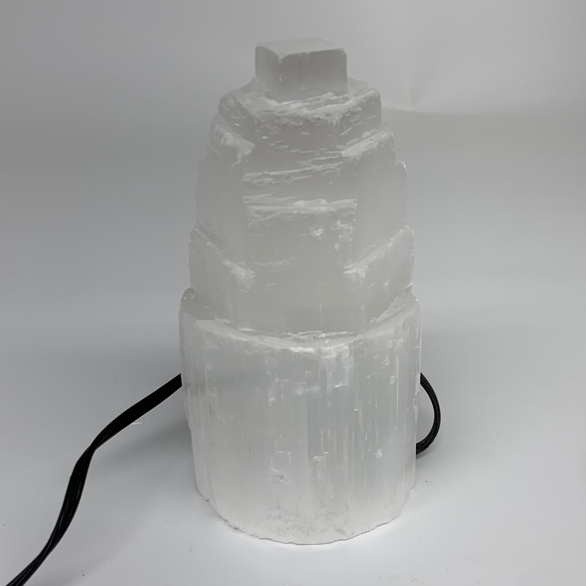 2 lbs, 6"x3", Raw Rough Selenite (Satin Spar) Lamp Tower, 6ft Chord, B35874