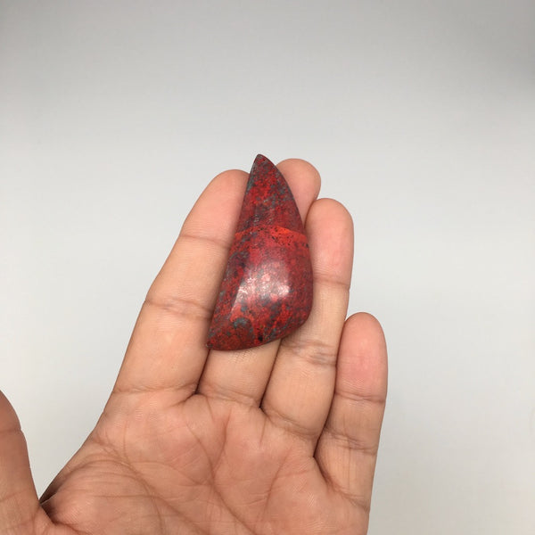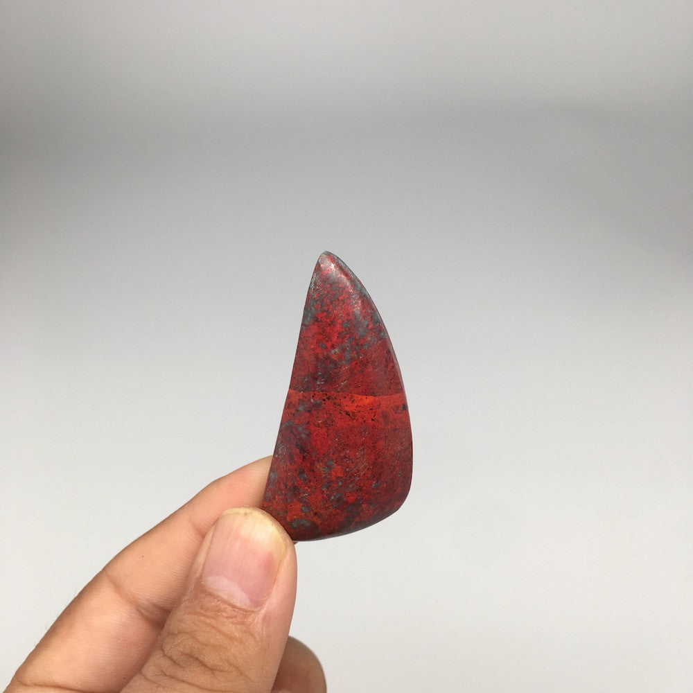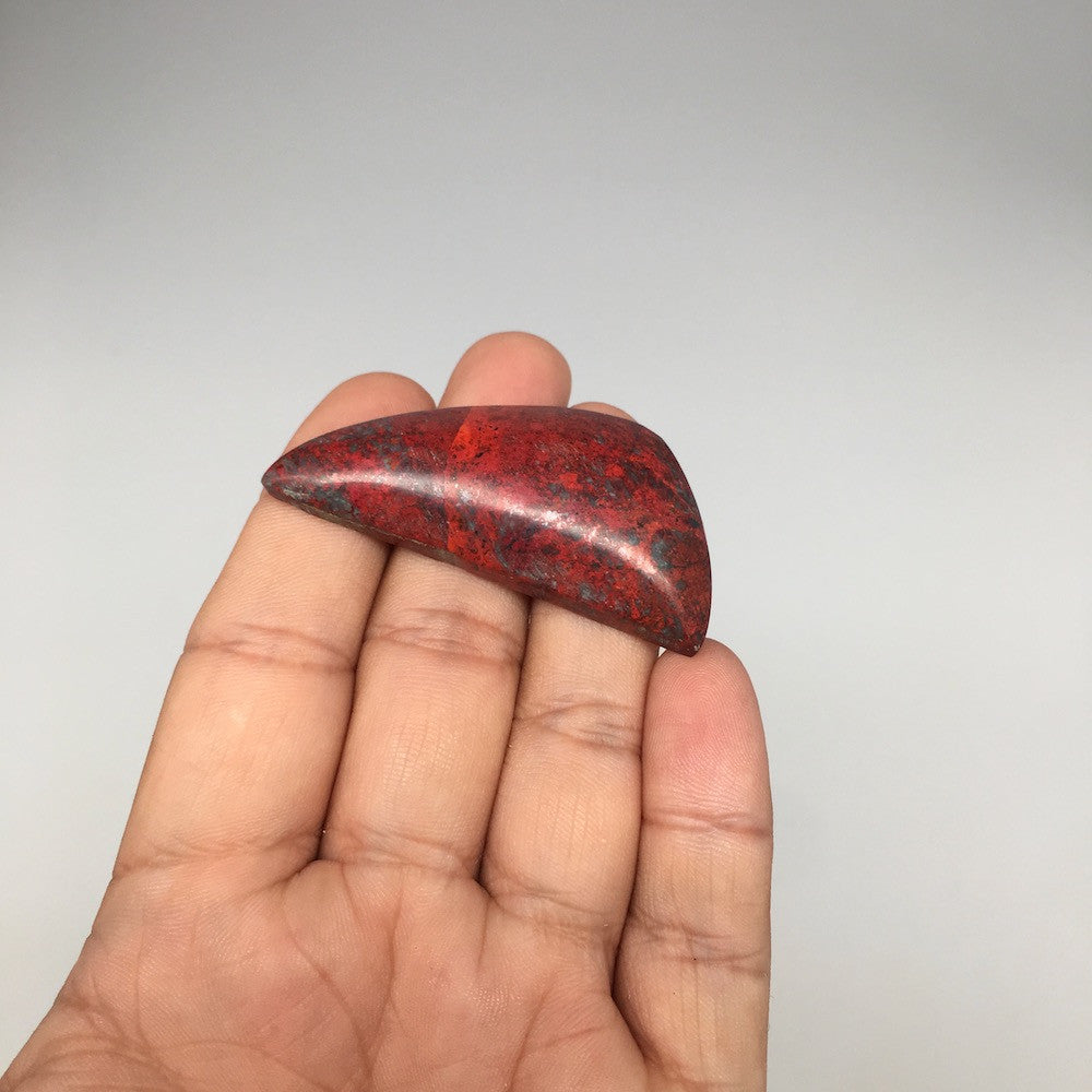 The mostly solid red cabochons are sometimes called Crimson Cuprite. This lovely cabochon material is from the Milpitas Mine in Sonora Mexico. The mine opened in 2006. But, now it is closed and the stone is found rarely in the market. Some smugglers may bring them in Tucson shows but the prices are jumped 3 times more than it used to be few years ago. Chinese factories look hard to find these kind of stones.