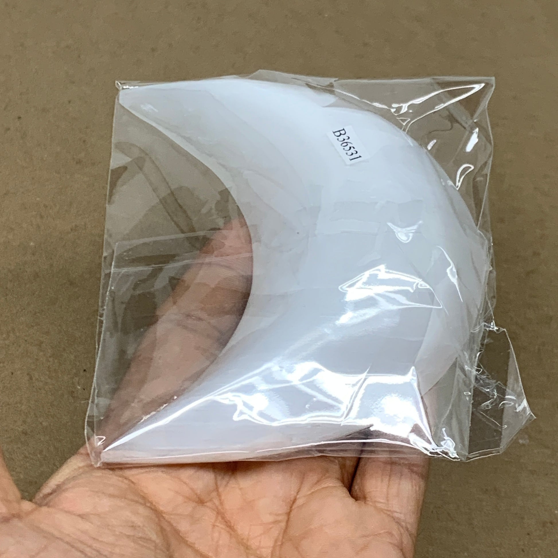200g, 4.6"x2.2"x0.9", Selenite Crescent Moon Crystal (Satin Spar), B36531