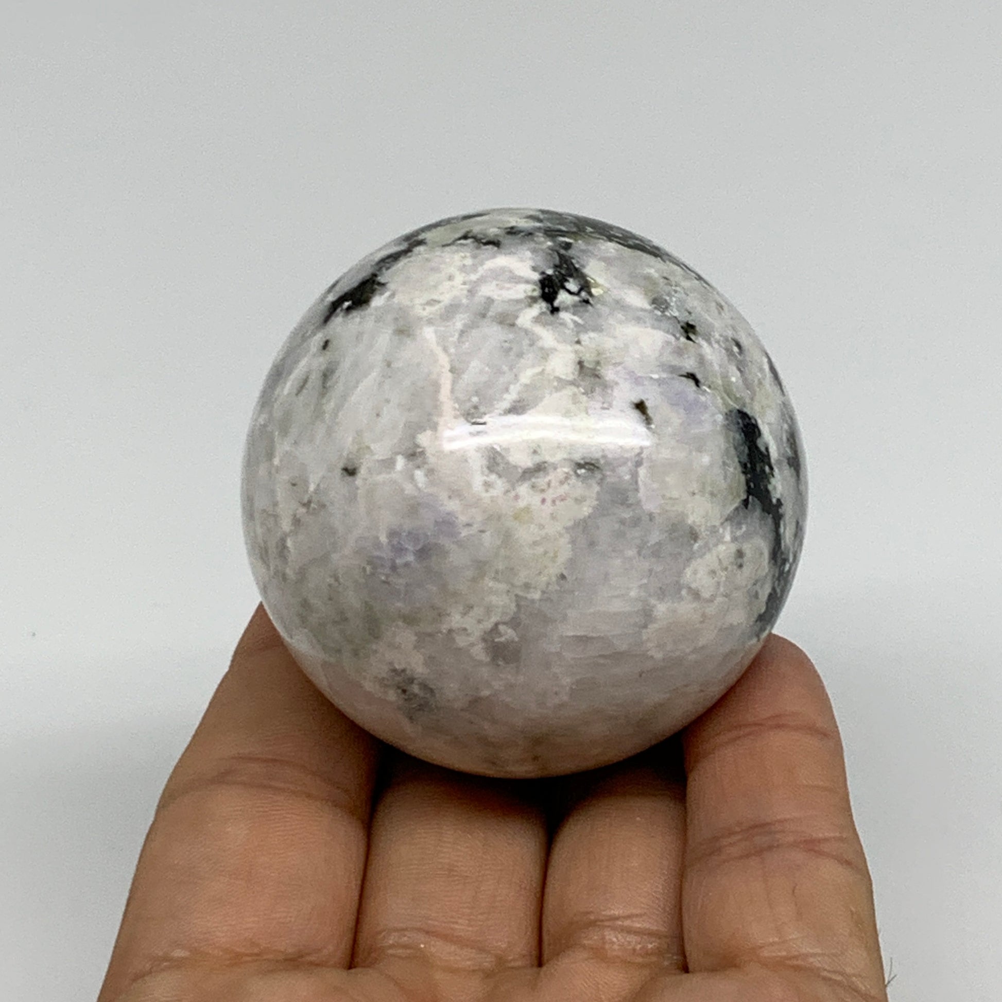 201.9g, 2.1"(52mm), Natural Rainbow Moonstone Sphere Ball Gemstone, B34345