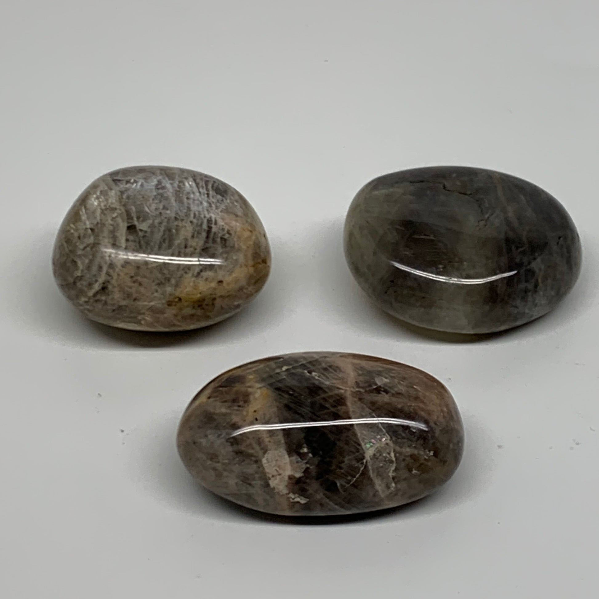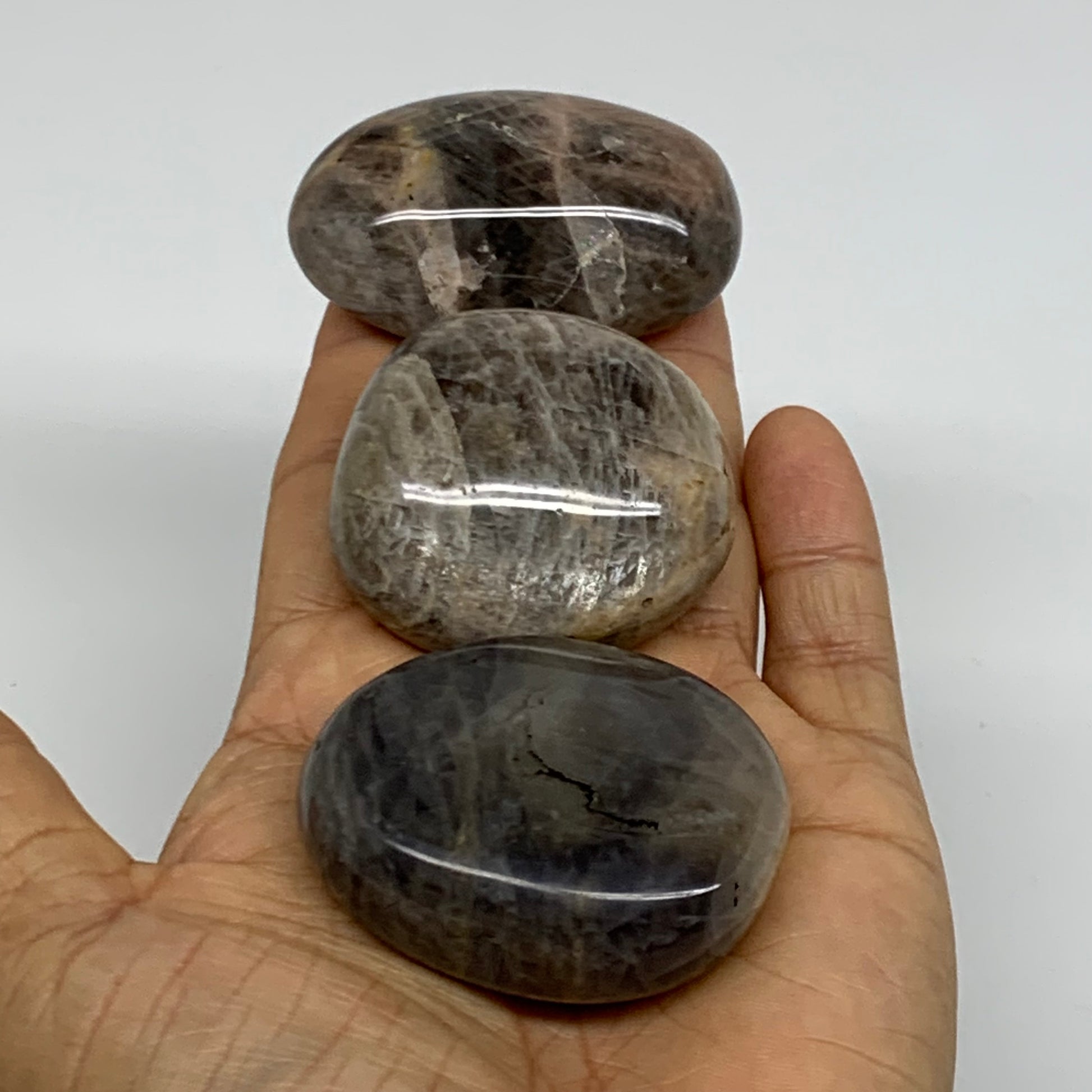 202.8g, 1.8"-2.1", 3pcs, Black Moonstone Crystal Palm-Stone Polished, B37802