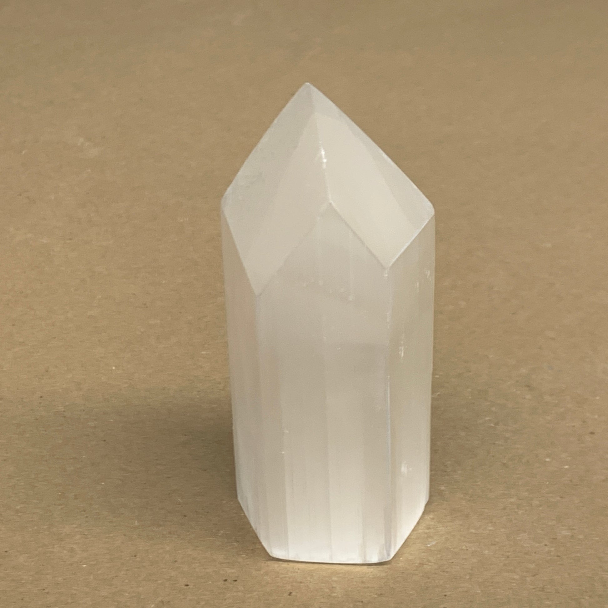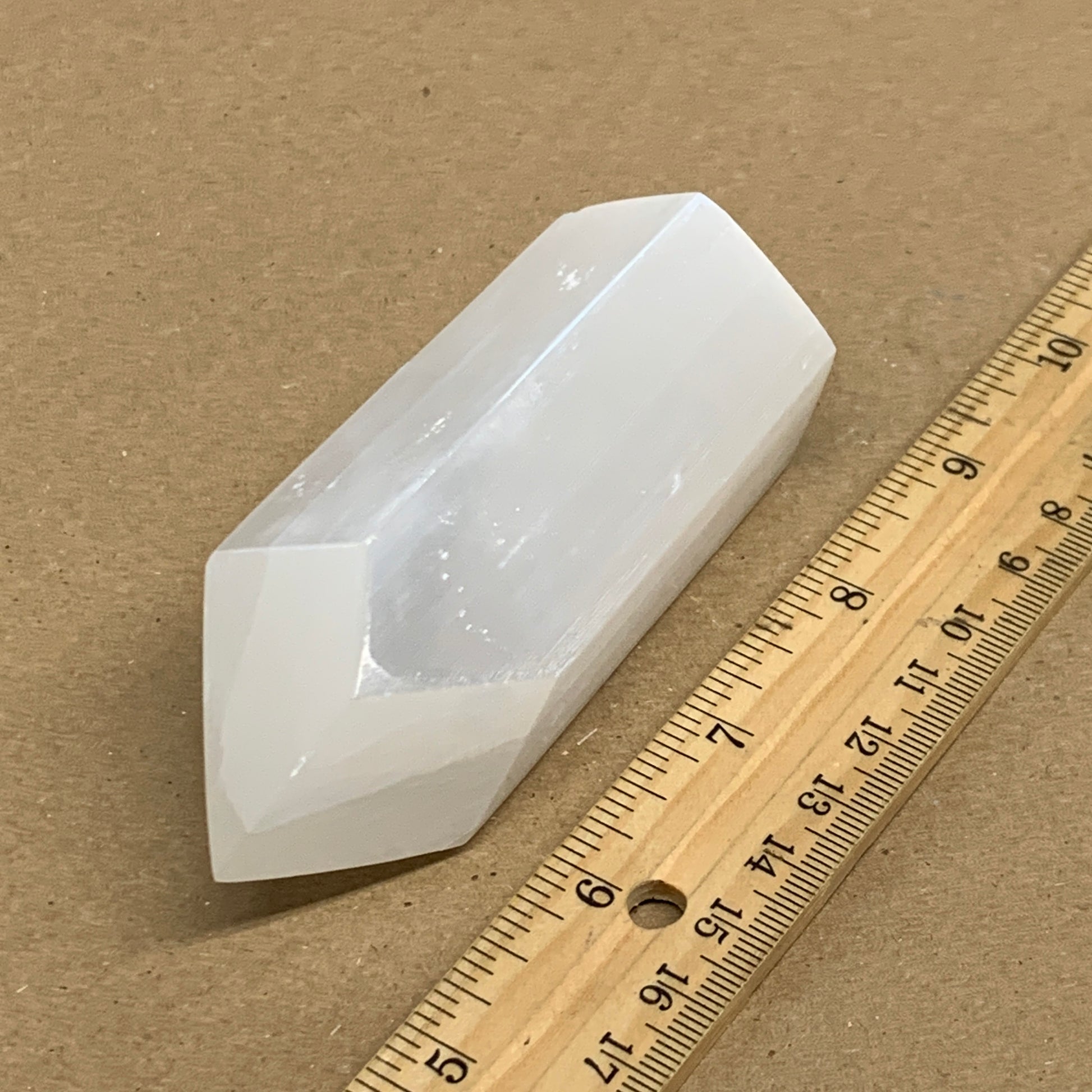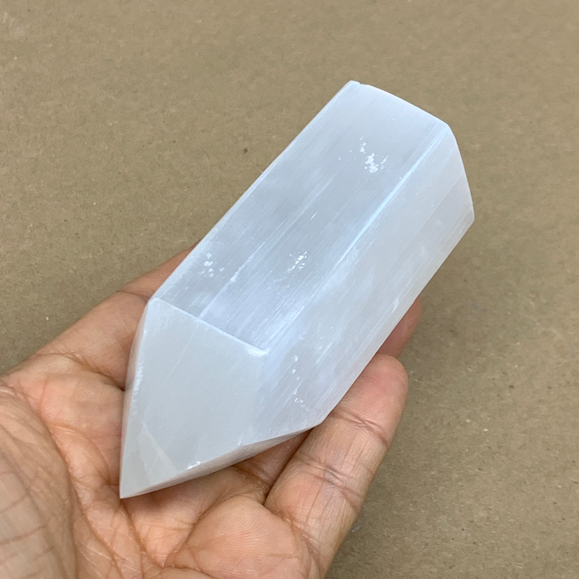 202g, 3.8"x1.6", Selenite (Satin Spar) Crystal Tower Point, B36034