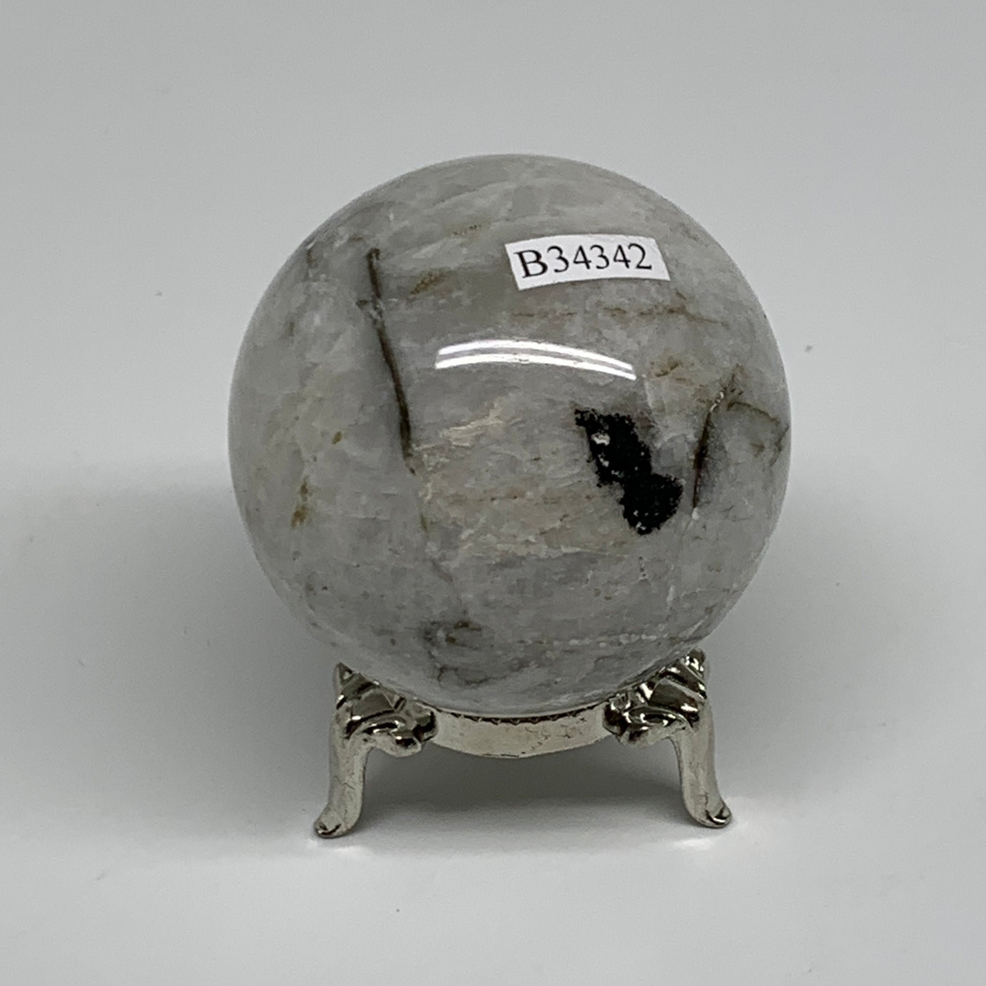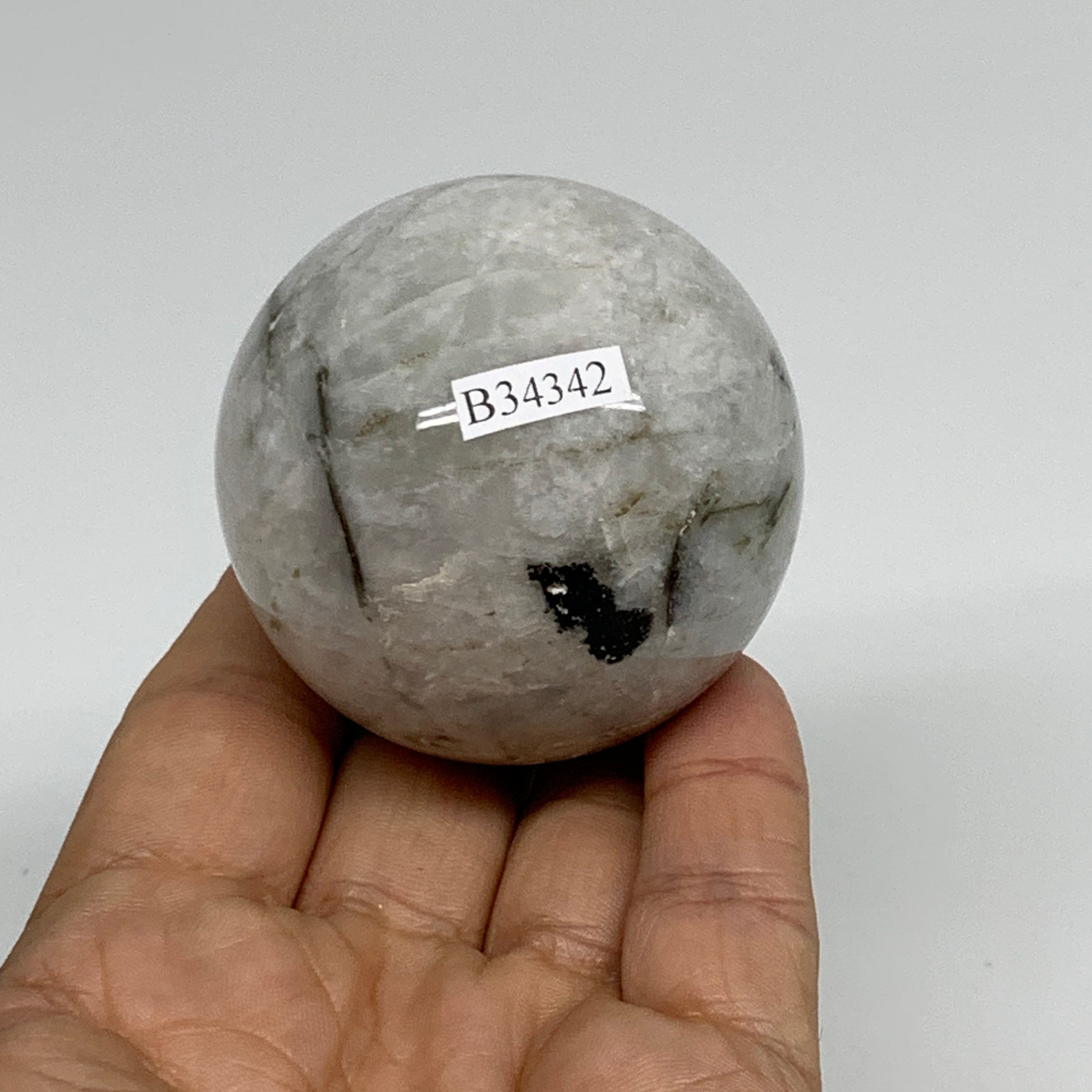 203.2g, 2.1"(52mm), Natural Rainbow Moonstone Sphere Ball Gemstone, B34342