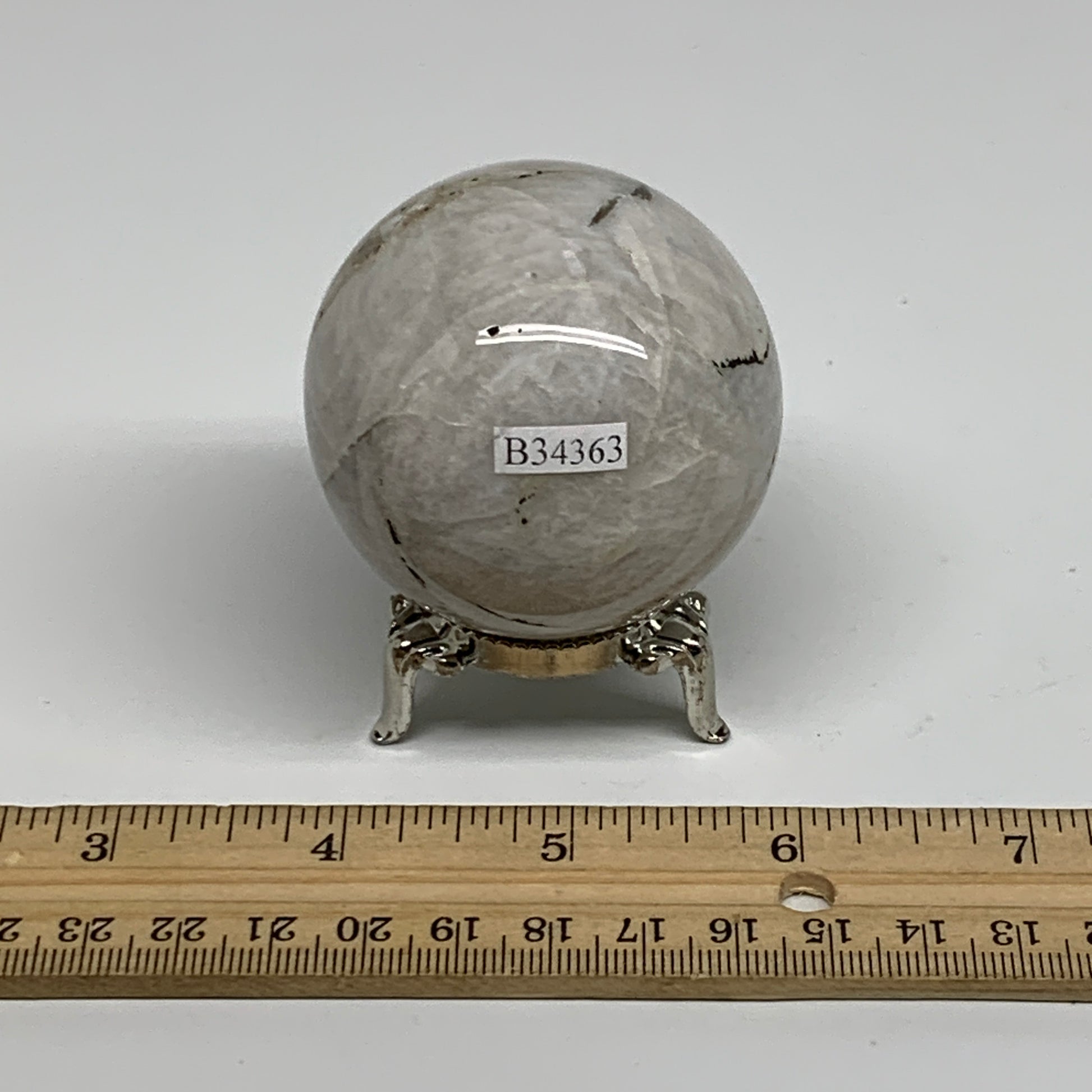 203.4g, 2.1"(53mm), Natural Rainbow Moonstone Sphere Ball Gemstone, B34363