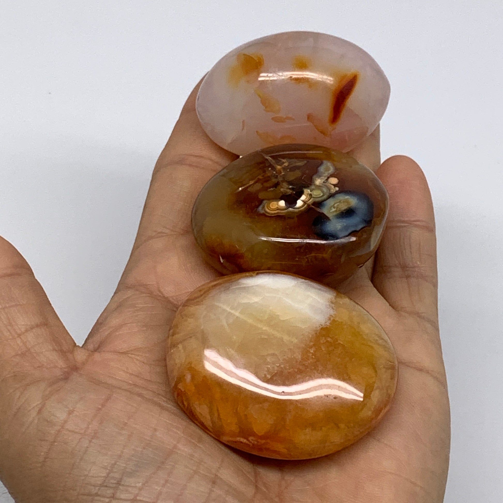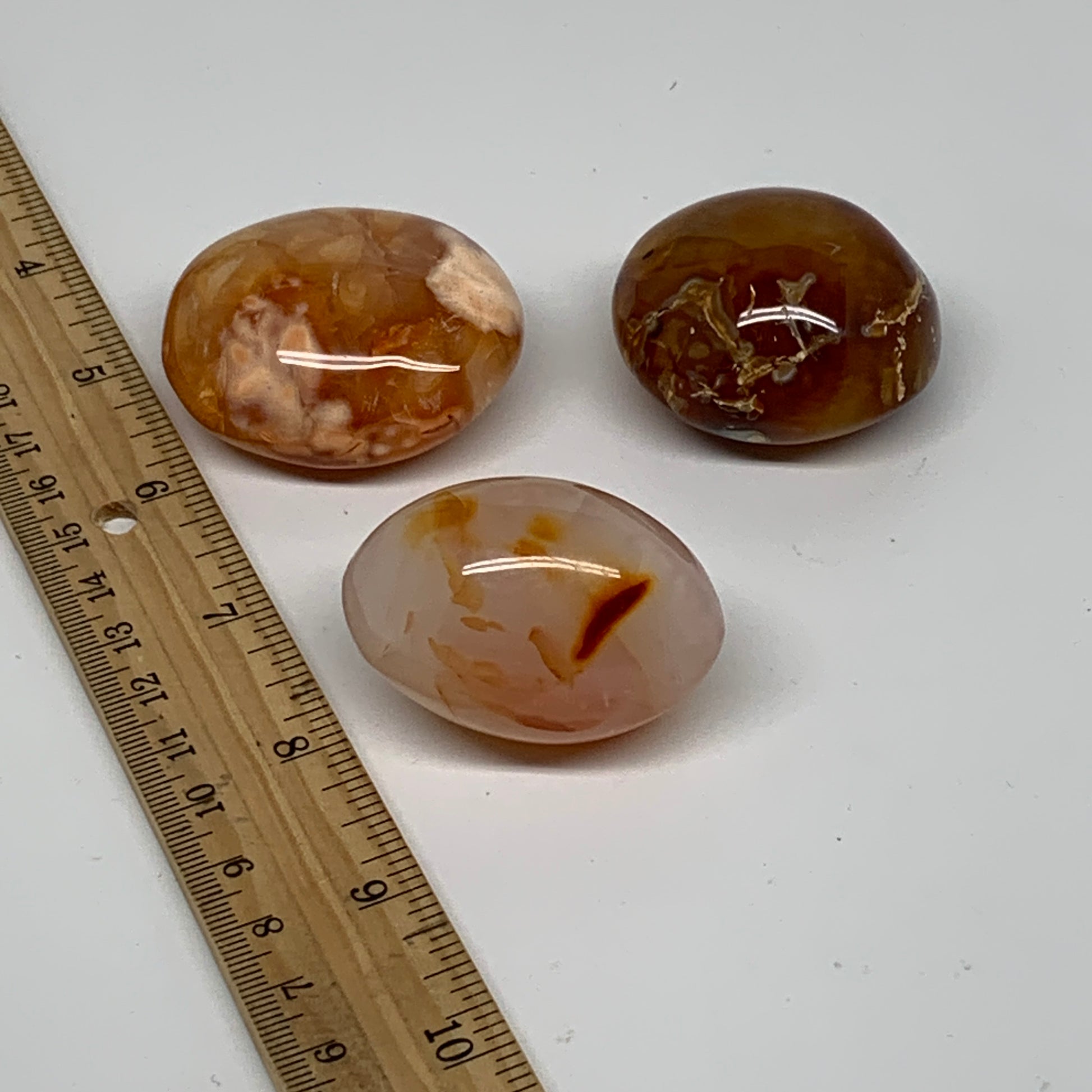 203.5g, 1.8"-2", 3pcs, Red Carnelian Palm-Stone Gem Crystal Polished, B37626