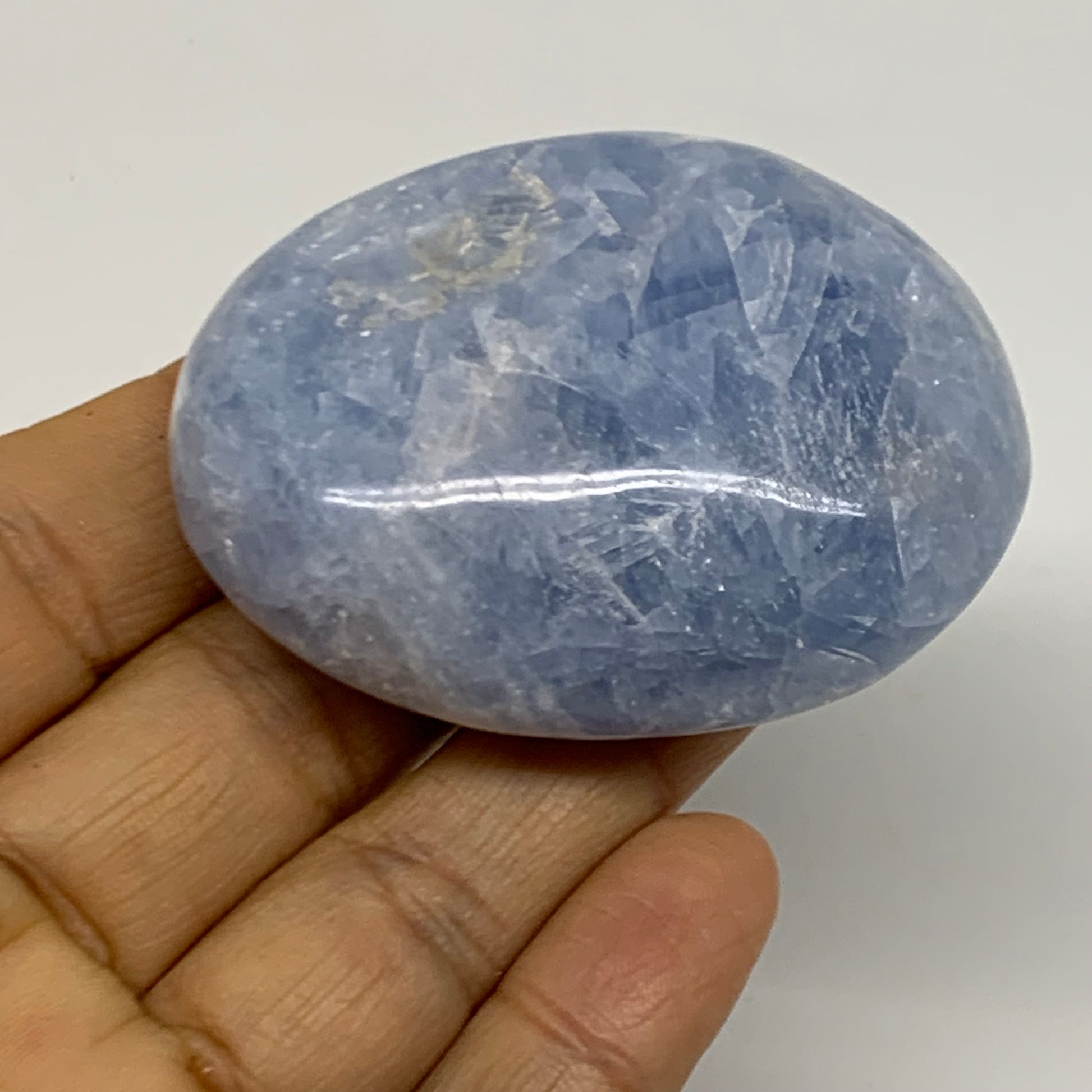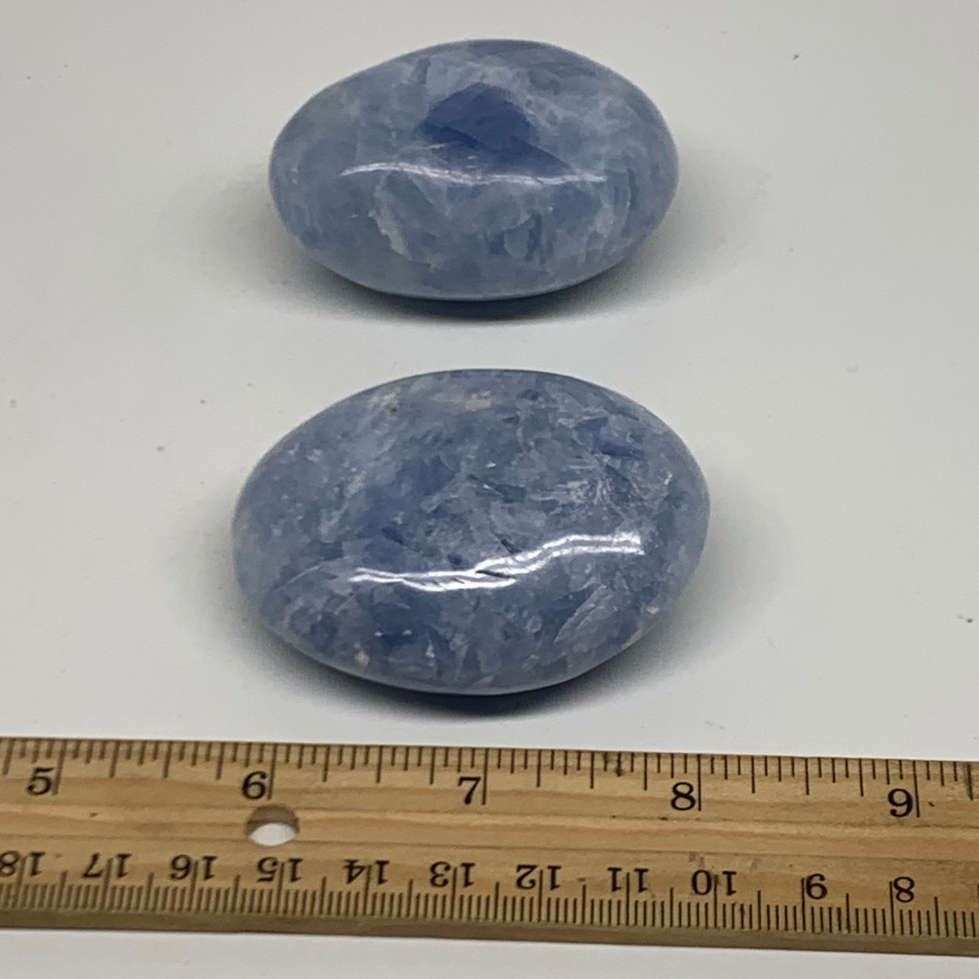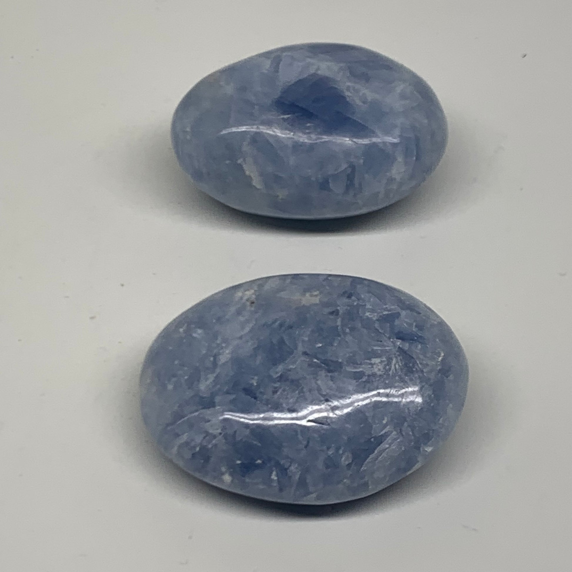 203g, 2.2"-2.4", 2pcs, Blue Calcite Palm-Stone Polished Tumbled, B38141