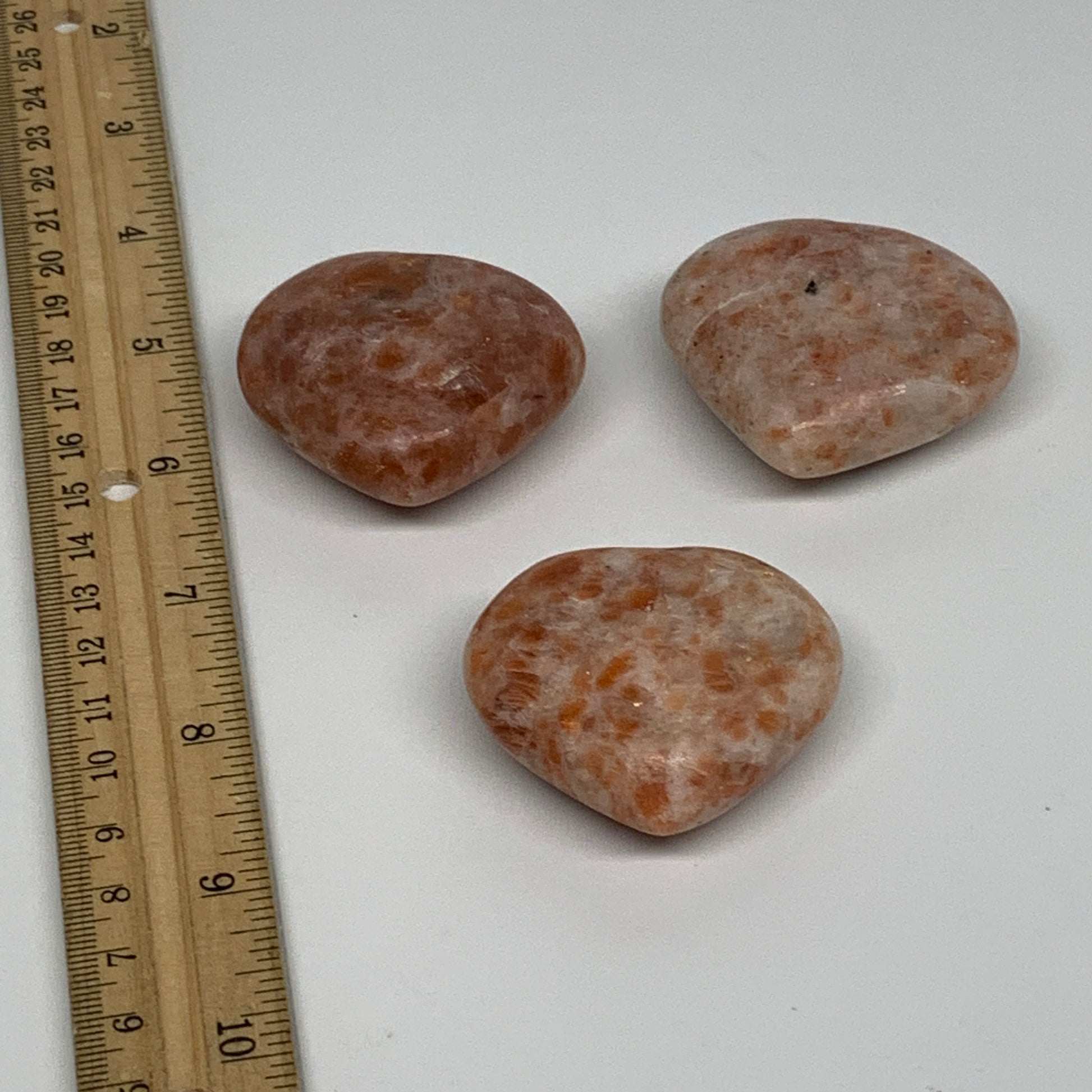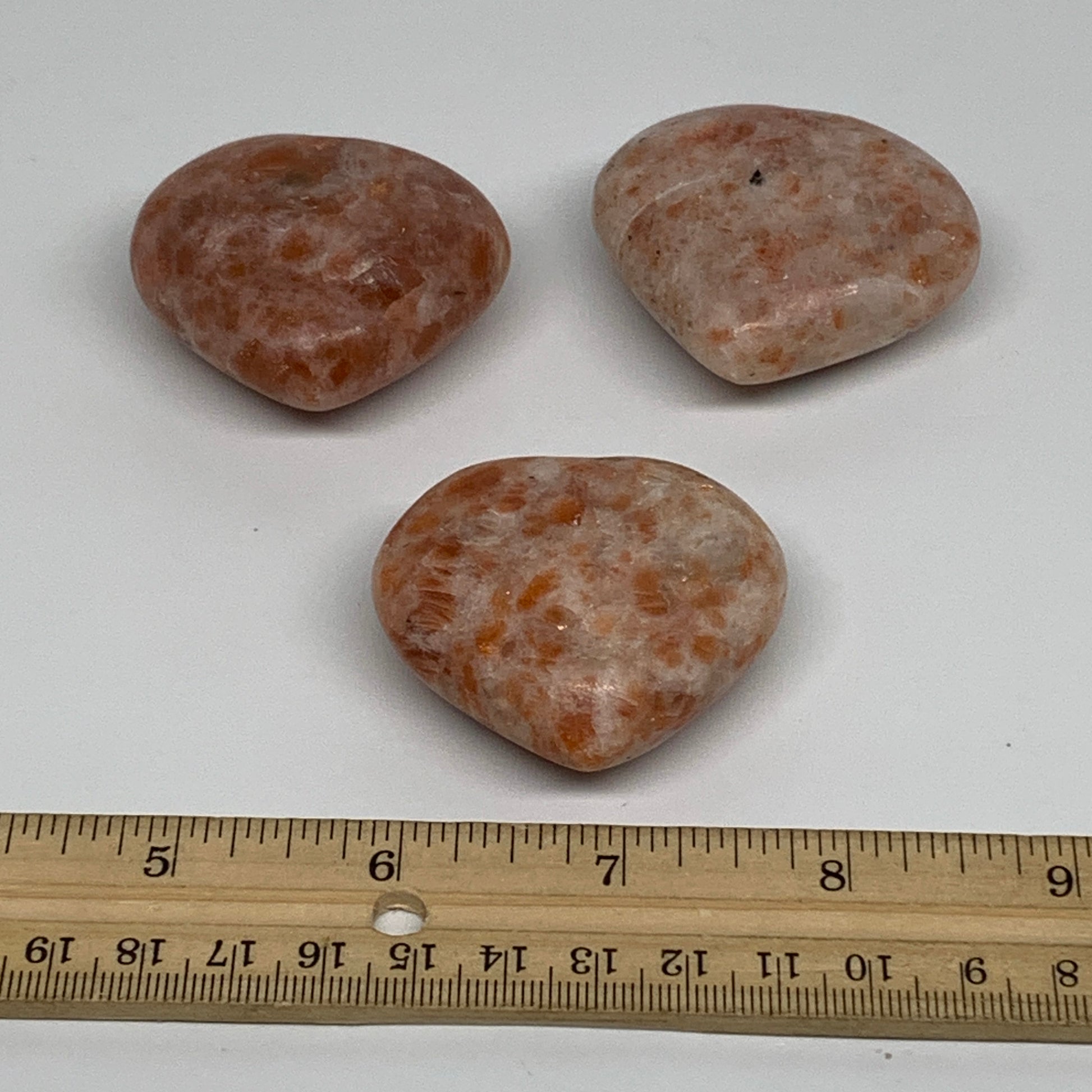 205.1g,1.7"-1.9", 3pcs, Sunstone Heart Polished Healing Crystal, B34803