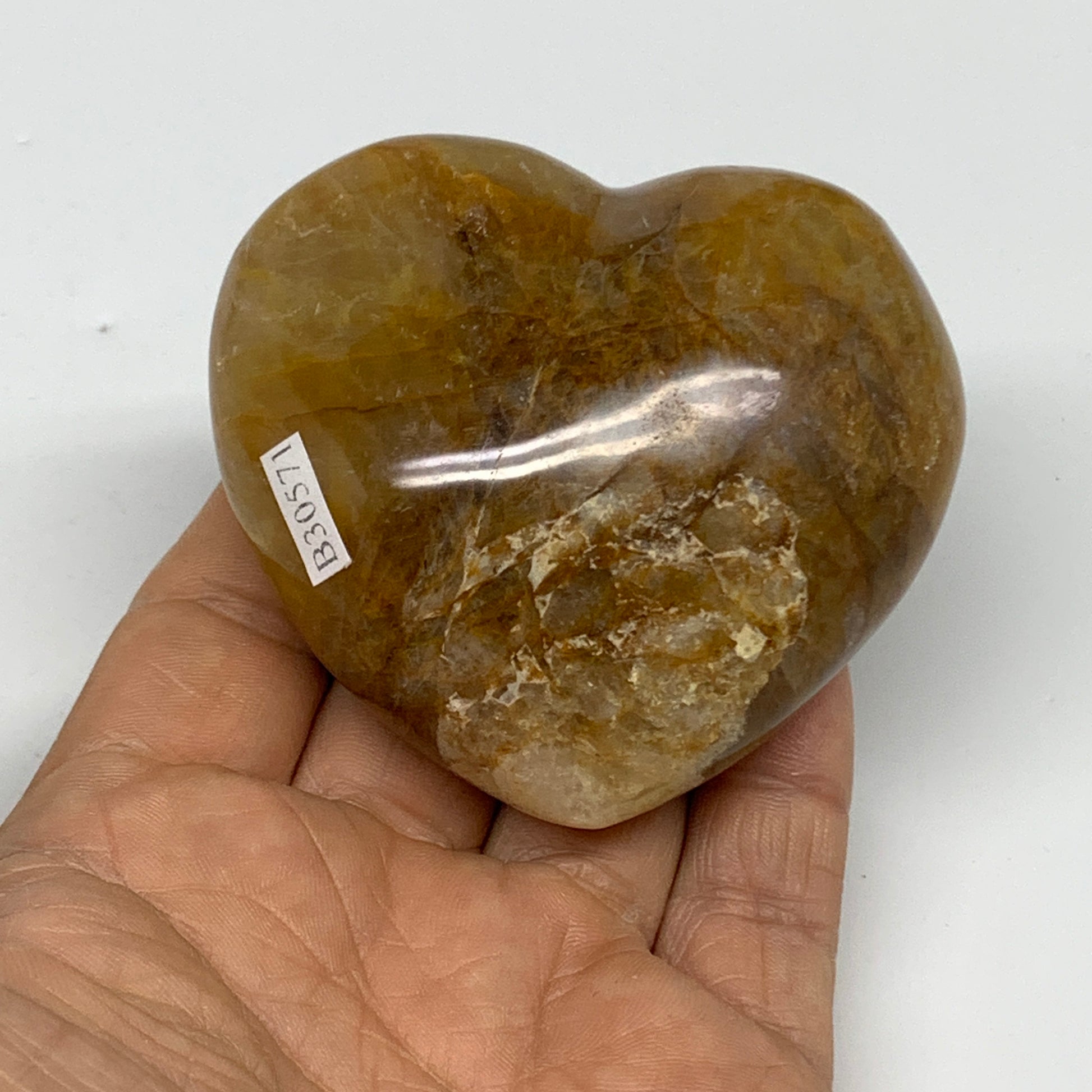 205.4g, 2.4"x2.7"x1.4" Yellow Healing Quartz Heart Crystal @Madagascar, B30571