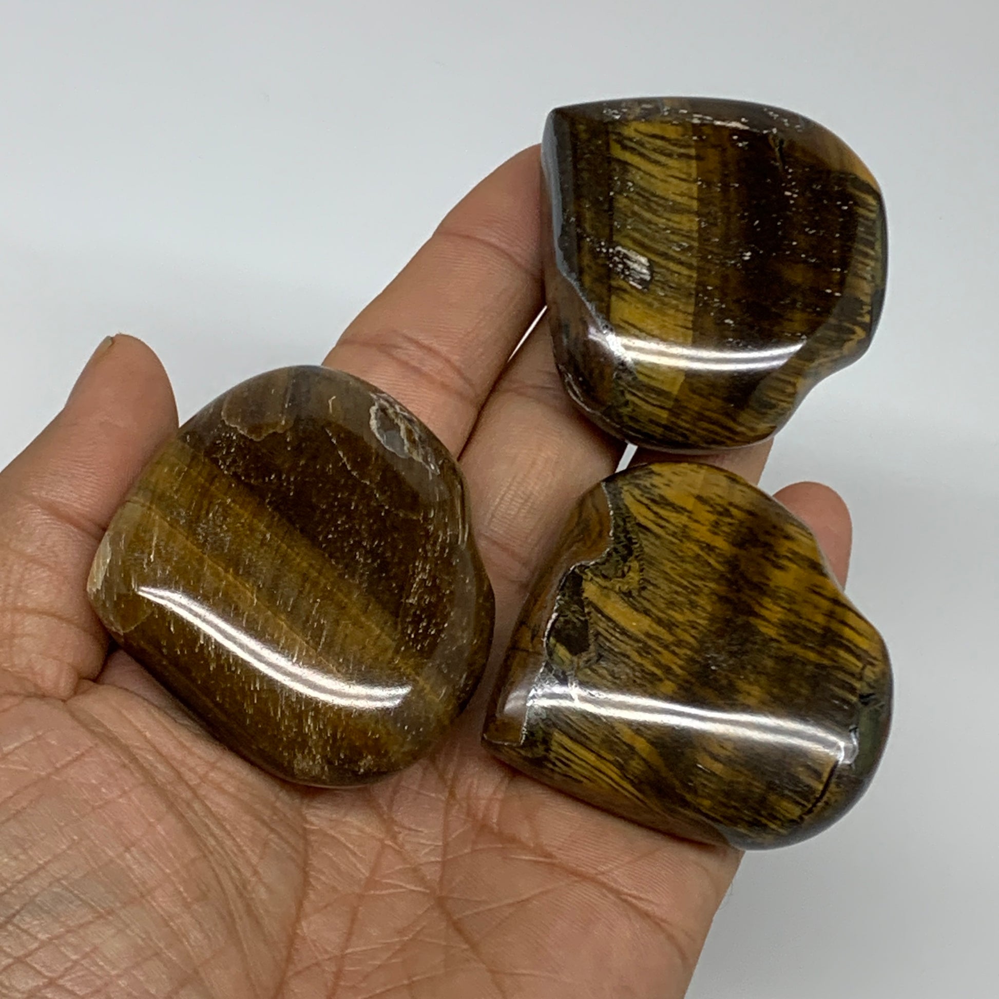 206.5g, 1.9"-2", 3pcs, Tiger's Eye Heart Polished Healing Crystal, B33913
