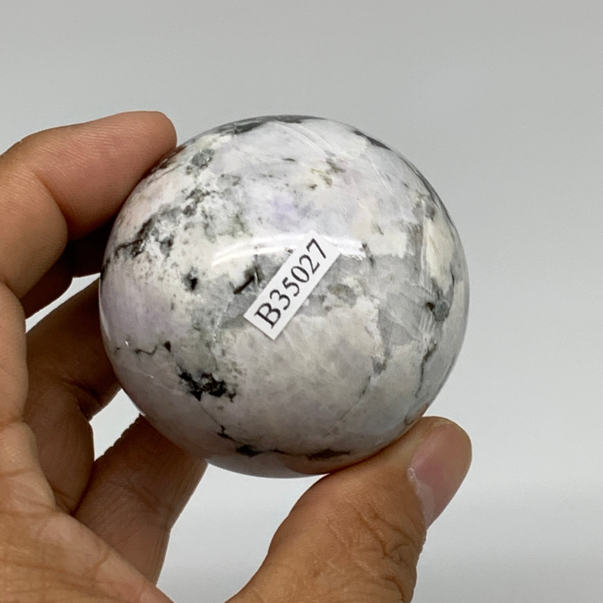 206.6g, 2.1"(53mm), Natural Rainbow Moonstone Sphere Ball Gemstone, B35027