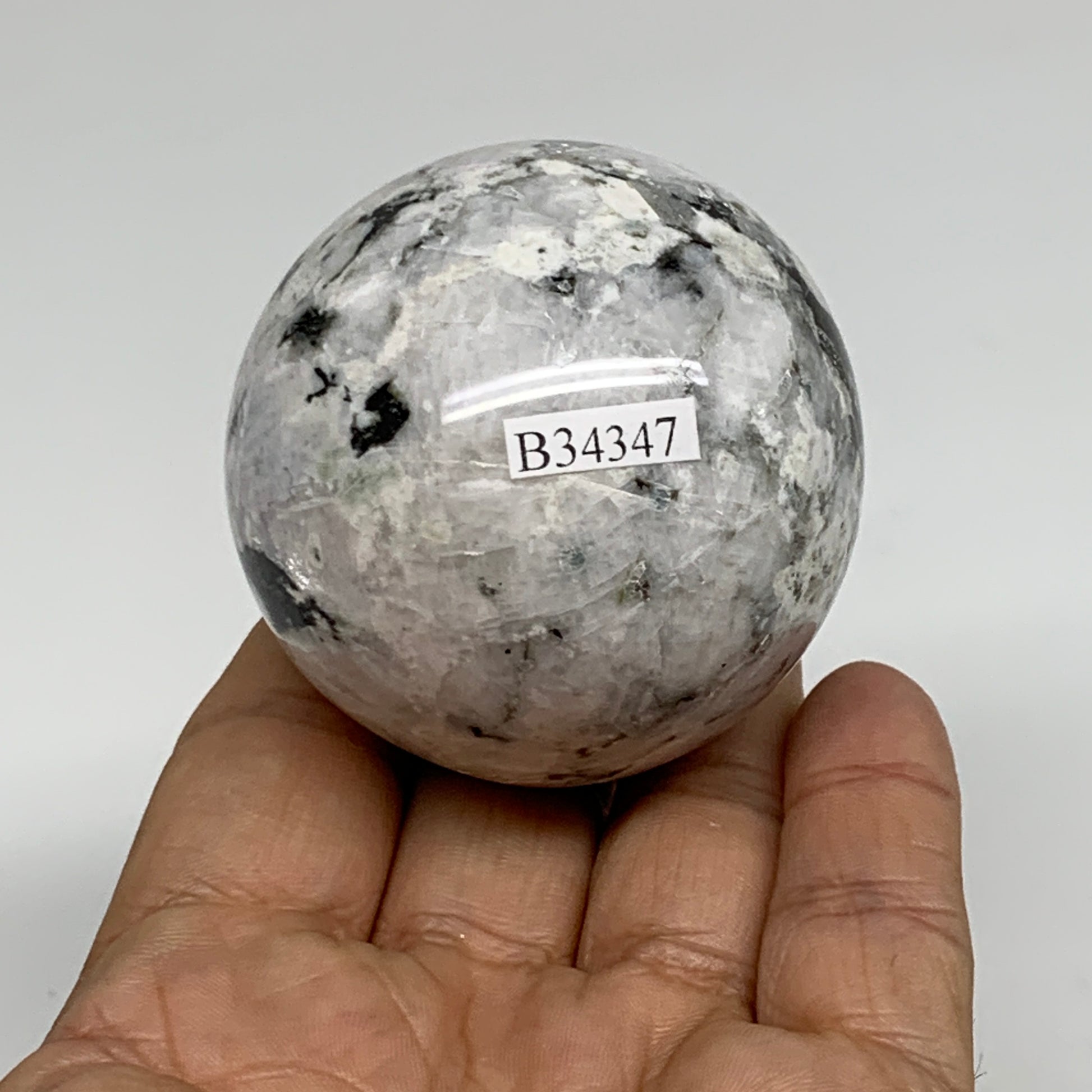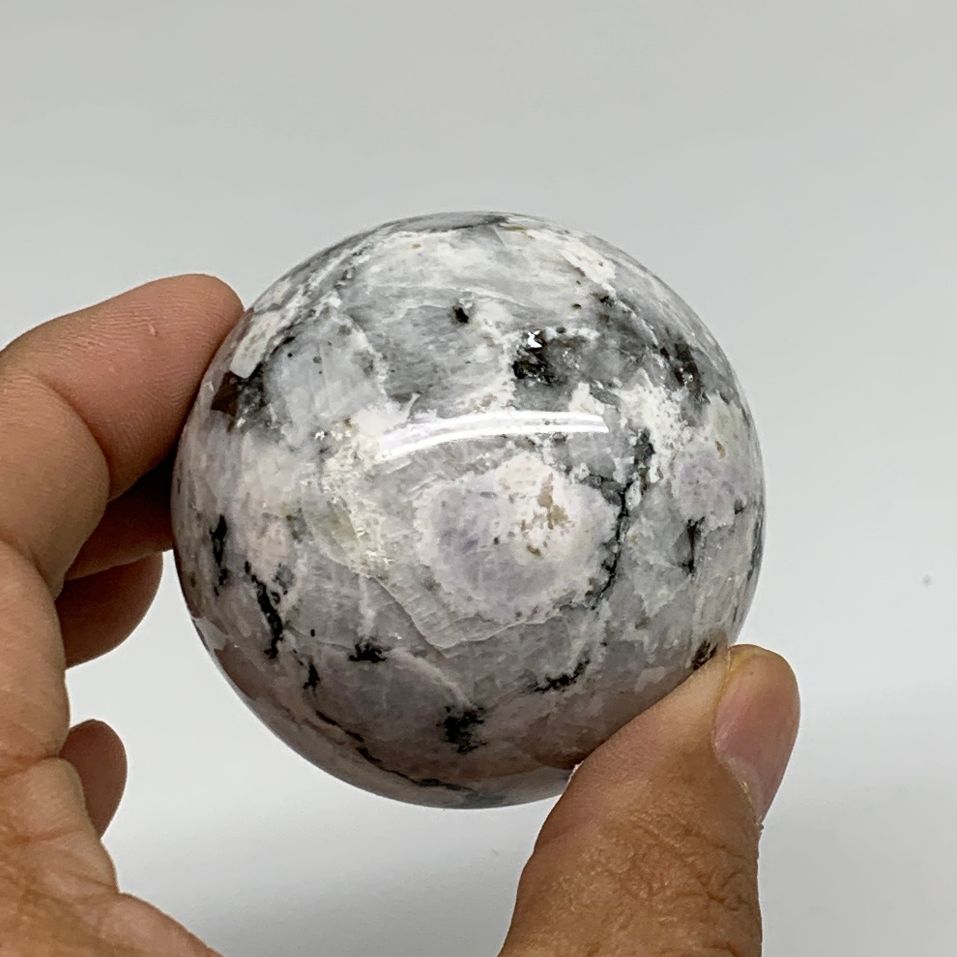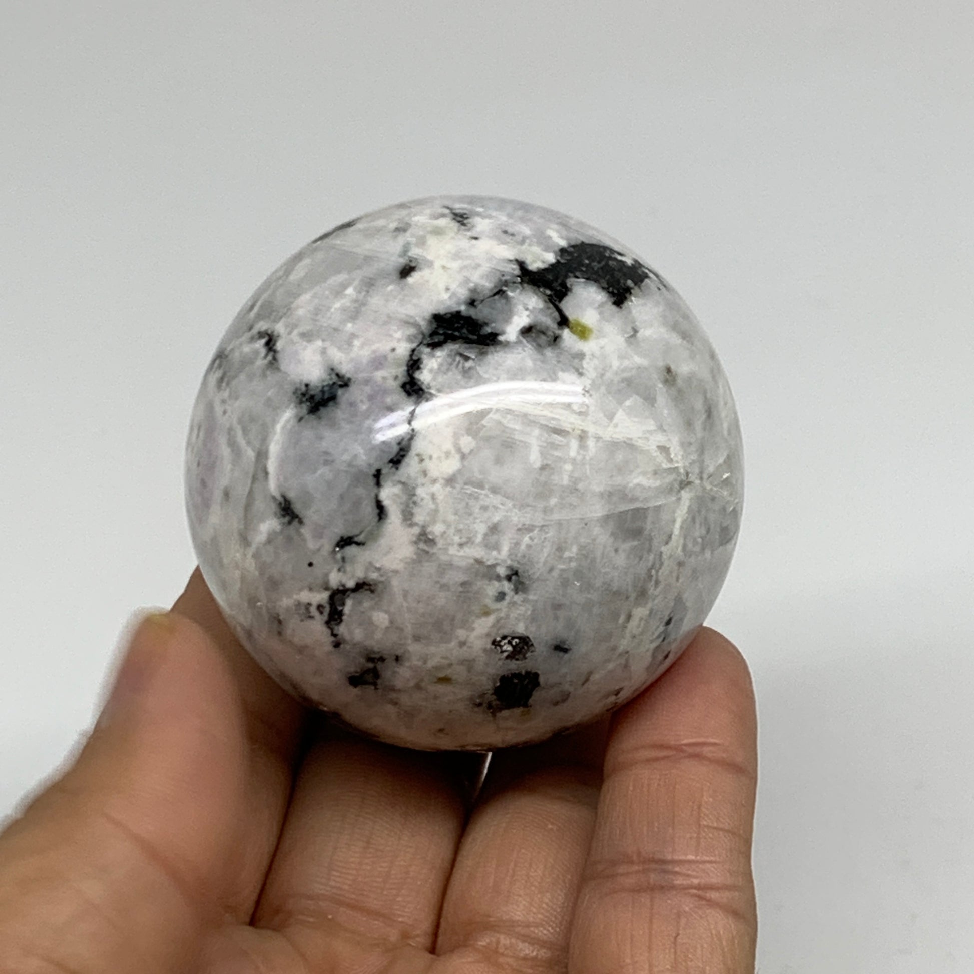 206.7g, 2.1"(53mm), Natural Rainbow Moonstone Sphere Ball Gemstone, B34347