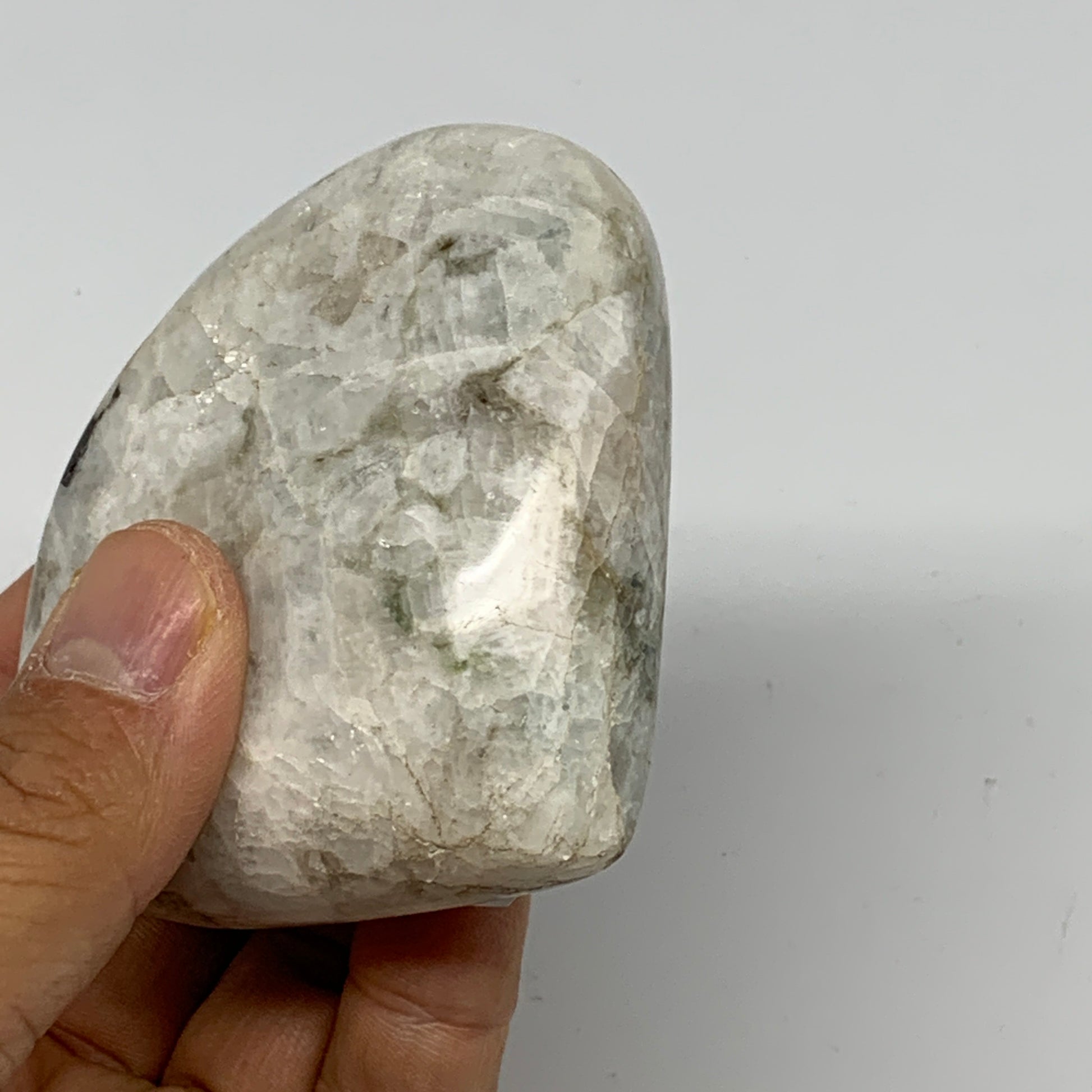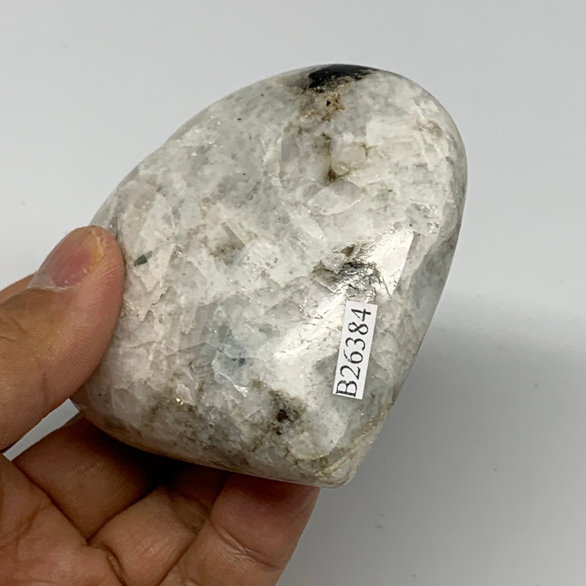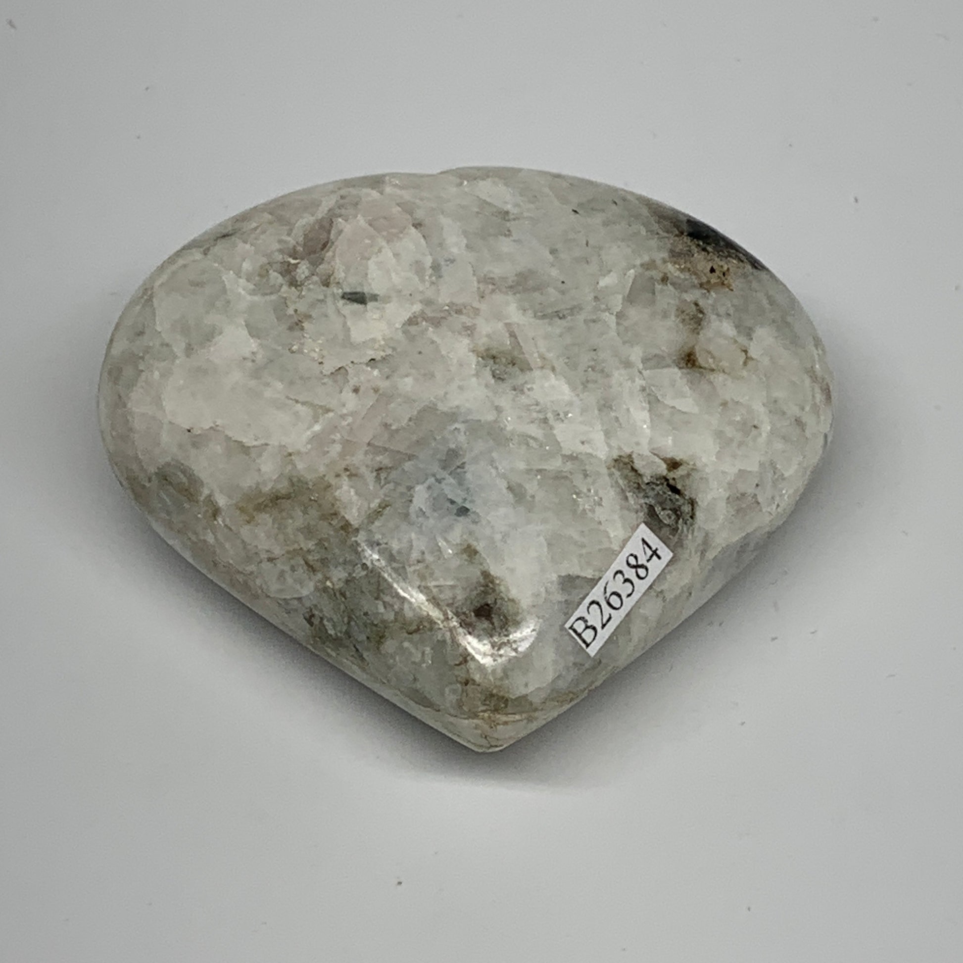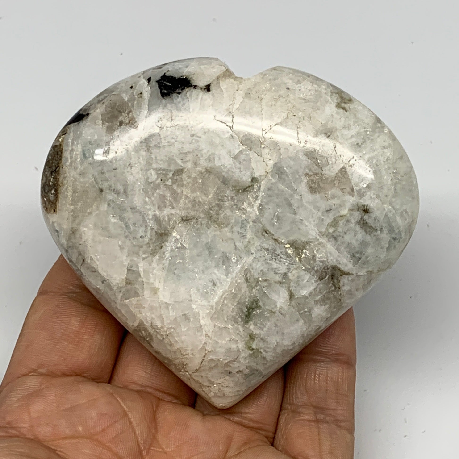 207.5g, 2.8"x3.1"x1.1", Rainbow Moonstone Heart Crystal Gemstone @India, B26384