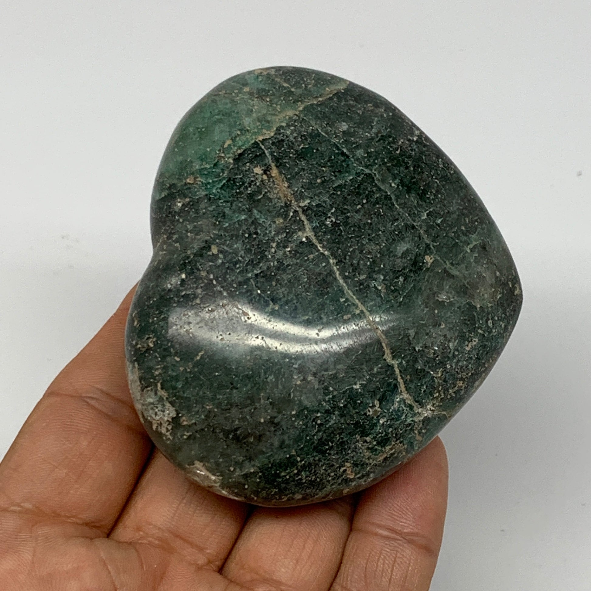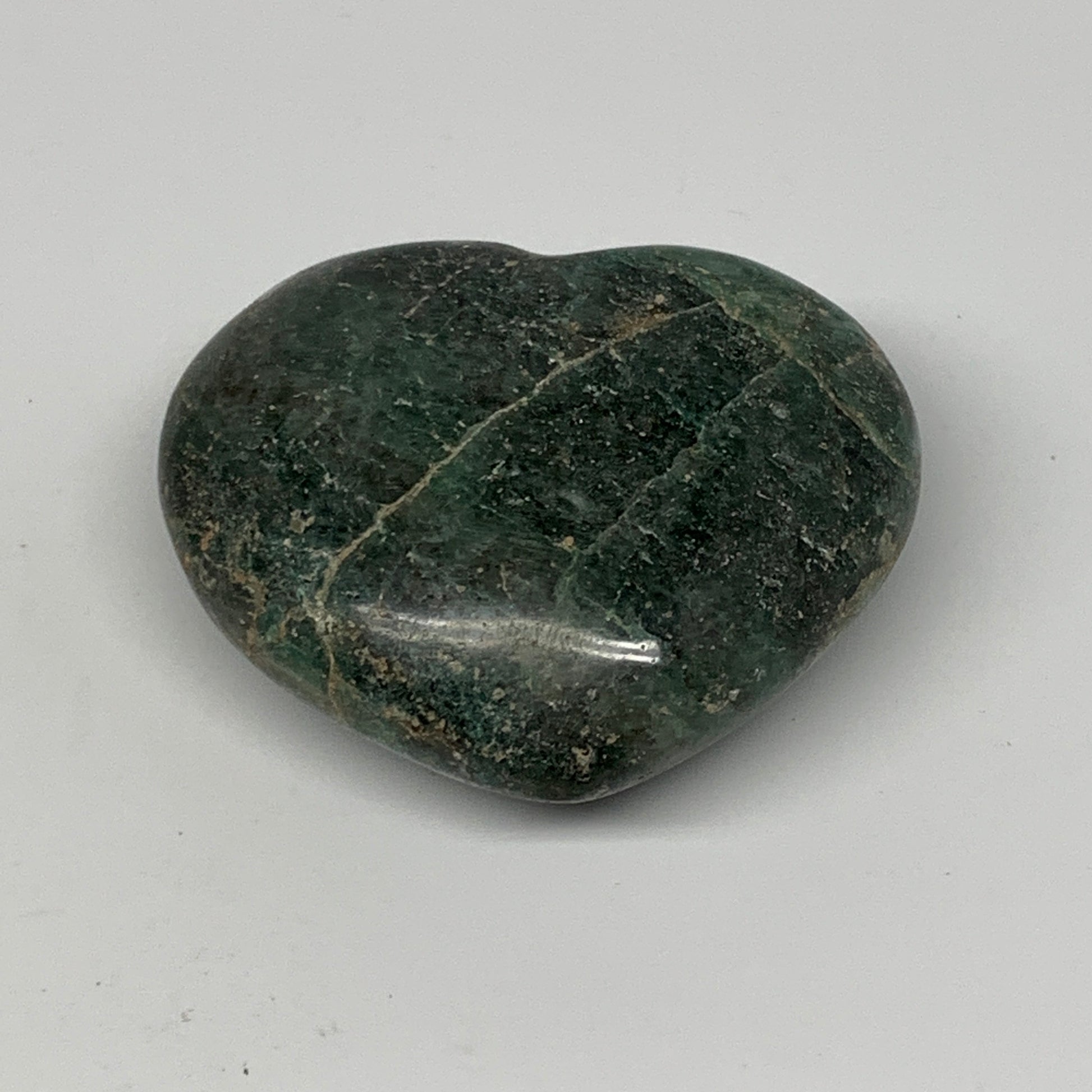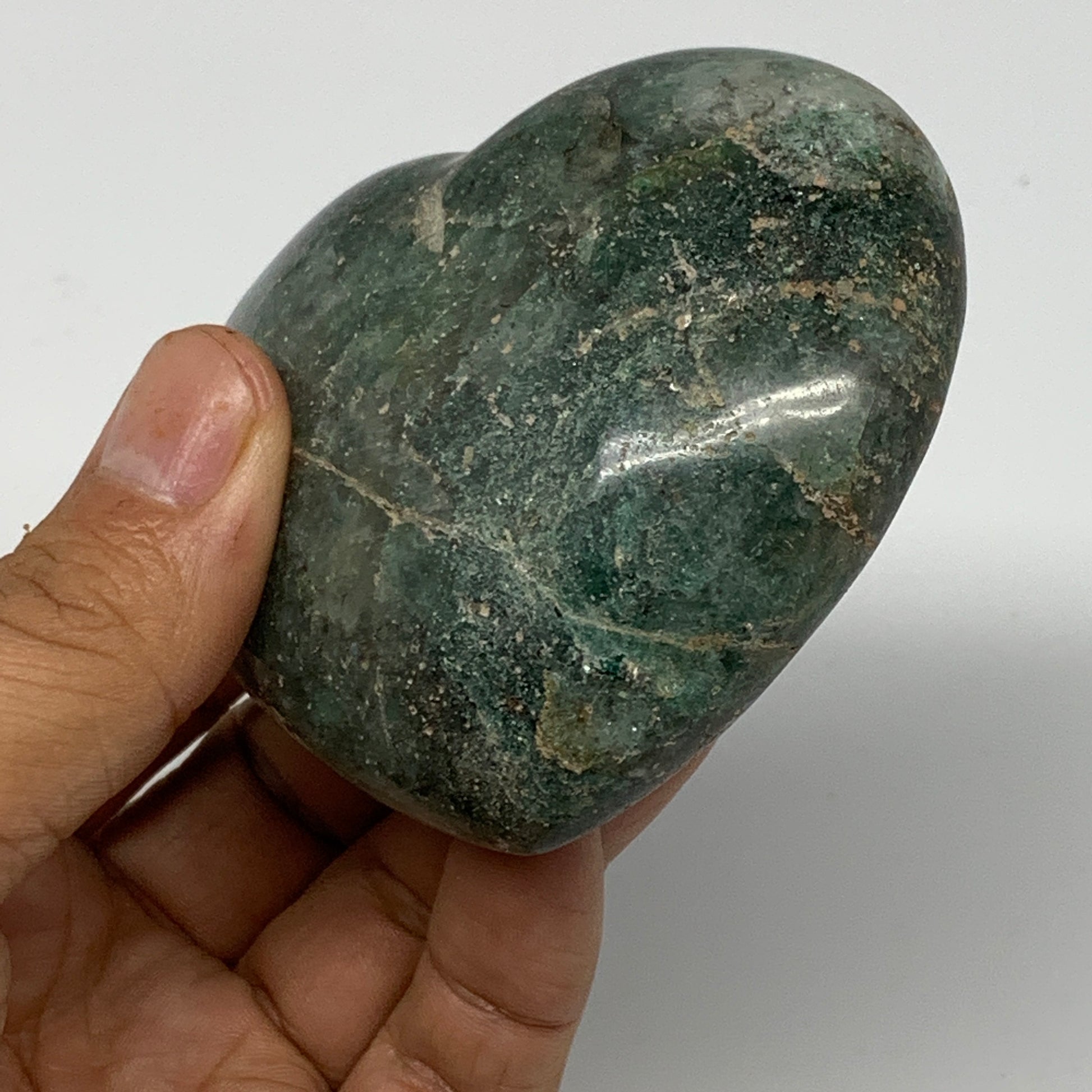 208.7g, 2.5"x3"x1.2" Natural Untreated Green Quartz Heart Crystal Reiki, B17623