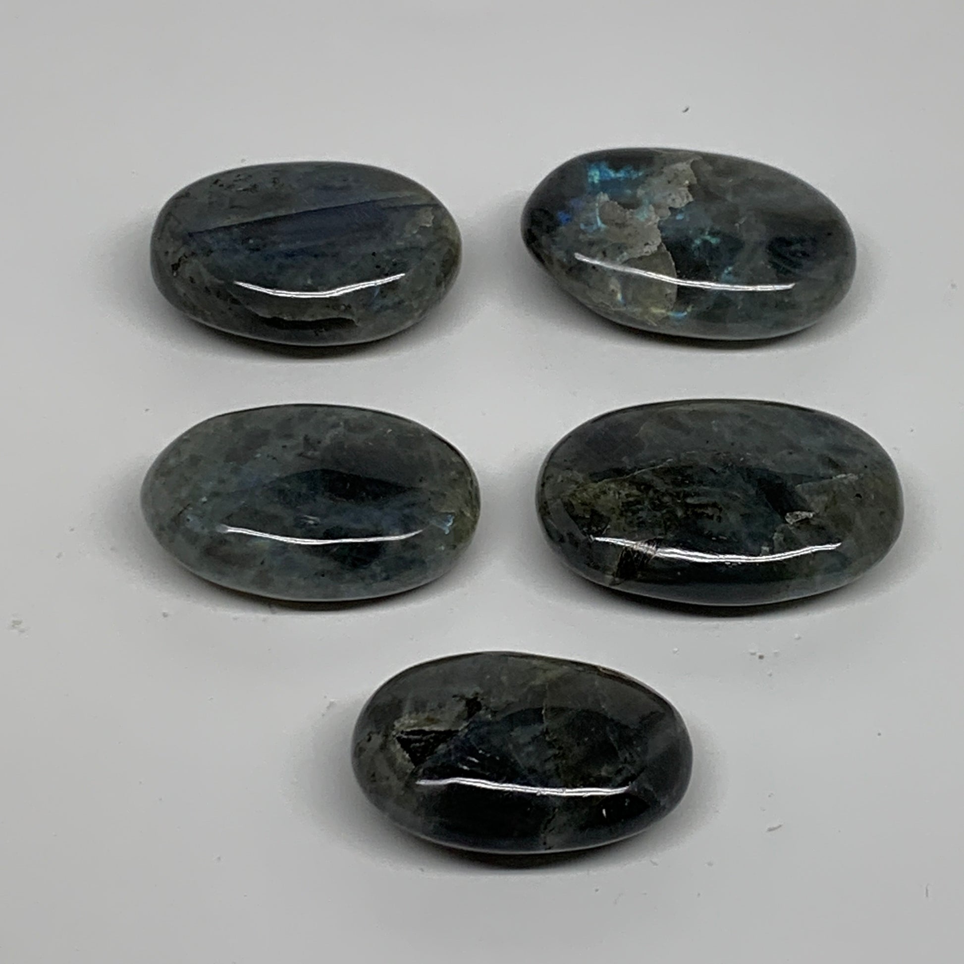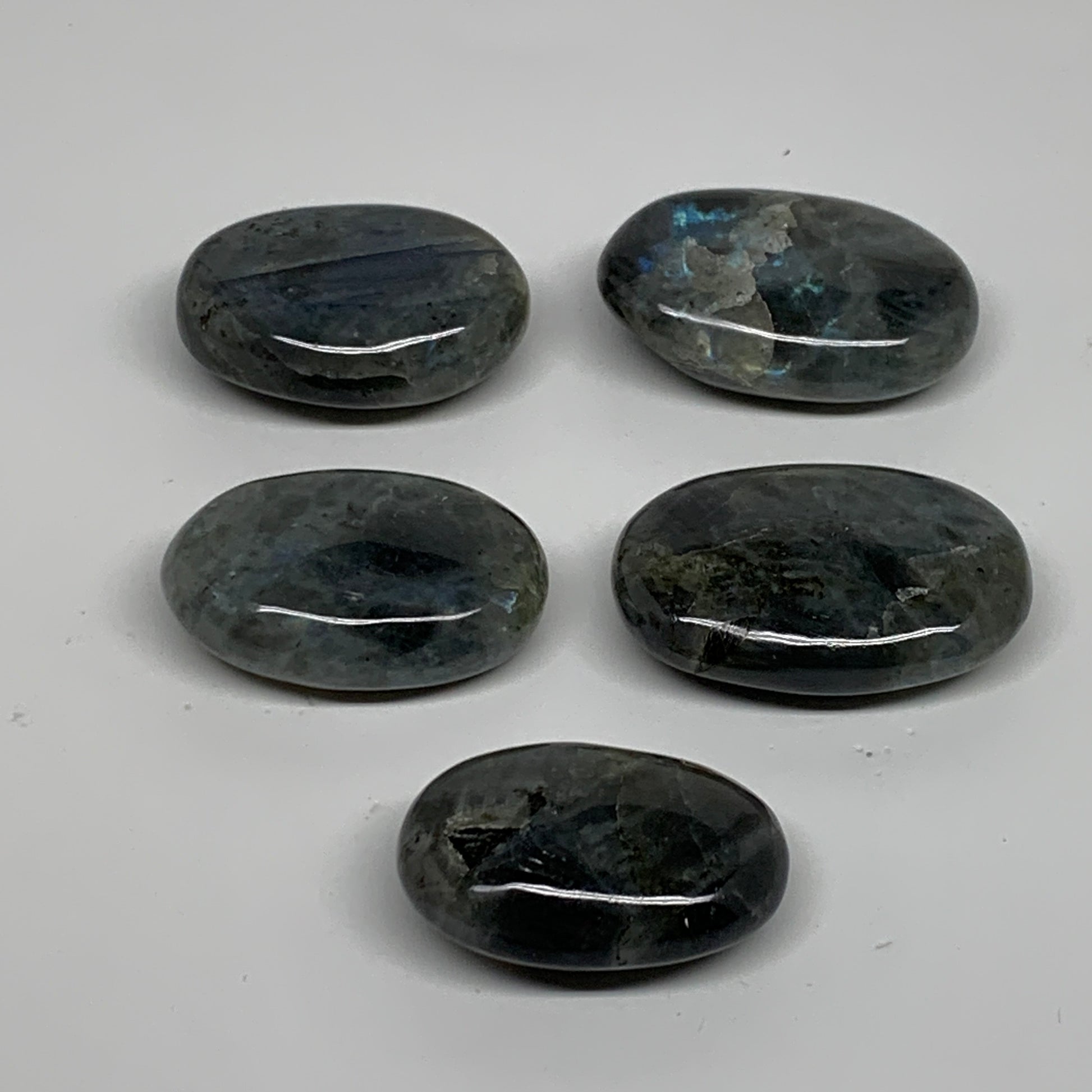 208.9g, 1.7"-2", 5pcs, Labradorite Palm-stone Tumbled Reiki, B35557