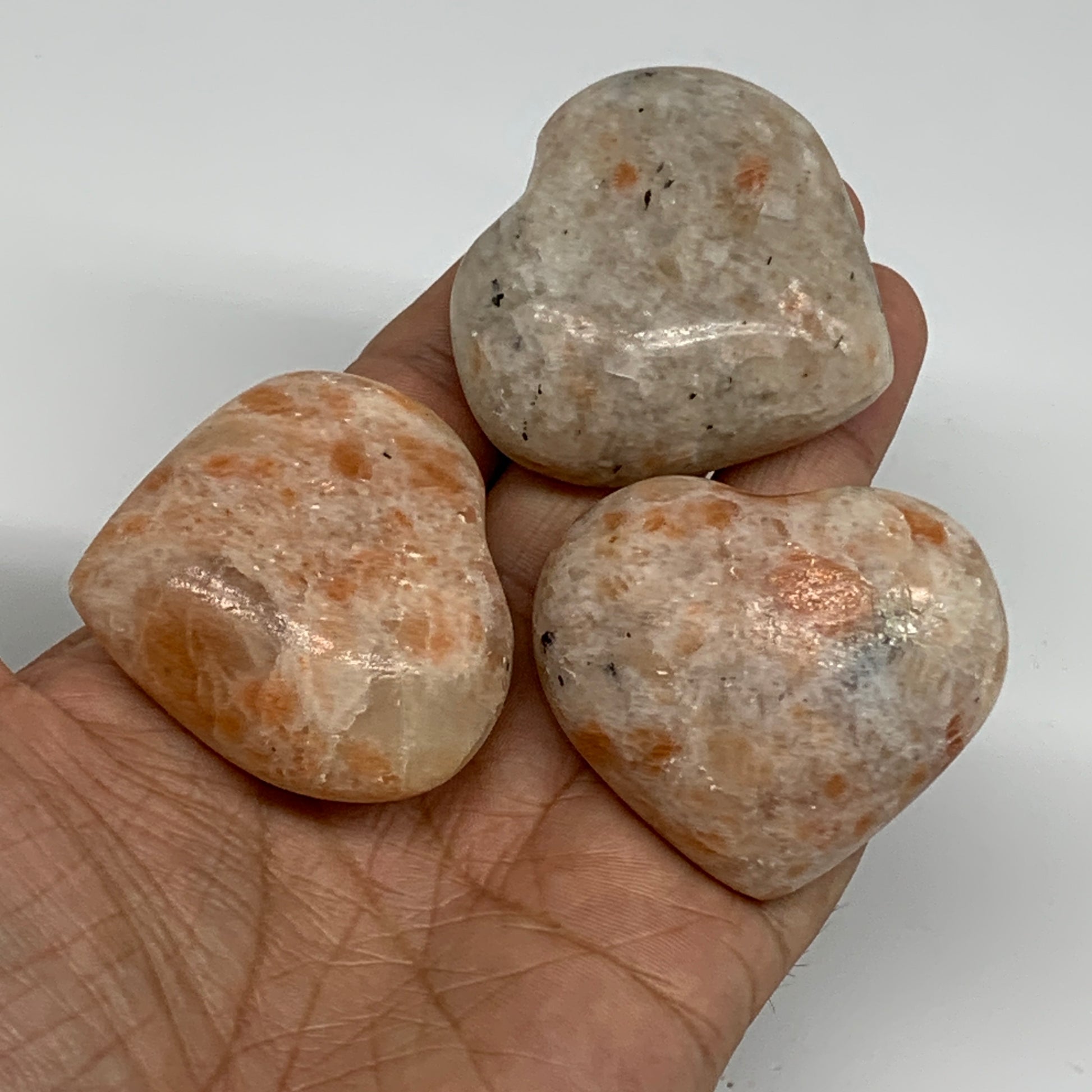 208g,1.7"-1.8", 3pcs, Sunstone Heart Polished Healing Crystal, B3480506