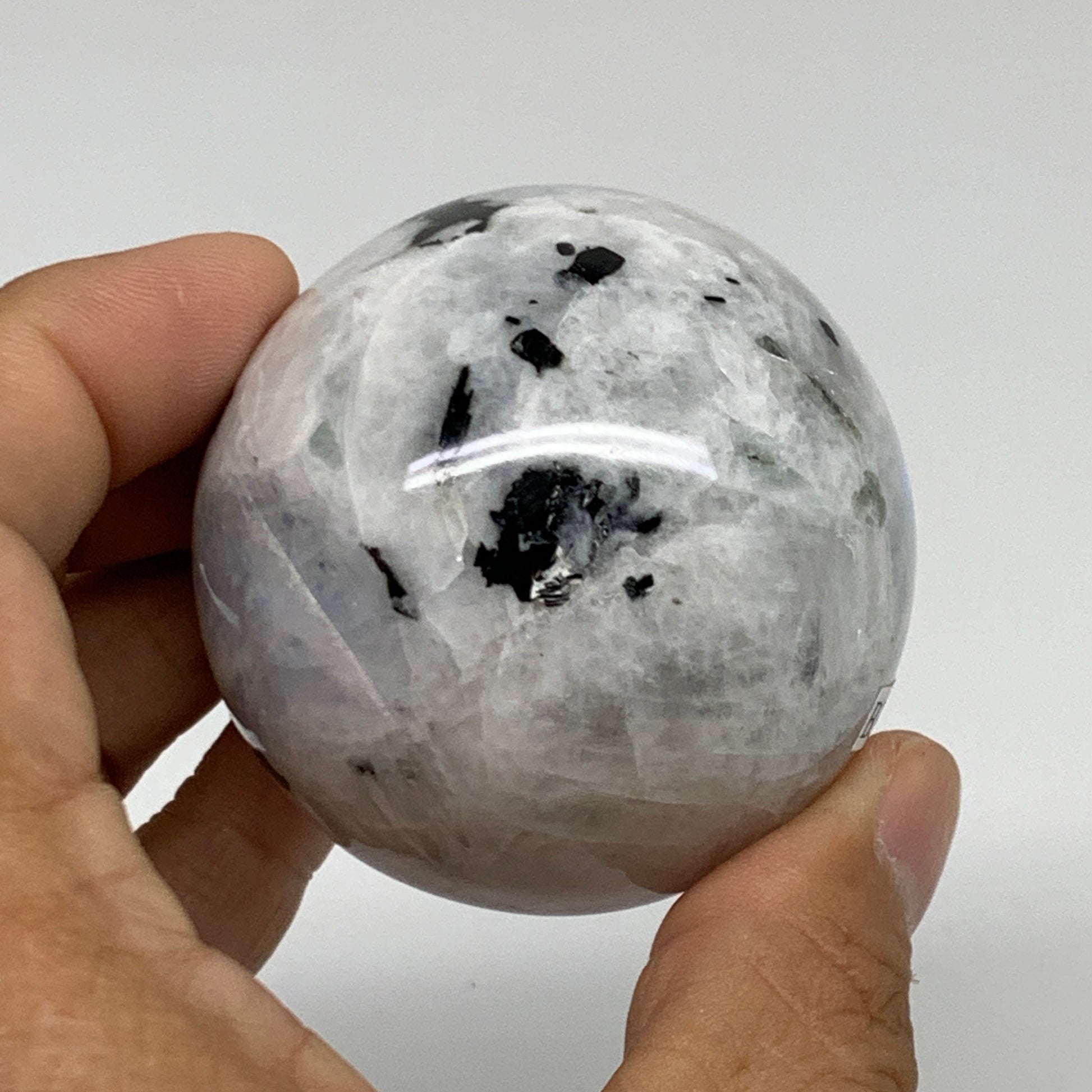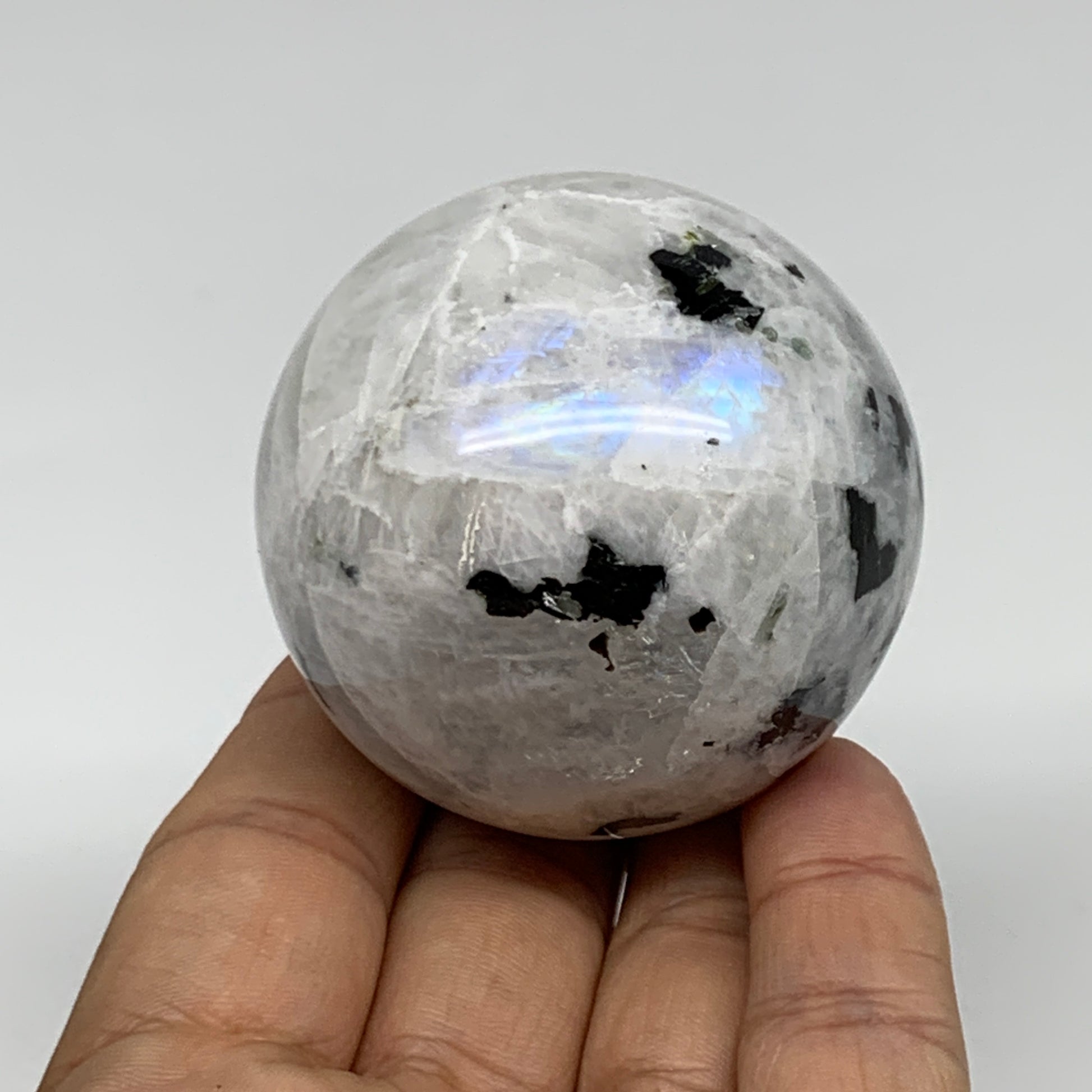 208g, 2.1"(53mm), Natural Rainbow Moonstone Sphere Ball Gemstone, B34953