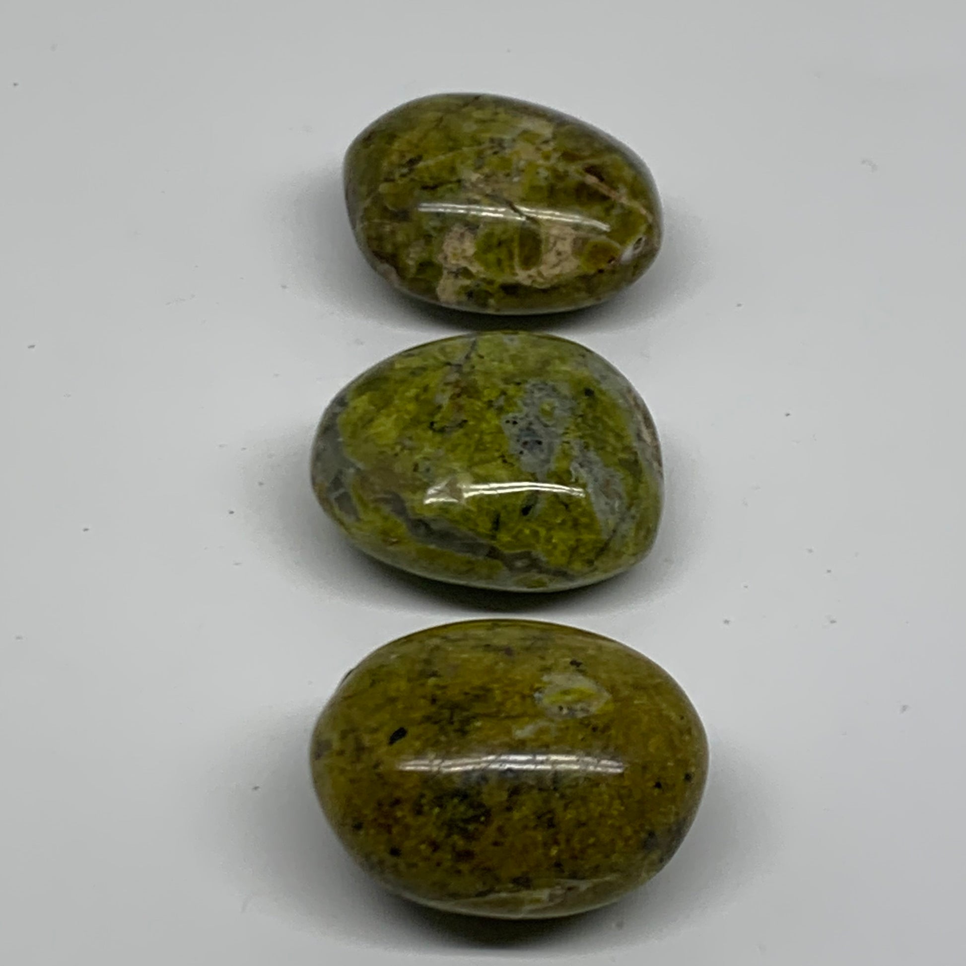 209.9g, 2"-2.1", 3pcs, Green Opal Crystal PalmStone Polished Reiki, B38324